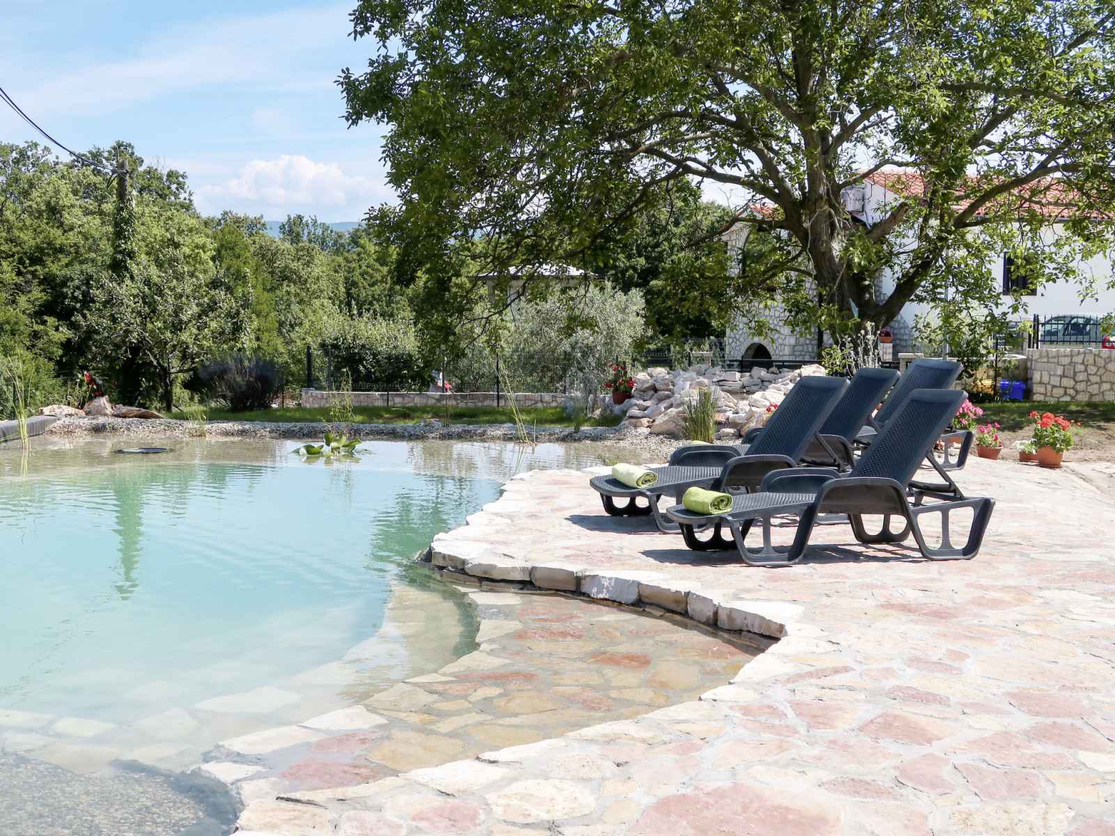 Maison individuelle "angelina". dans le quartier de strmac, à 4 km du centre de labin, à 9 km du centre de rabac, à 9 km de la mer. a usage privé: terrain 1'300 m2 avec pelouse et arbres, piscine (40 m2, profondeur 135 - 200 cm, disponibilité saisonnière: 01.mai. - 01.oct.). barbecue (toboggan, balançoire), entretien de la piscine par le