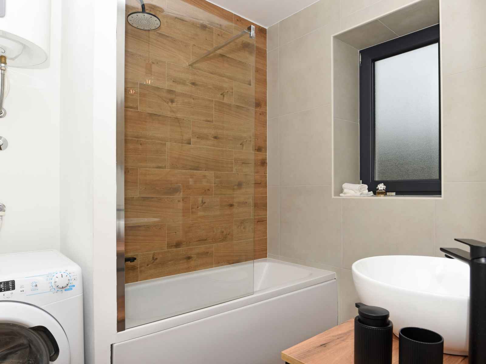 lave-vaisselle, 4 plaques à induction, grille-pain, bouilloire électrique, congélateur, cafetière électrique). Sortie sur la terrasse. Bain/WC, douche/WC. Chauffage à air chaud. Terrasse 20 m2, couverte. Meubles de terrasse, chaises longues. A disposition: fer à repasser, sèche-cheveux. Internet (Connexion WIFI, gratuit). Veuillez noter: maison non-fumeur. Maximum 2 animaux/ chiens autorisés.