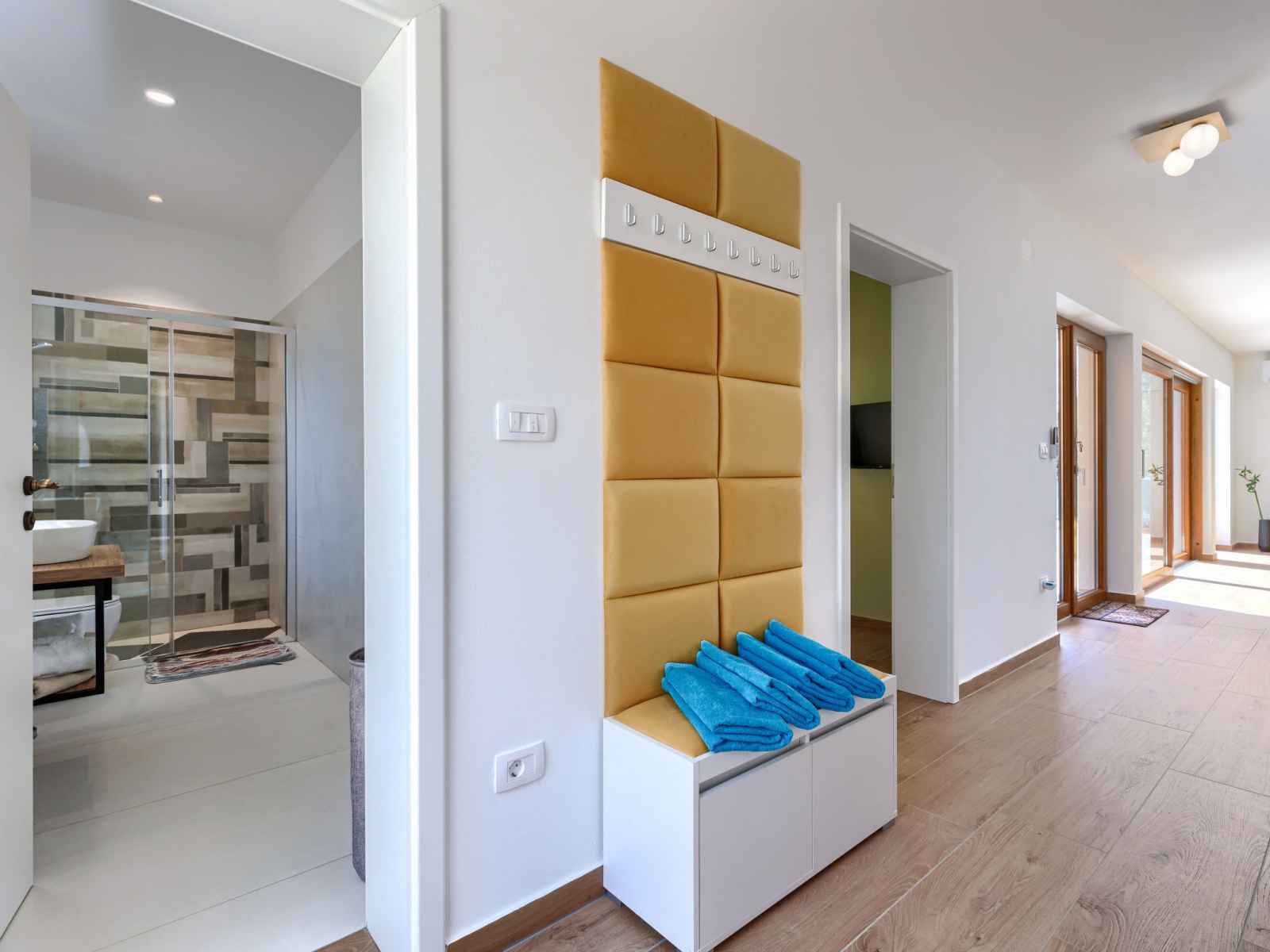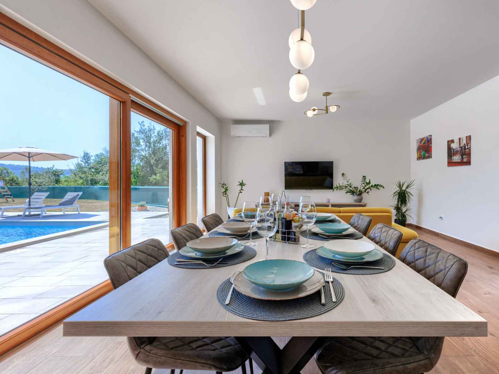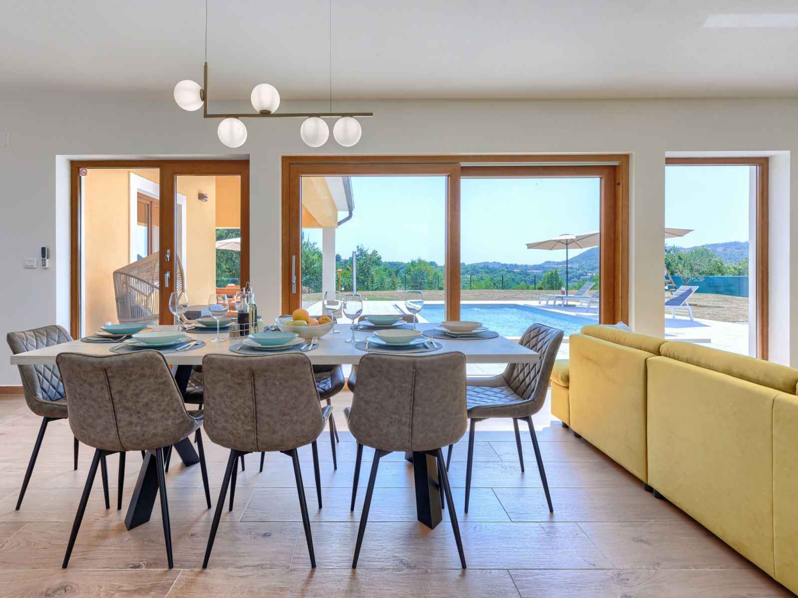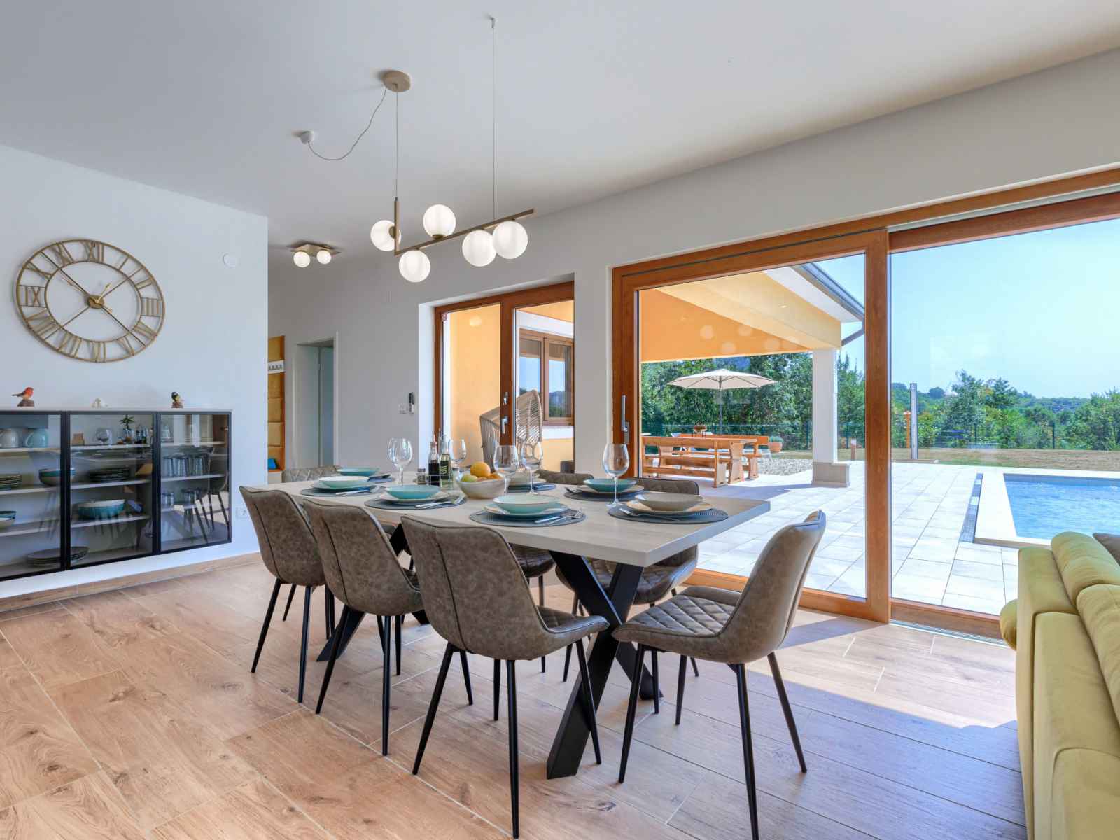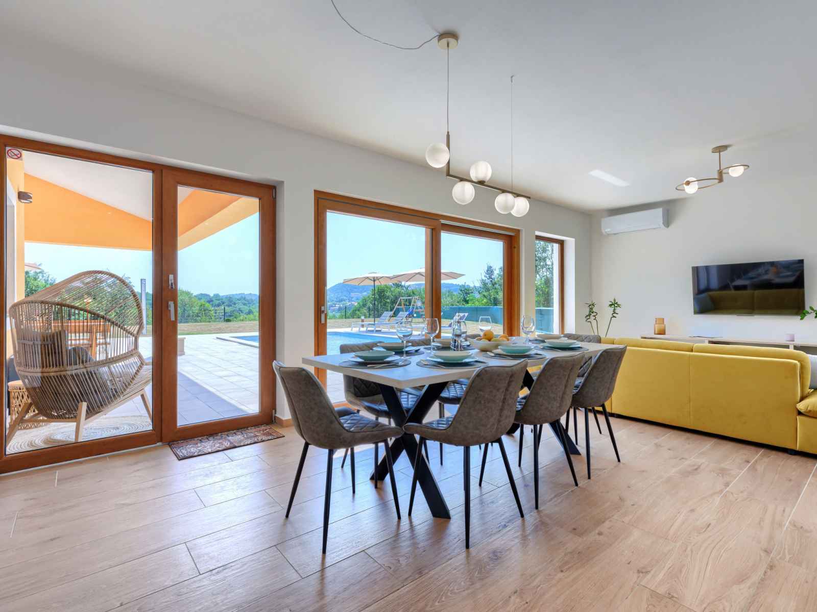 marches intérieures. douche extérieure, terrasse, meubles de jardin, barbecue, espace de jeux pour les enfants (toboggan, balançoire), entretien de la piscine par le propriétaire/jardinier. infrastructures de la maison: accès internet, lave-linge. place de parking (pour 4 voitures) près de la maison sur le terrain. magasins 1 km, supermarché 1 km, restaurant 1 km, arrêt de bus 1.1 km, plage de graviers 5 km. veuillez noter: aéroport 45 km de la maison.