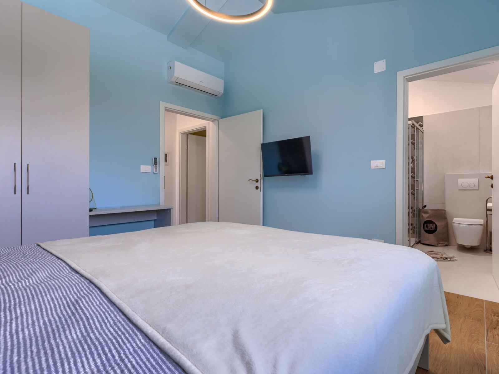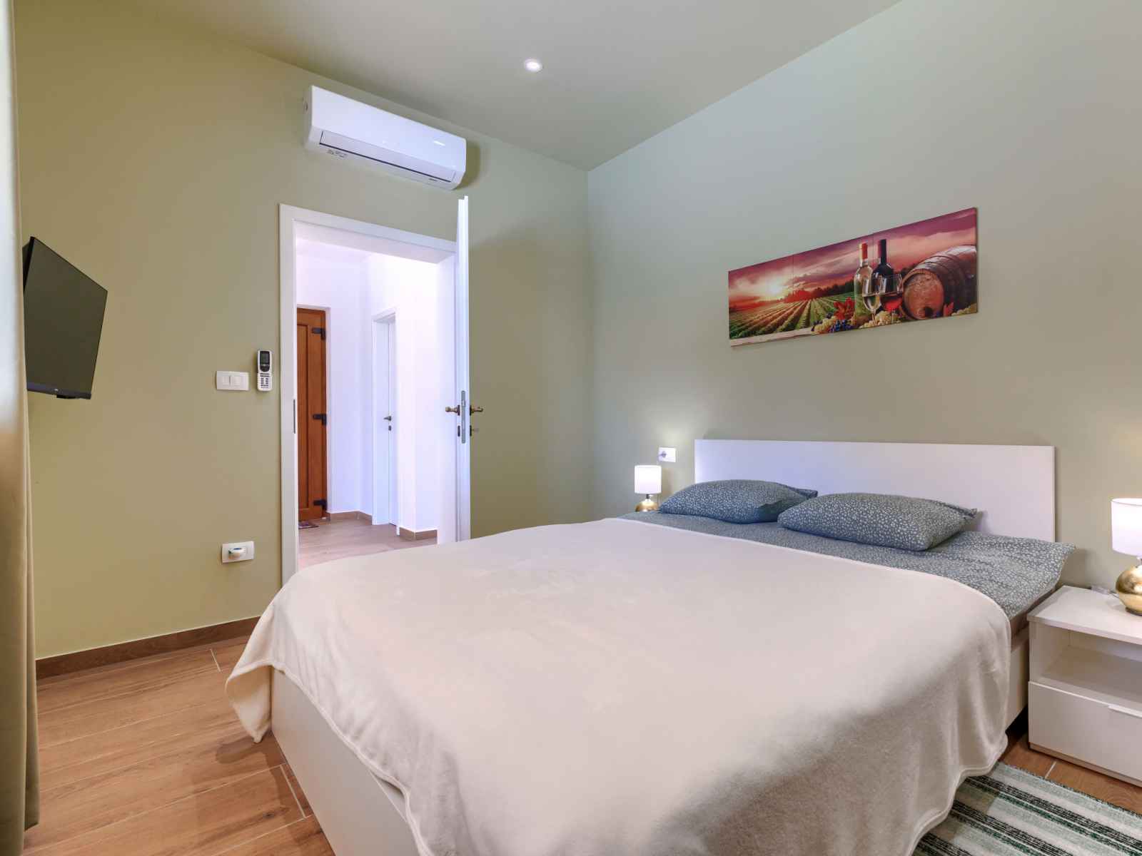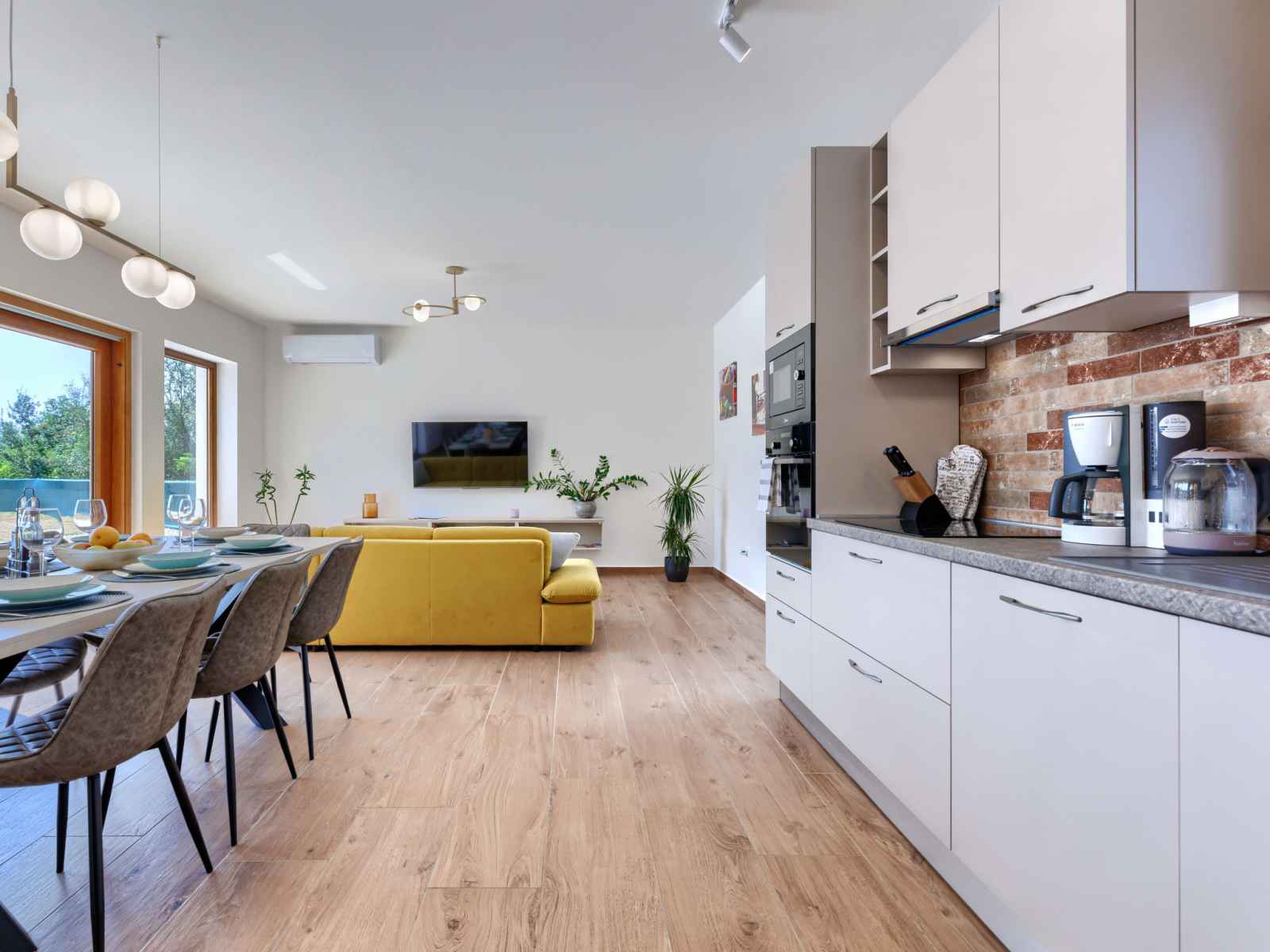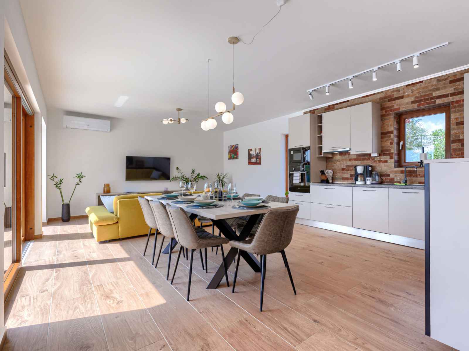 Maison 4 pièces 160 m2 sur 2 niveaux. aménagement agréable et plaisant: séjour/salle à manger avec tv (satellite) et air-conditionné. sortie sur la terrasse. 1 chambre avec 1 grand-lit (160 cm, longueur 200 cm), tv (satellite) et air-conditionné. cuisine ouverte (four, lave-vaisselle, 4 plaques à induction, grille-pain, bouilloire
