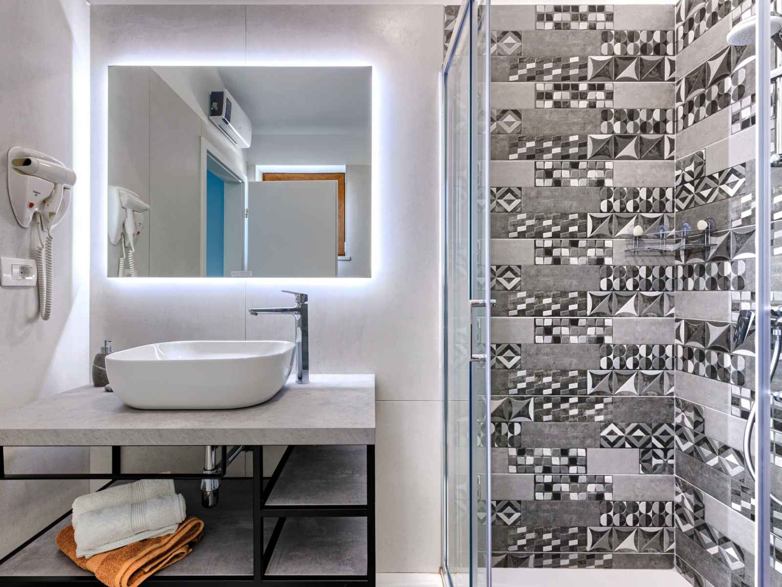 électrique, congélateur, cafetière électrique). Douche/WC. À l'étage supérieur: 1 chambre avec 1 grand-lit (180 cm, longueur 200 cm), douche/WC, TV (satellite) et air-conditionné. 1 chambre avec 2 lits (90 cm, longueur 200 cm), douche/WC, TV (satellite) et air-conditionné. Terrasse 30 m2, couverte. Meubles de terrasse, chaises longues. A disposition: lave-linge, sèche-linge, coffre-fort, fer à repasser, sèche-cheveux. Internet (Connexion WIFI, gratuit). Veuillez noter: maison non-fumeur. Extincteur.