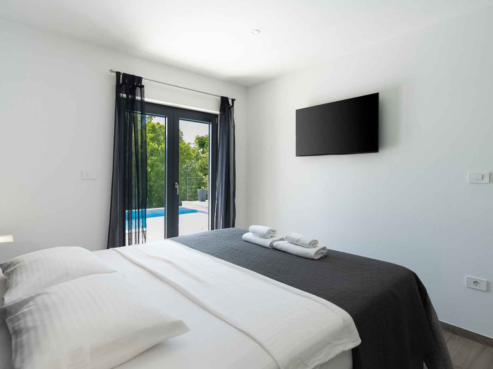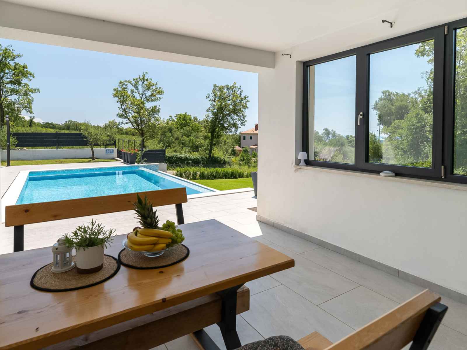 douche extérieure, terrasse, barbecue, entretien de la piscine par le propriétaire/jardinier. infrastructures de la maison: accès internet. place de parking (pour 2 voitures) près de la maison sur le terrain. magasins 4.5 km, supermarché 12 km, restaurant 4.5 km, arrêt de bus 14.6 km, plage de graviers 3 km. veuillez noter: aéroport 55 km de la maison.