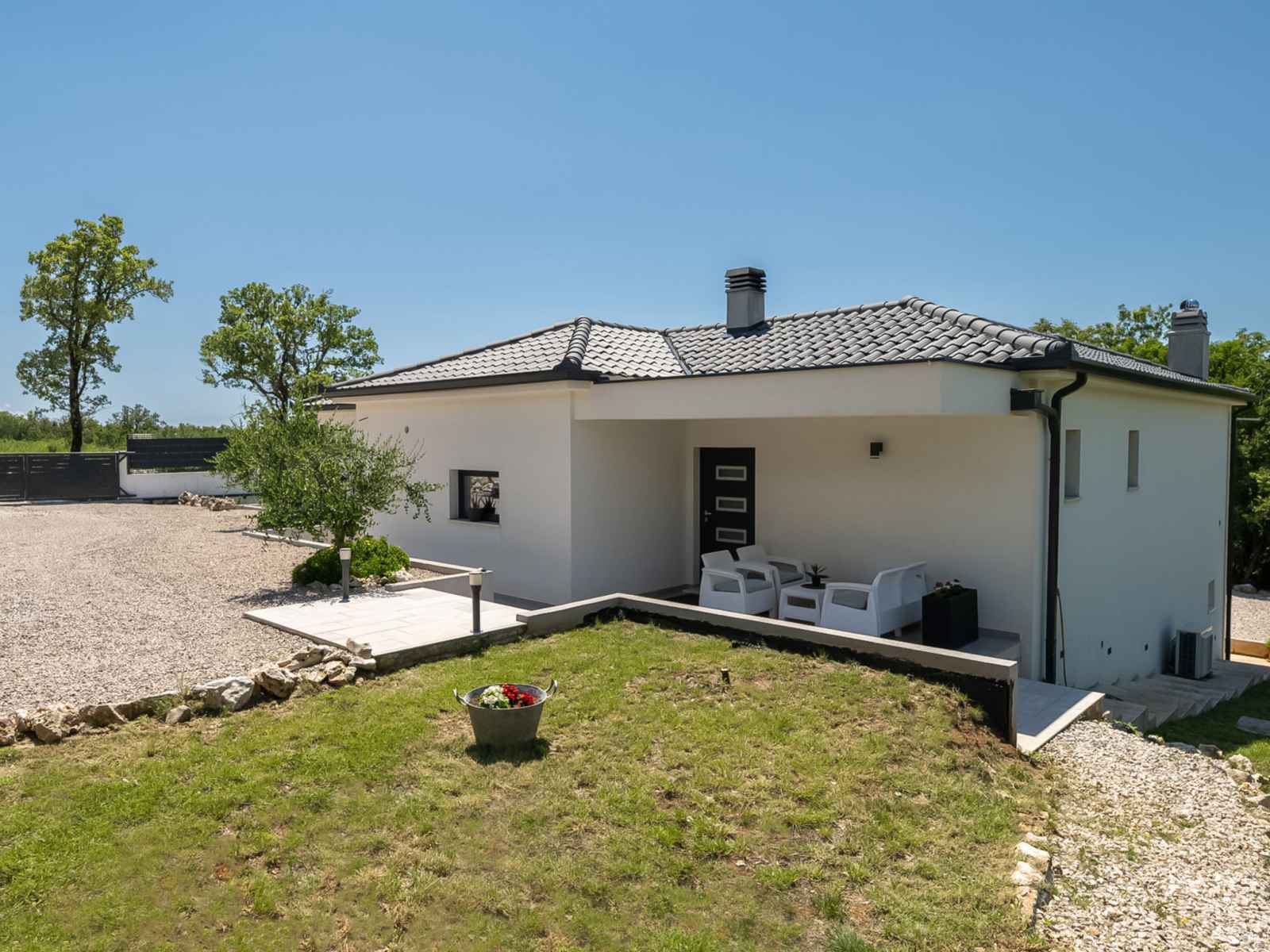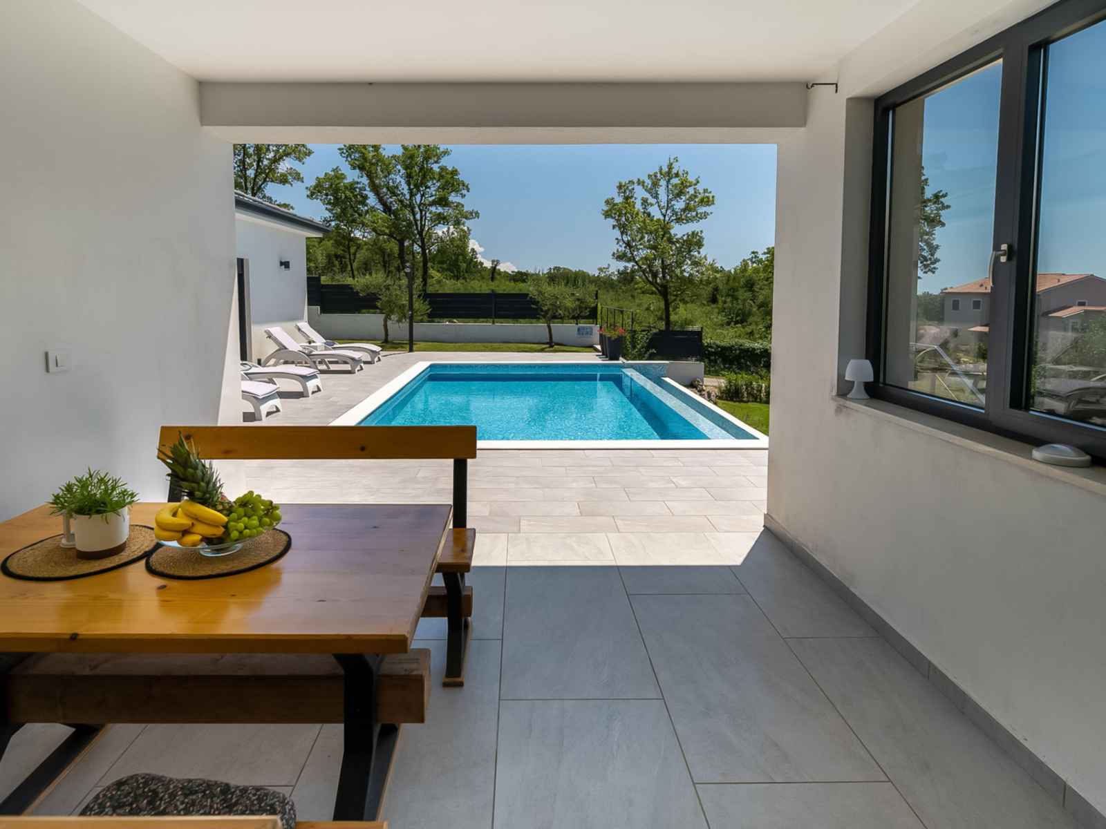 Belle maison individuelle "villa riki". dans le hameau de vlakovo, à 12 km du centre de labin, situation ensoleillée, à 3 km de la mer, à 3 km de la plage. a usage privé: terrain 3'000 m2 avec pelouse et plantes, piscine rectangulaire (8 x 4 m, profondeur 150 cm, disponibilité saisonnière: 26.avr. - 05.oct.) avec marches intérieures.