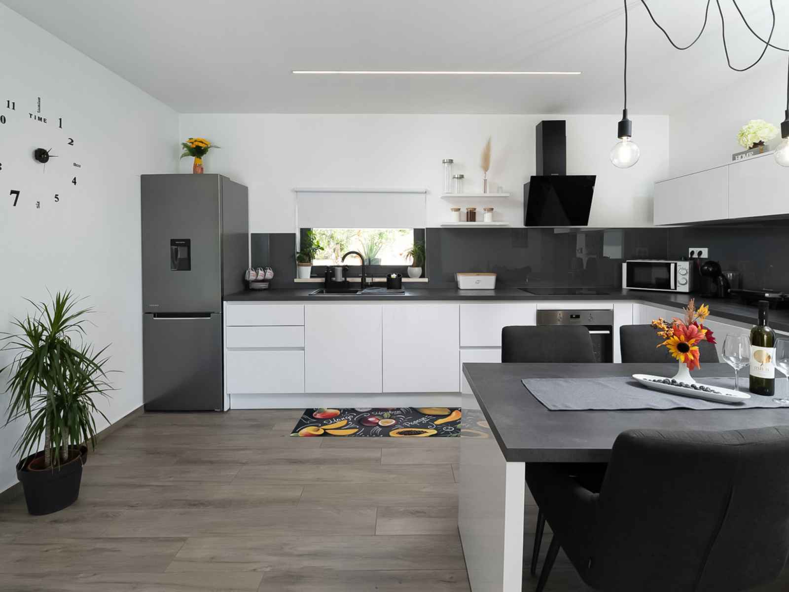 bouilloire électrique, micro-ondes, congélateur, cafetière électrique). WC séparé. Chauffage à air chaud. Terrasse 45 m2 partiellement couverte terrasse 5 m2, couverte. Meubles de terrasse, chaises longues. Vue partielle sur la mer. A disposition: lave-linge, sèche-linge, coffre-fort, fer à repasser, chaise haute pour enfant, lit bébé, sèche-cheveux. Internet (Connexion WIFI, gratuit). Veuillez noter: maison non-fumeur.