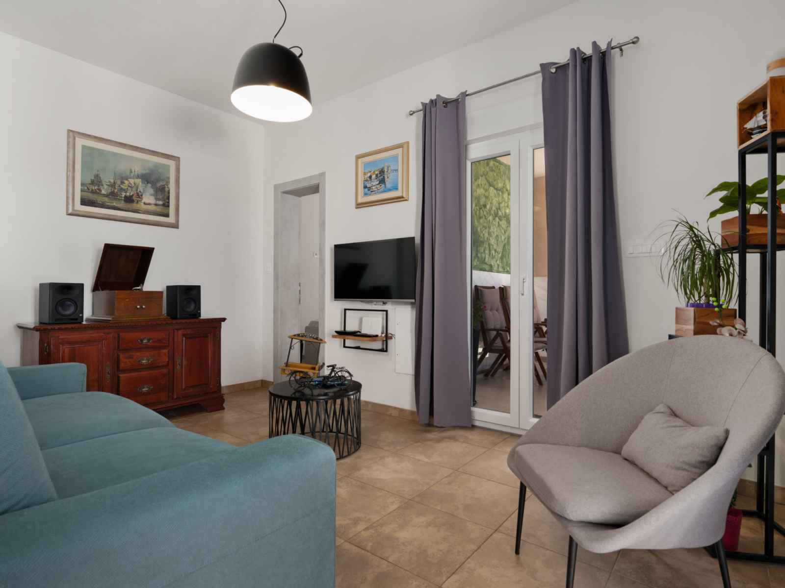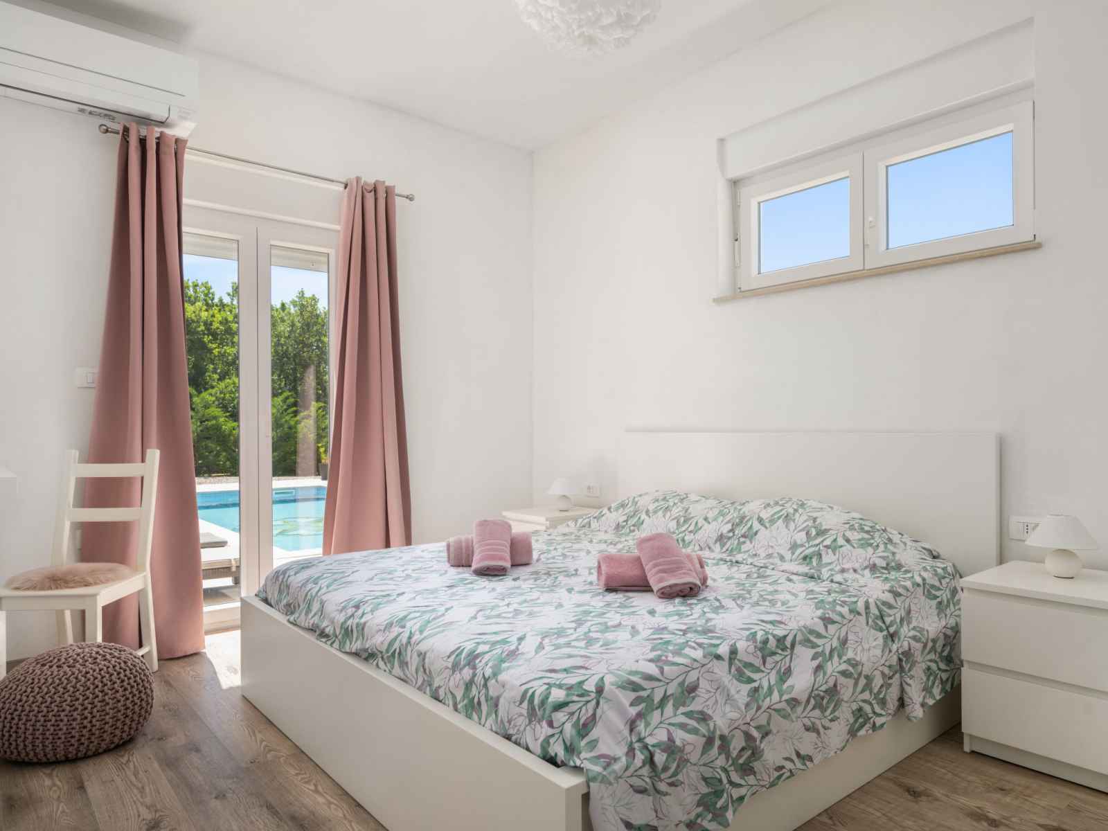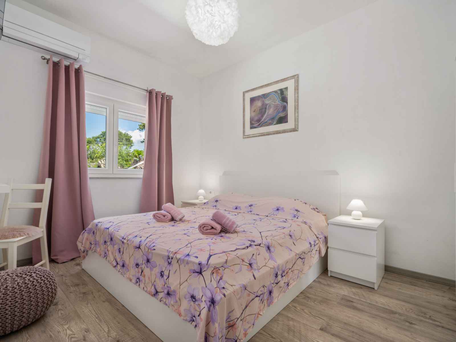 1 chambre avec 1 lit (90 cm, longueur 200 cm), 1 lit gigogne (90 cm, longueur 200 cm), douche/WC. Cuisine ouverte (four, lave-vaisselle, 4 plaques à induction, grille-pain, bouilloire électrique, micro-ondes, congélateur, cafetière électrique). Sortie sur la terrasse, sur la piscine. 2 douches/WC. Chauffage électrique, air-conditionné. Terrasse 20 m2, couverte. Meubles de terrasse, chaises longues. Vue partielle sur la mer. A disposition: lave-linge, sèche-linge, fer à repasser, sèche-cheveux. Internet (Connexion WIFI, gratuit). Veuillez noter: maison non-fumeur.