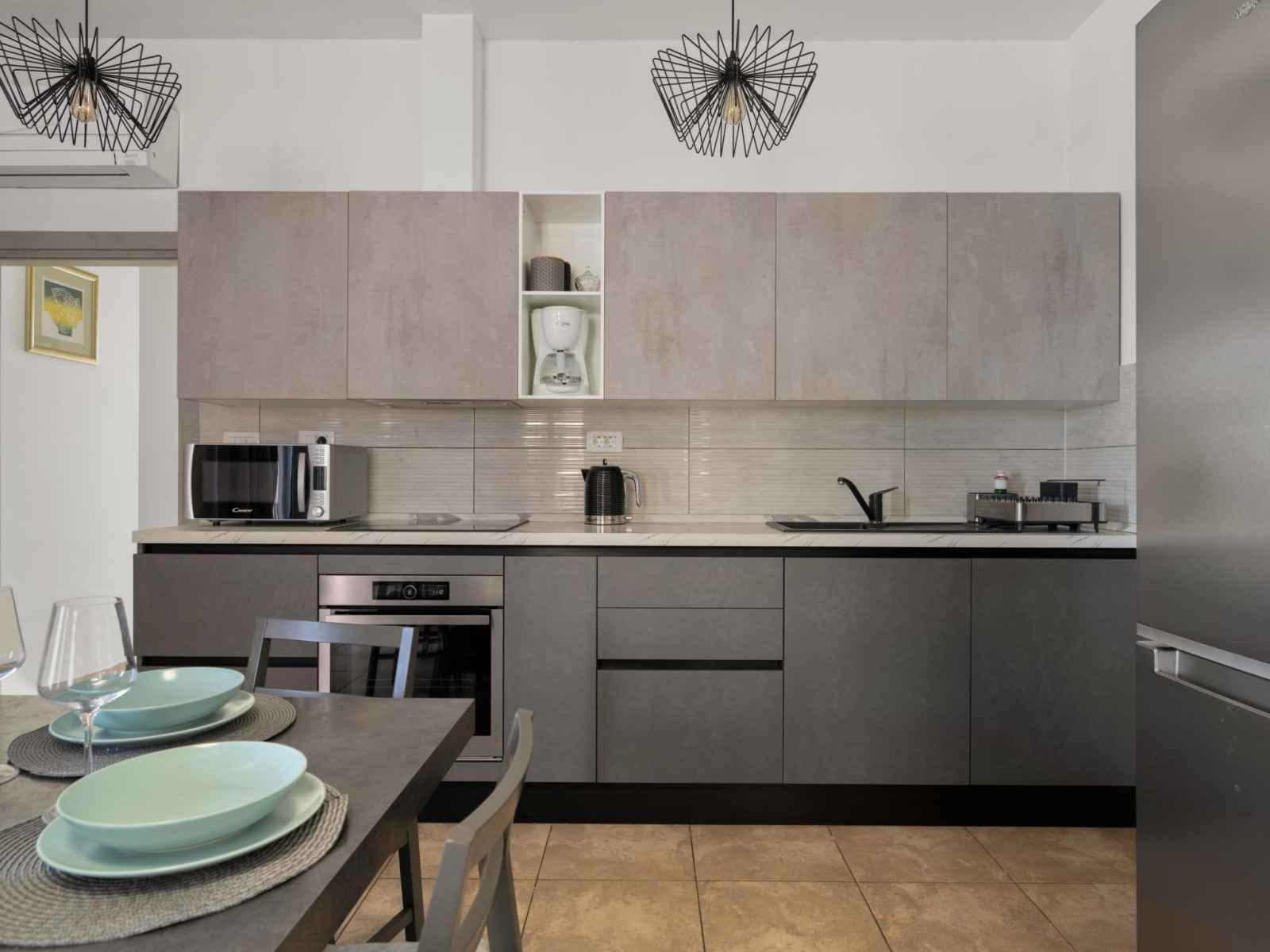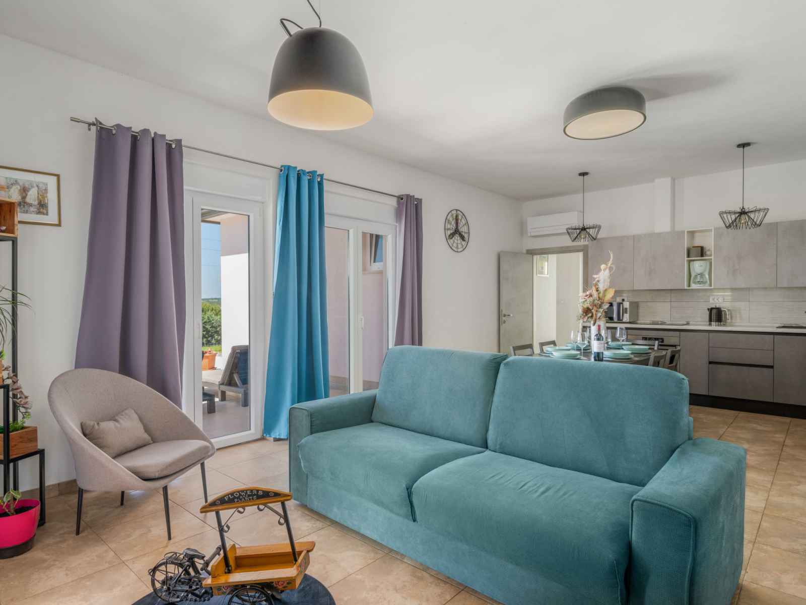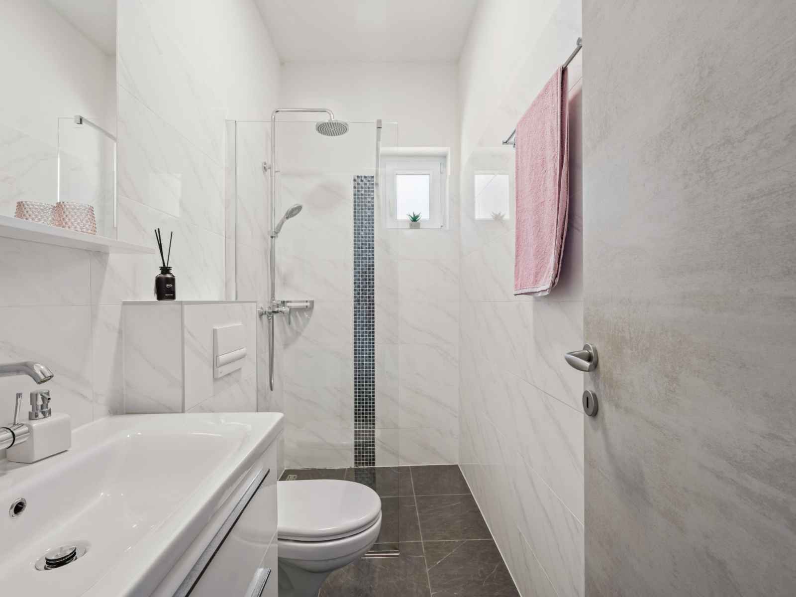 1 chambre avec 1 lit (90 cm, longueur 200 cm), 1 lit gigogne (90 cm, longueur 200 cm), douche/WC. Cuisine ouverte (four, lave-vaisselle, 4 plaques à induction, grille-pain, bouilloire électrique, micro-ondes, congélateur, cafetière électrique). Sortie sur la terrasse, sur la piscine. 2 douches/WC. Chauffage électrique, air-conditionné. Terrasse 20 m2, couverte. Meubles de terrasse, chaises longues. Vue partielle sur la mer. A disposition: lave-linge, sèche-linge, fer à repasser, sèche-cheveux. Internet (Connexion WIFI, gratuit). Veuillez noter: maison non-fumeur.