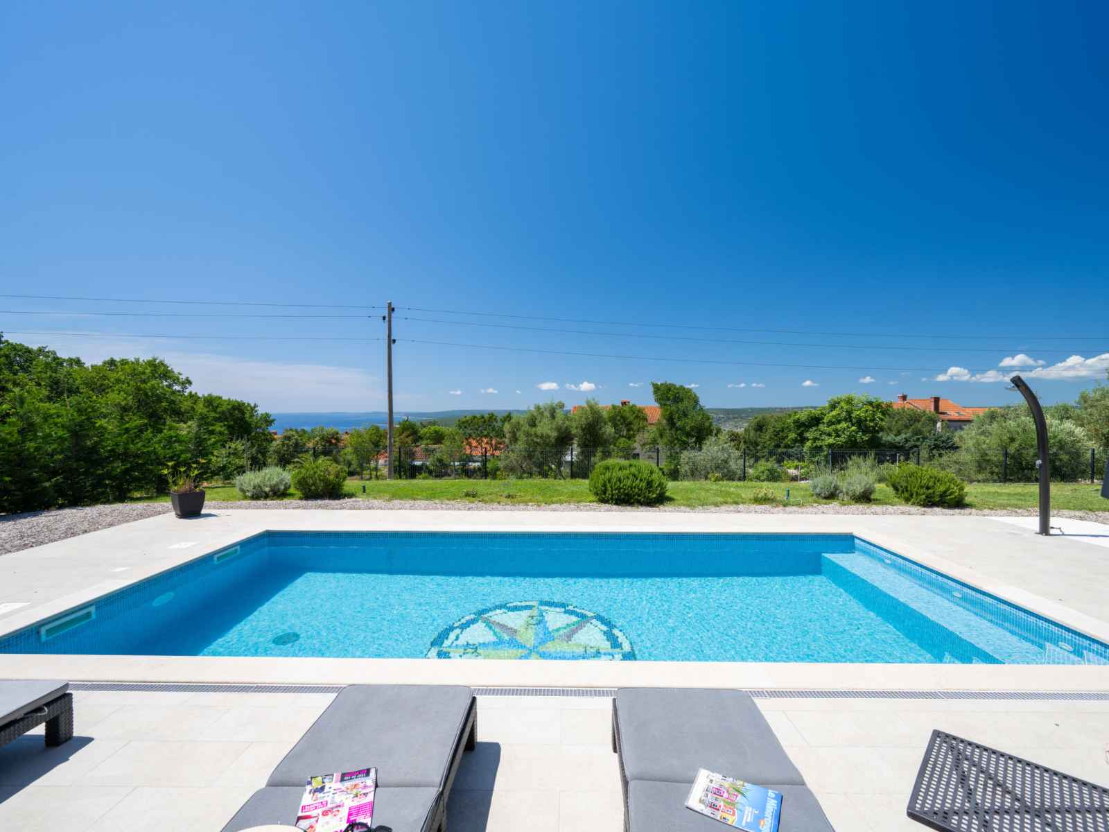 Belle maison individuelle "villa tomicich". dans le hameau de viškovići, à 15 km du centre de labin, à 3 km de la mer. a usage privé: terrain 300 m2 avec plantes, piscine rectangulaire (8 x 4 m, profondeur 140 cm, disponibilité saisonnière: 01.avr. - 30.oct.) avec marches intérieures. douche extérieure, terrasse, barbecue, entretien de la