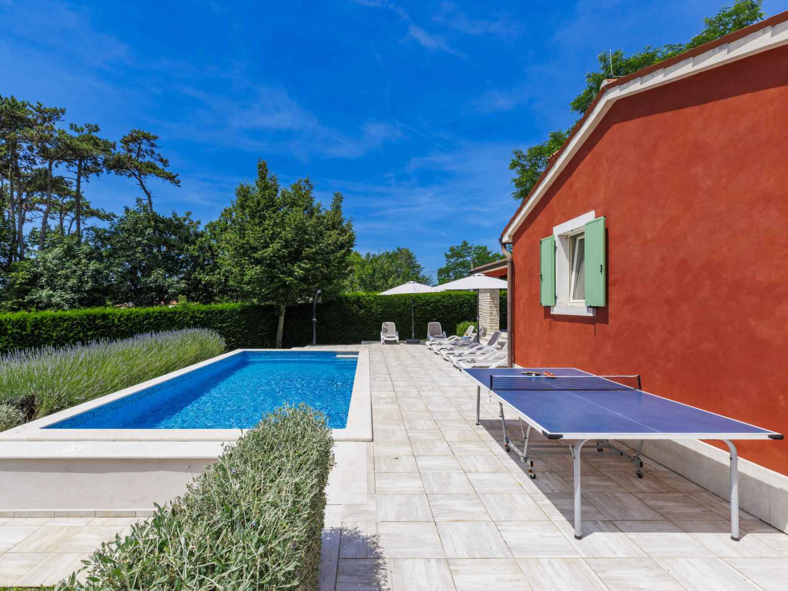 saisonnière: 01.mai. - 30.oct.) avec marches intérieures. douche extérieure, terrasse, meubles de jardin, barbecue, espace de jeux pour les enfants (toboggan, balançoire), entretien de la piscine par le propriétaire/jardinier. infrastructures de la maison: accès internet, ping-pong, baby foot, trampoline, lave-linge. a disposition: vélos (3). place de parking (pour 3 voitures) près de la maison sur le terrain. magasins 3 km, supermarché 7 km, restaurant 3 km, arrêt de bus 6.3 km, plage de graviers 12 km. veuillez noter: aéroport 50 km de la maison.