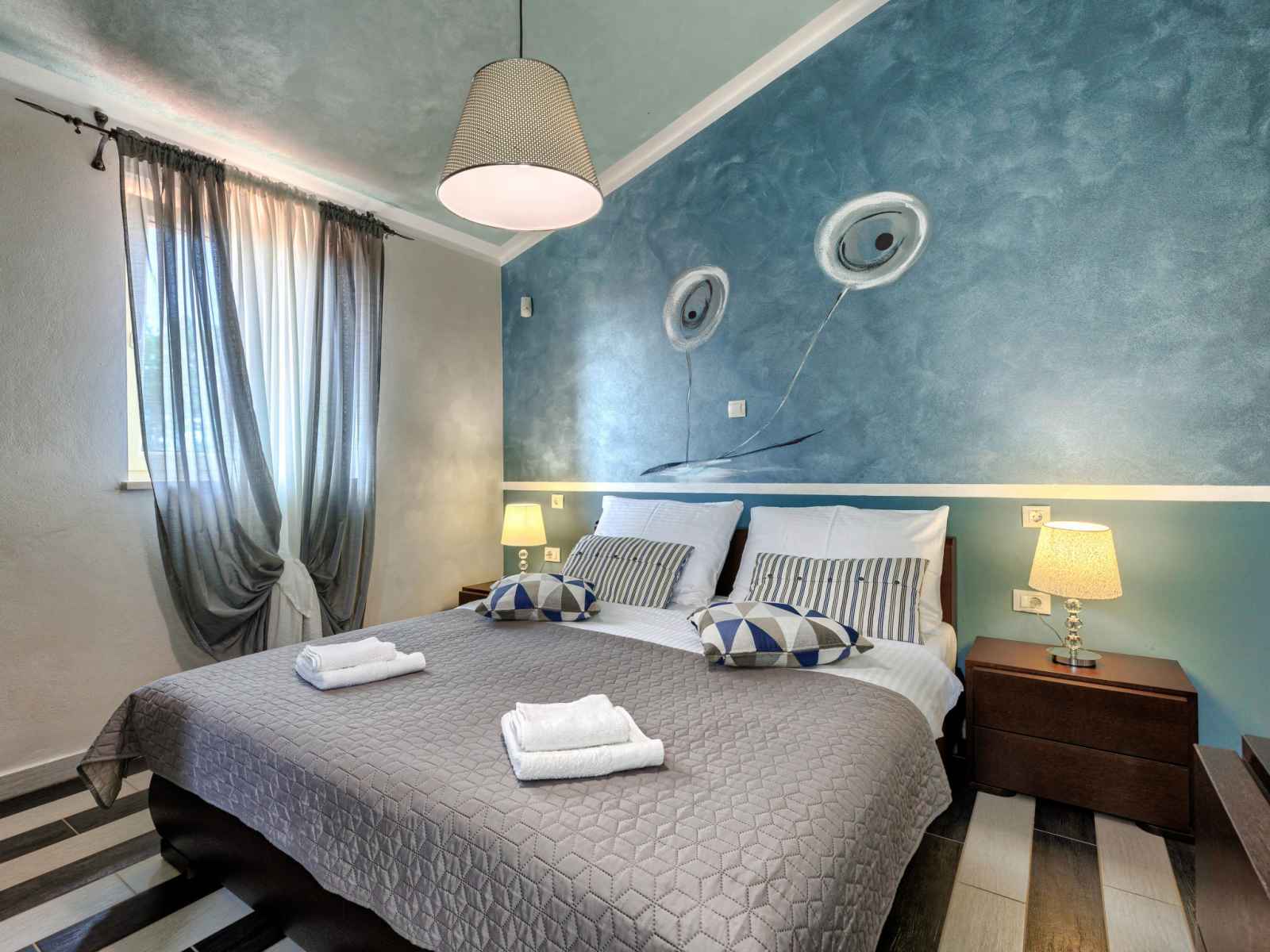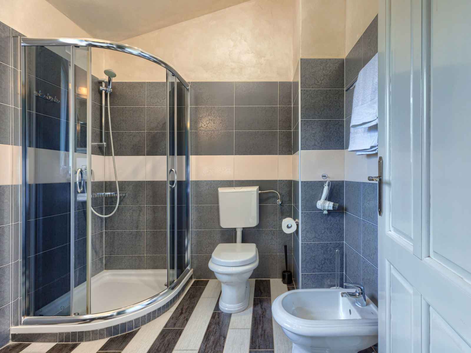 lave-vaisselle, 4 plaques vitrocéramiques, grille-pain, bouilloire électrique, micro-ondes, congélateur, cafetière électrique) avec air-conditionné. Sortie sur la terrasse, sur la piscine. WC séparé. À l'étage supérieur: 1 chambre avec 1 grand-lit (180 cm, longueur 200 cm), douche/bidet/WC et air-conditionné. 1 chambre avec 1 grand-lit (170 cm, longueur 200 cm), douche/bidet/WC et air-conditionné. 1 chambre avec 2 lits (90 cm, longueur 200 cm), douche/bidet/WC et air-conditionné. Chauffage, air-conditionné. Balcon 12 m2, terrasse 32 m2, couverte. Meubles de terrasse, mobilier de balcon, barbecue, chaises longues. A disposition: fer à repasser, sèche-cheveux. Internet (Connexion WIFI, gratuit). Veuillez noter: maison non-fumeur. Maximum 2 animaux/ chiens autorisés. Extincteur.