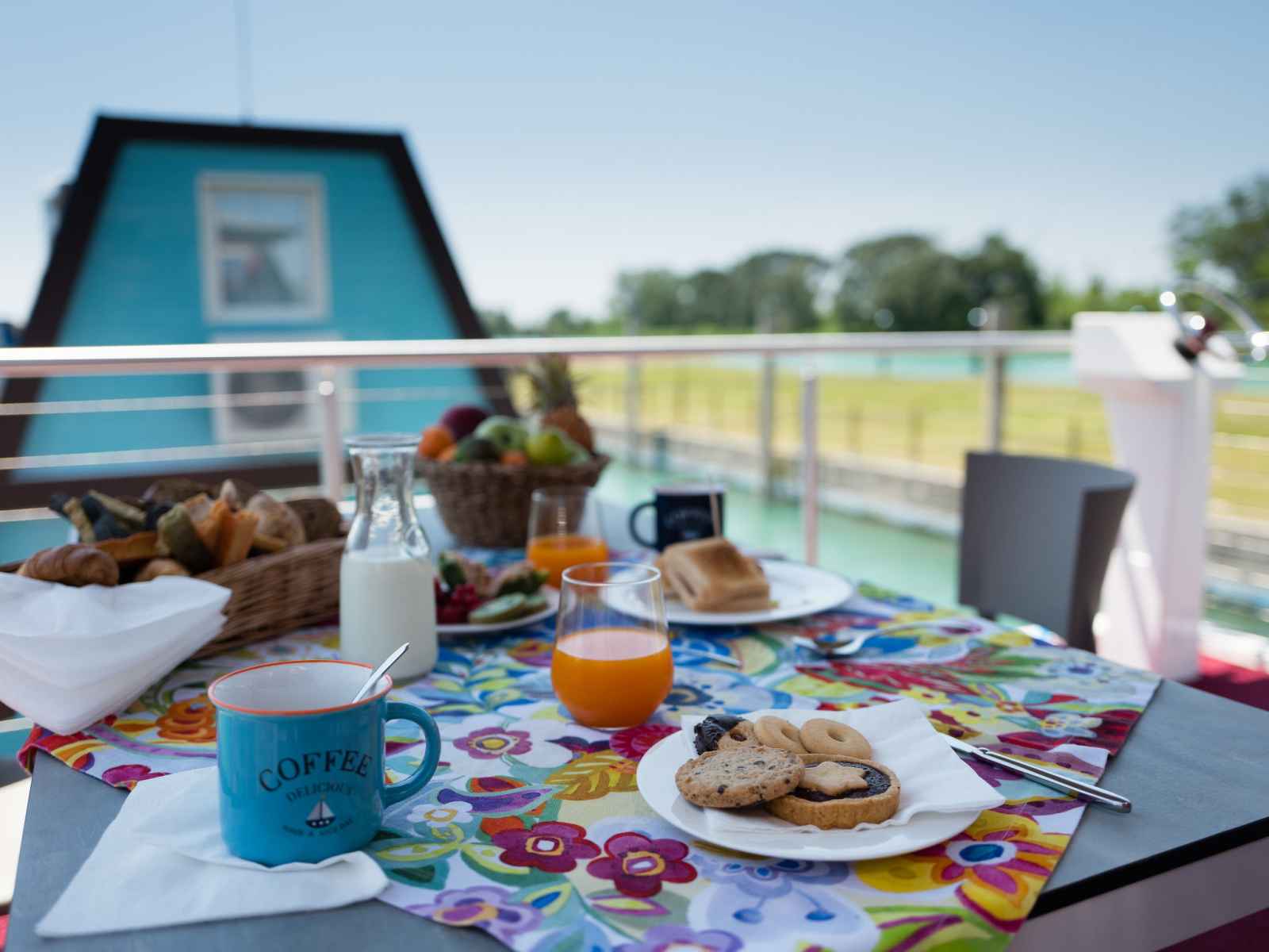 "houseboat river", maison 4 pièces 65 m2 sur 2 niveaux. aménagement très agréable et de style: séjour/chambre à coucher avec 1 divan-lit double, table pour les repas et tv (satellite). sortie sur la terrasse. 1 chambre double avec dressing. 1 chambre avec 2 lits. douche/wc. À l'étage supérieur: salle à manger avec coin-cuisine. sortie