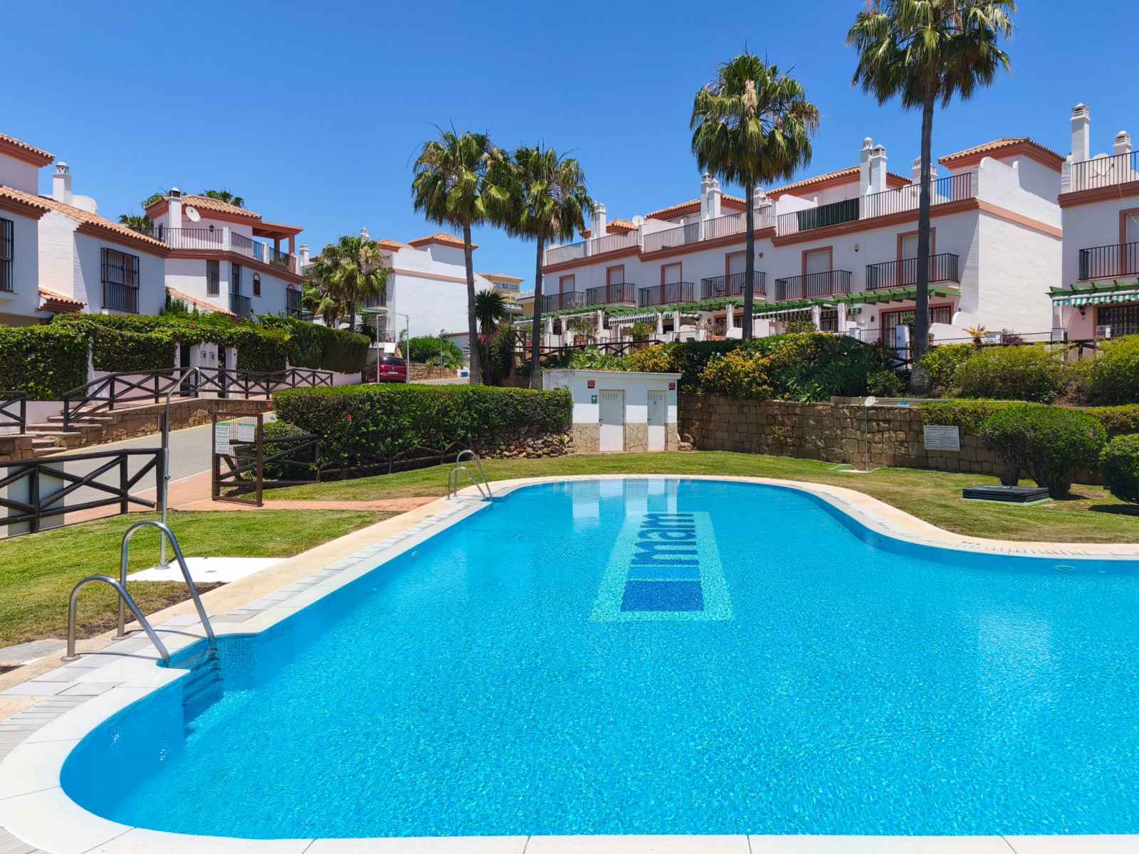 Cabopino: belle maison mitoyenne "las lomas de cabopino", année de construction 2002. À 14 km du centre de marbella, à 17 km du centre de fuengirola, situation tranquille, à 1 km de la mer, à 1 km de la plage. en commun: jardin avec pelouse, piscine (disponibilité saisonnière: 01.jan. - 31.dec. horaires d'ouverture de la piscine: