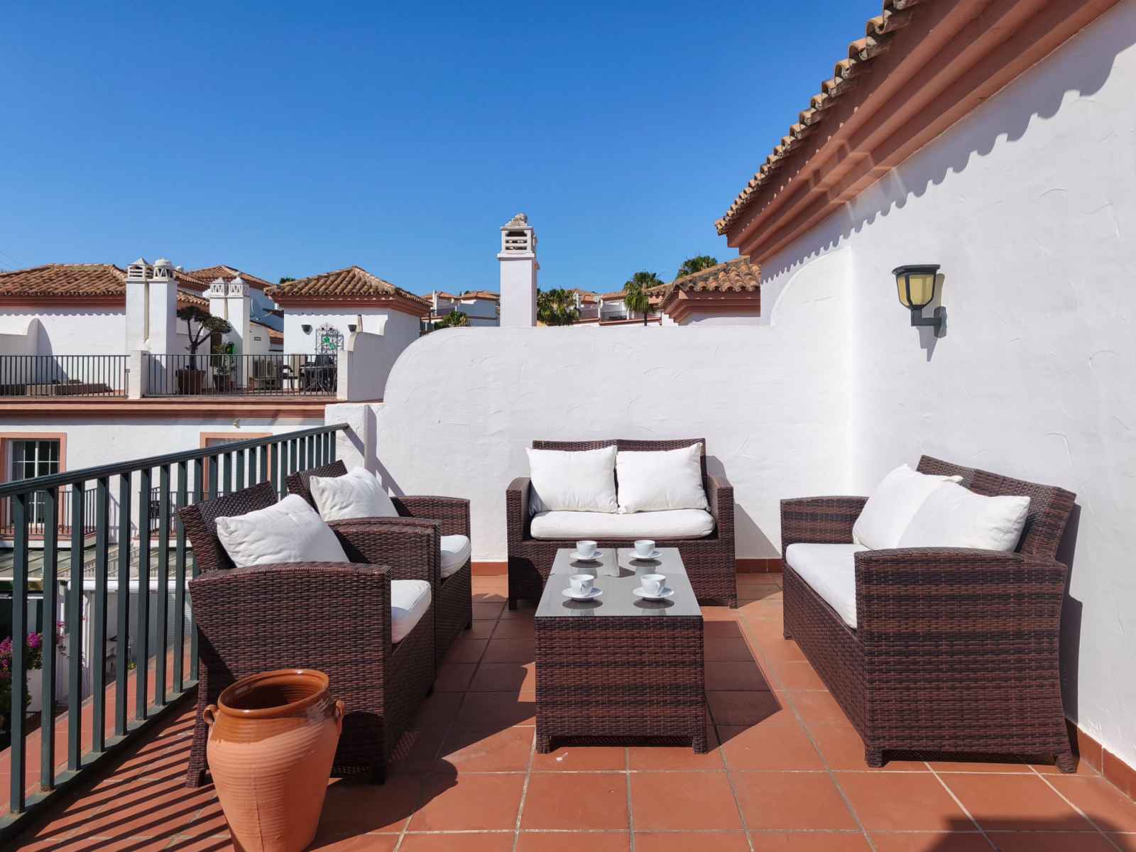 électrique, air-conditionné, chauffage à air chaud, chauffe eau (200 litres). À l'étage supérieur: 1 chambre avec 2 lits. 1 chambre avec 1 grand-lit. 1 chambre avec 1 grand-lit et douche/WC (privé). Bain/bidet/WC. Terrasse. Barbecue, chaises longues (2). Vue sur les montagnes et Terrain de golf. A disposition: lave-linge, sèche-linge, chaise haute pour enfant, lit bébé. Internet (Connexion WIFI, gratuit). Garage No 56. Veuillez noter: maison non-fumeur. VUT/MA/06723 // Reg. Nr.: ESFCTU0000290280003527880000000000000000VUT/MA/967230