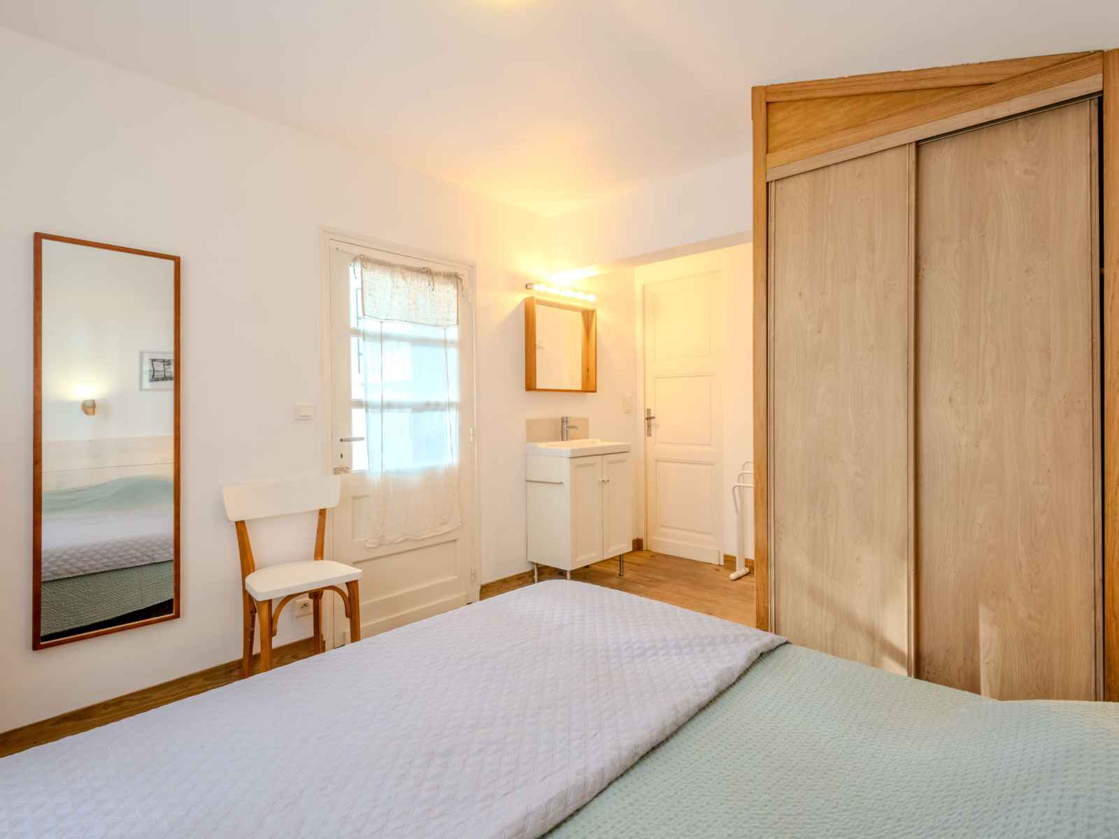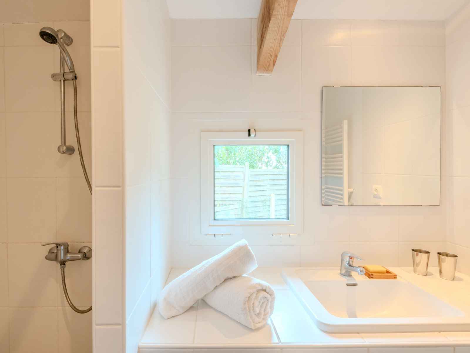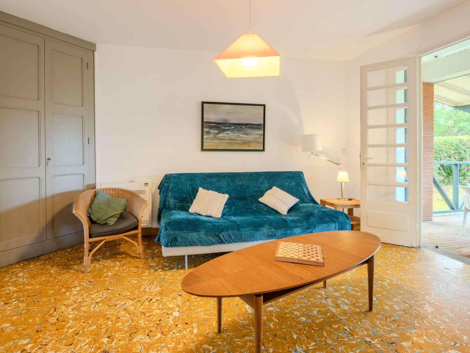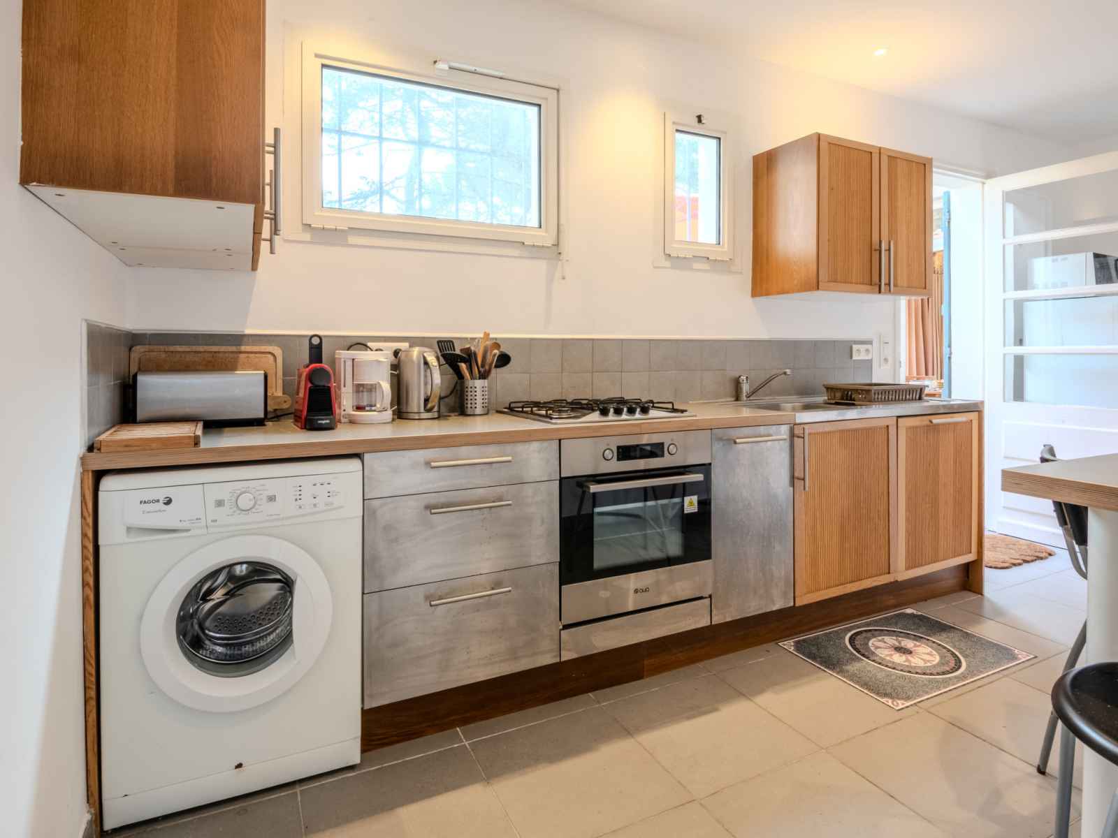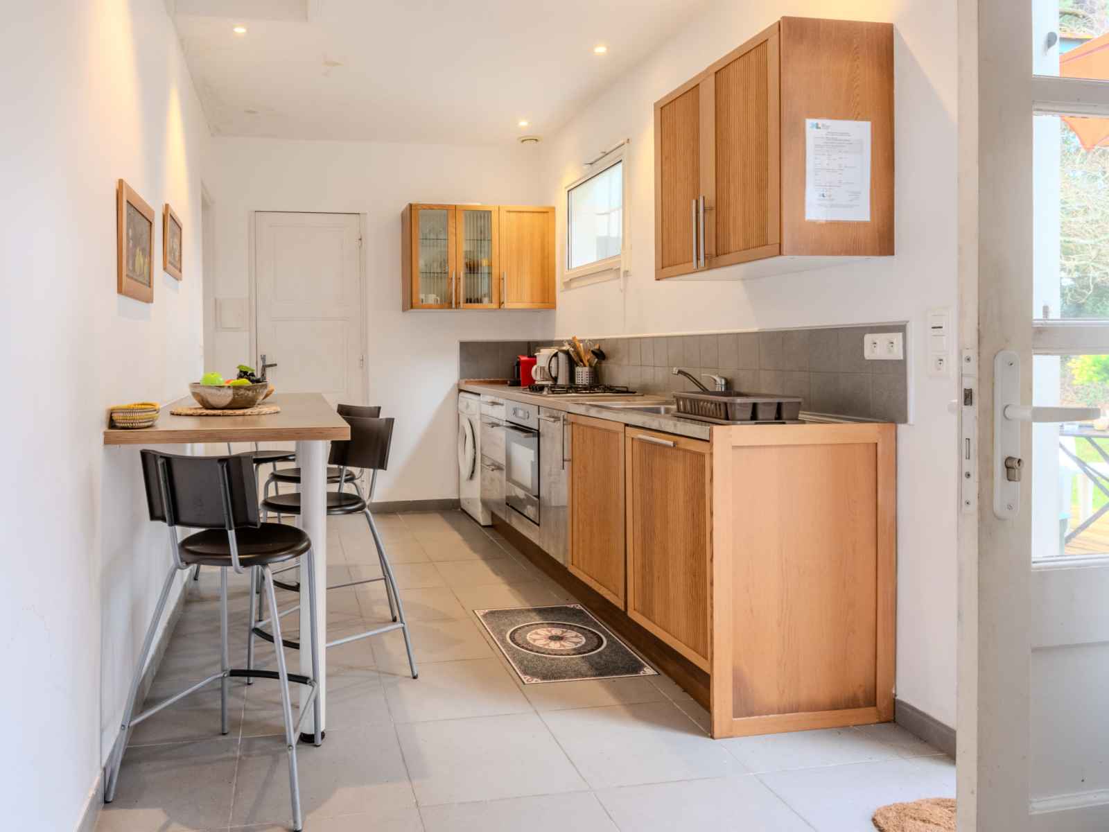 cm, longueur 190 cm). Cuisine (4 plaques de cuisson, four, lave-vaisselle, micro-ondes, cafetière électrique, Capsules pour machine à café (filtre + nespresso) (NON INCLUSES)). Sortie sur la terrasse. Douche/WC, WC séparé. Chauffage électrique. Terrasse couverte terrasse. Meubles de terrasse, chaises longues (4). A disposition: lave-linge. Internet (Connexion WIFI, en sus). Veuillez noter: maximum 1 animal/ chien autorisé. Détecteur de fumée.