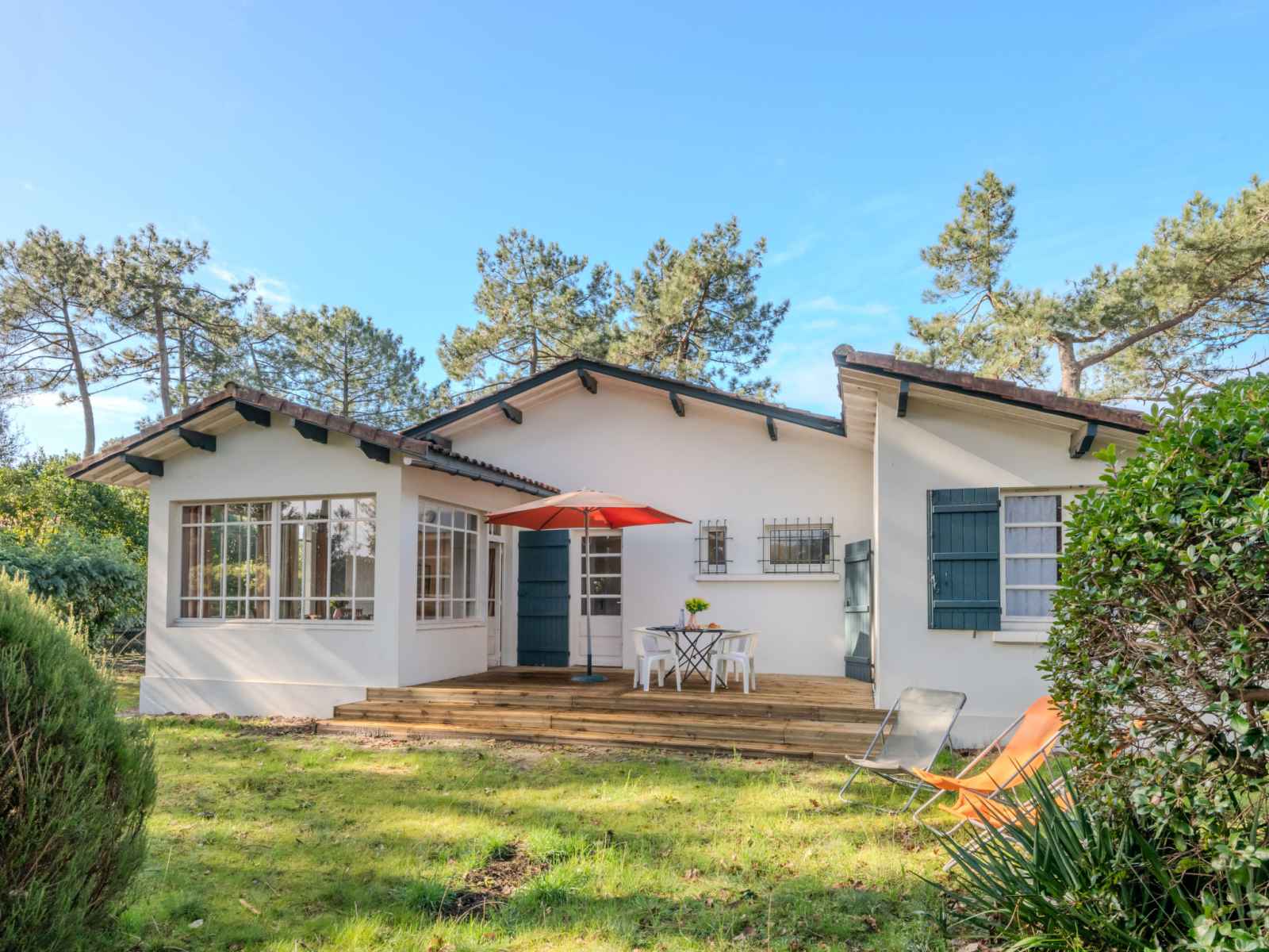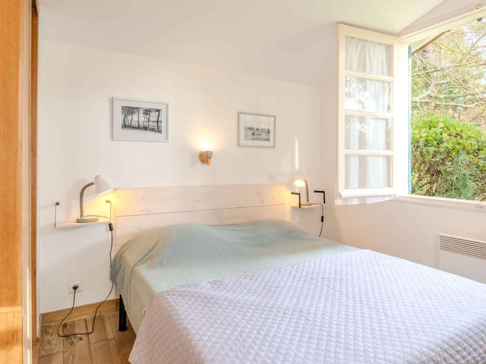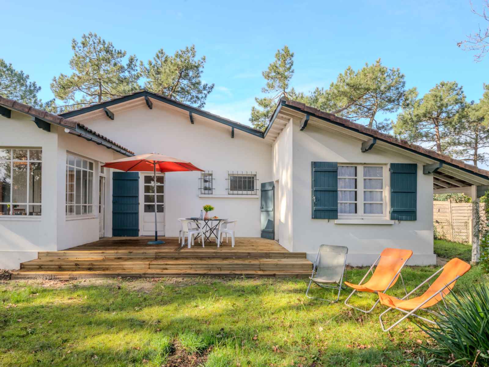 Maison individuelle "les bruyères". dans la localité, à 1.2 km du centre de mimizan-plage, à 1.1 km de la mer, à 1.1 km de la plage, à 100 m de la rivière. a usage privé: terrain à l'état naturel 1'300 m2 (clôturé) avec arbres, place de parking sur le terrain. supermarché 1.2 km, arrêt de bus 450 m, gare ferroviaire "labouheyre" 30