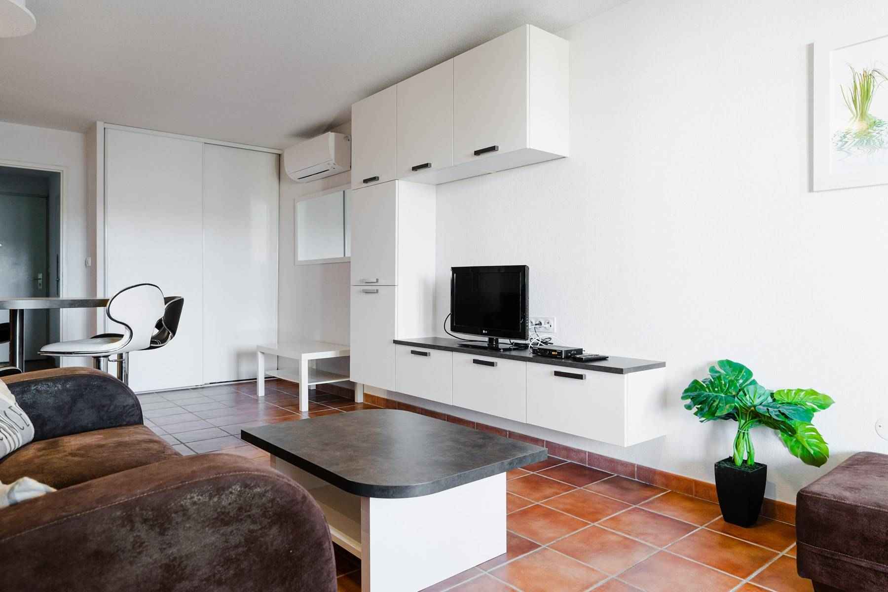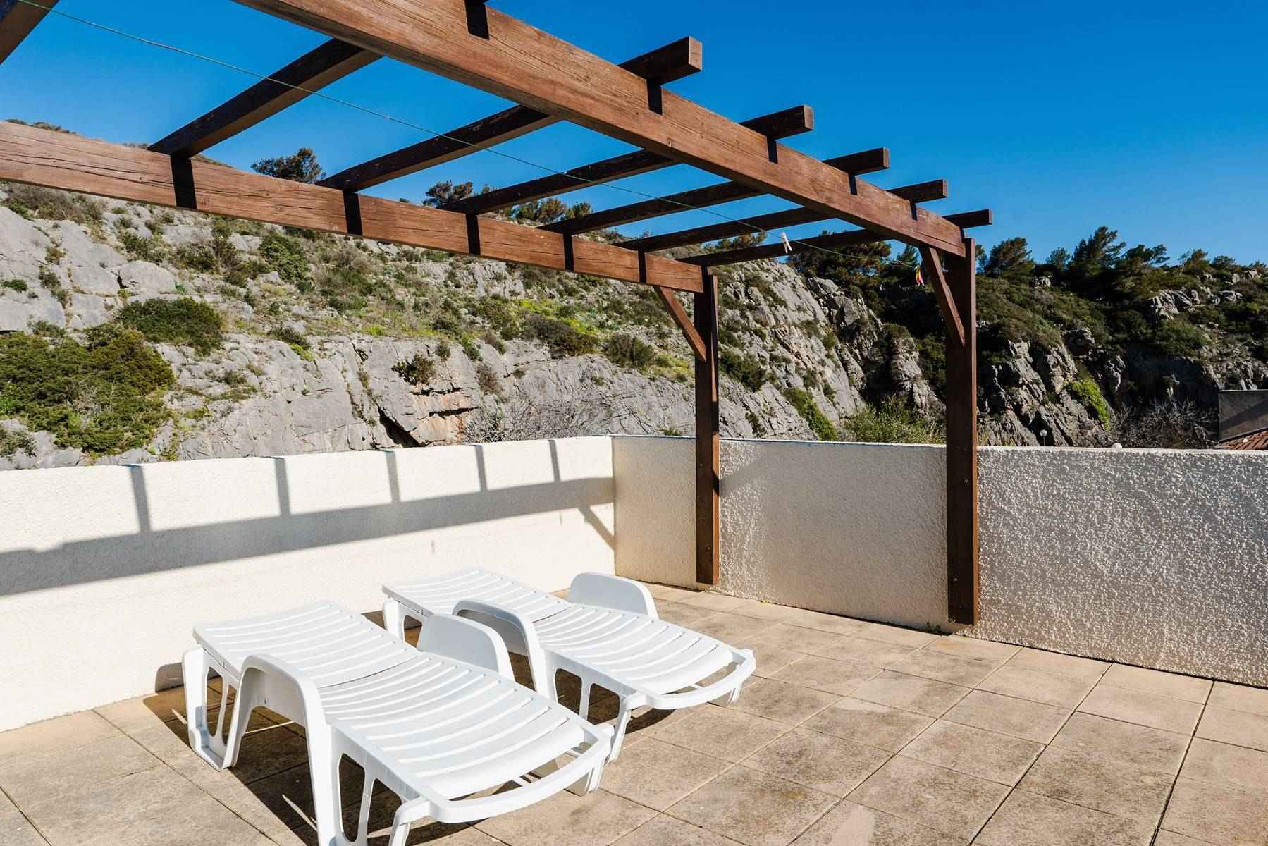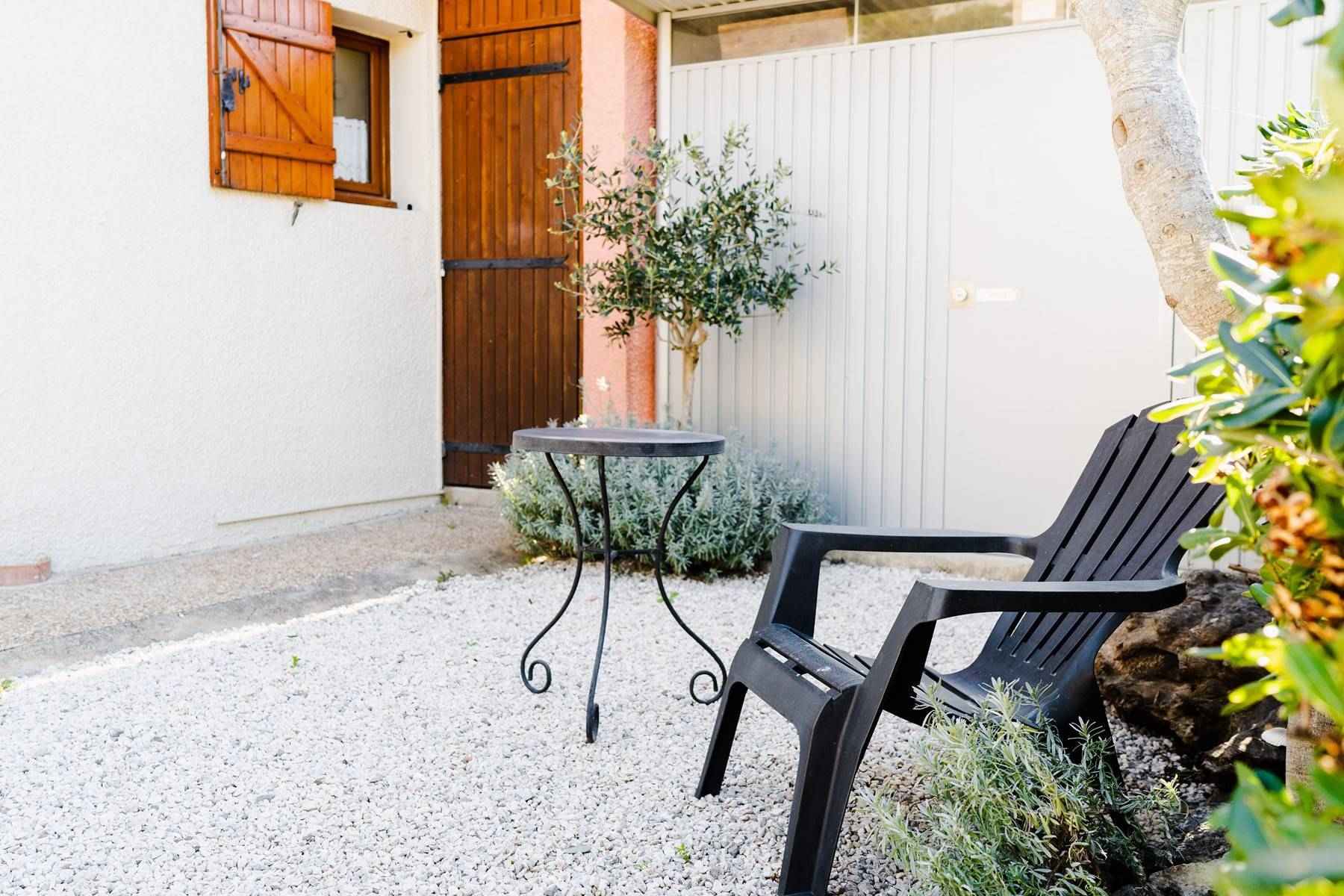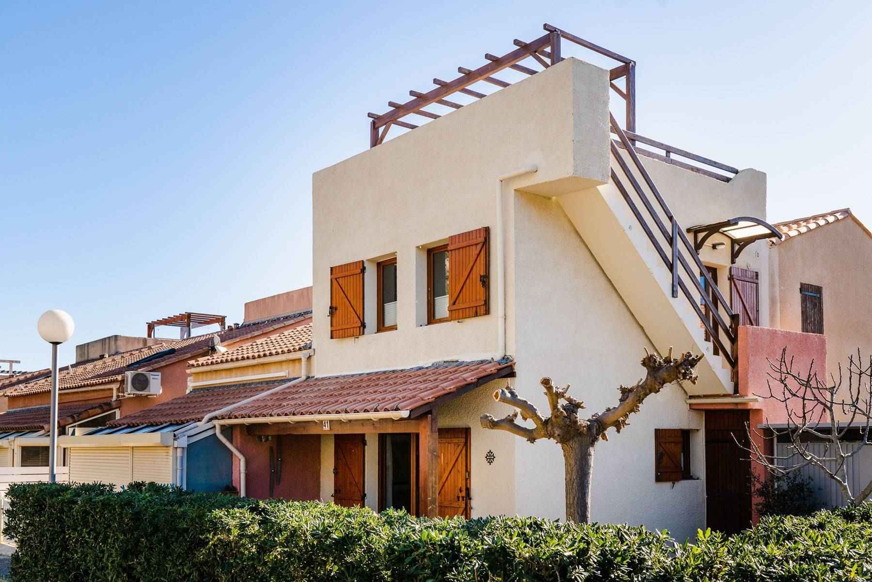 La résidence "Les Mas de la Mer" se situe au pied du massif de la Clape (site naturel protégé), près du centre sportif (piscine en été), la grande plage est toute proche et le centre avec ses commerces & restaurants facilement accessible à pied.