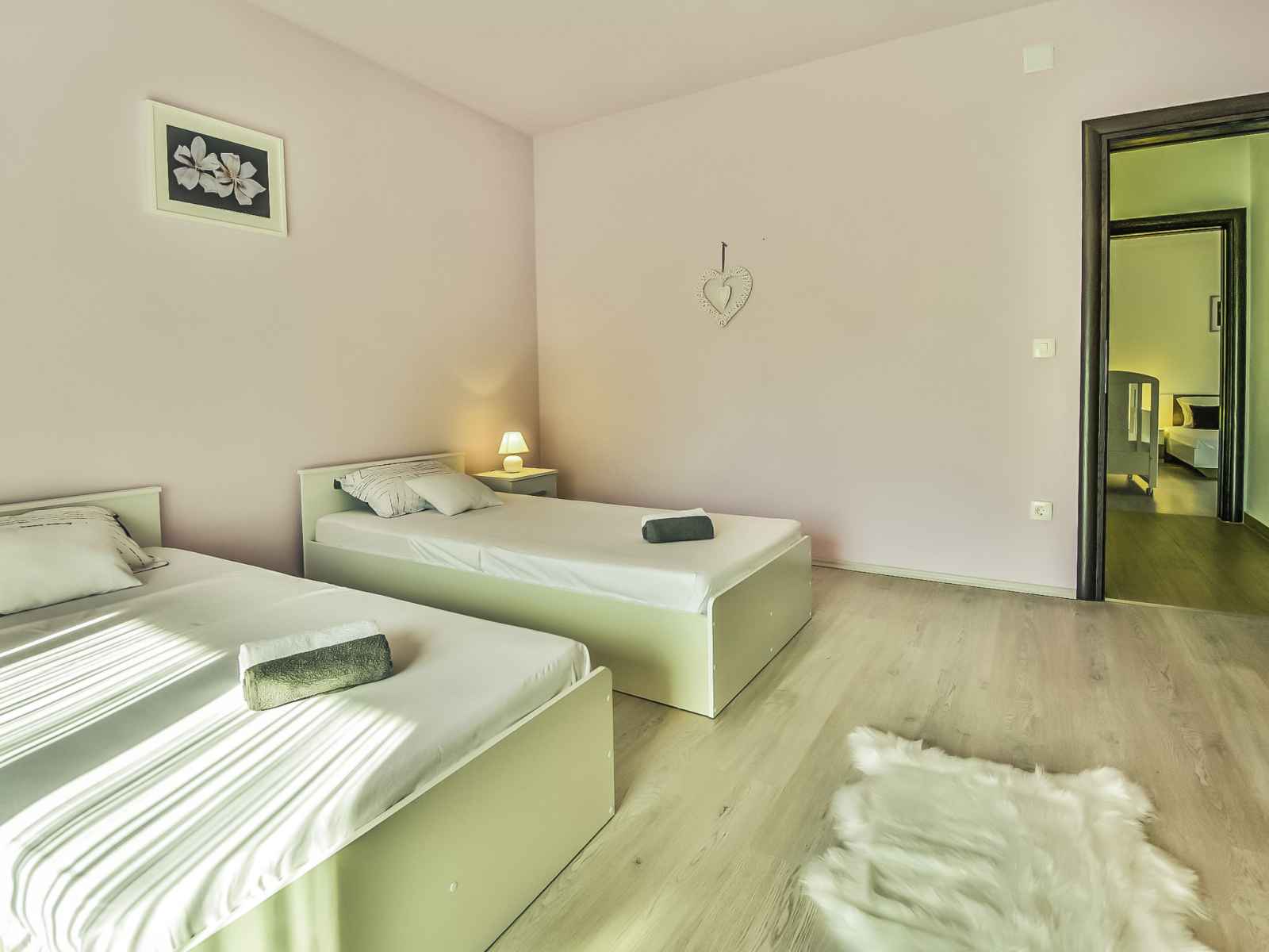 Maison 4 pièces 120 m2, situation sud-ouest. séjour/salle à manger 50 m2 avec tv (satellite) (écran plat), air-conditionné. sortie sur la terrasse. 1 chambre avec 1 grand-lit (180 cm, longueur 200 cm), 1 lit pliant (80 cm, longueur 190 cm). sortie sur le balcon. 1 chambre avec 2 lits (90 cm, longueur 200 cm), 1 lit pliant (80 cm, longueur 190