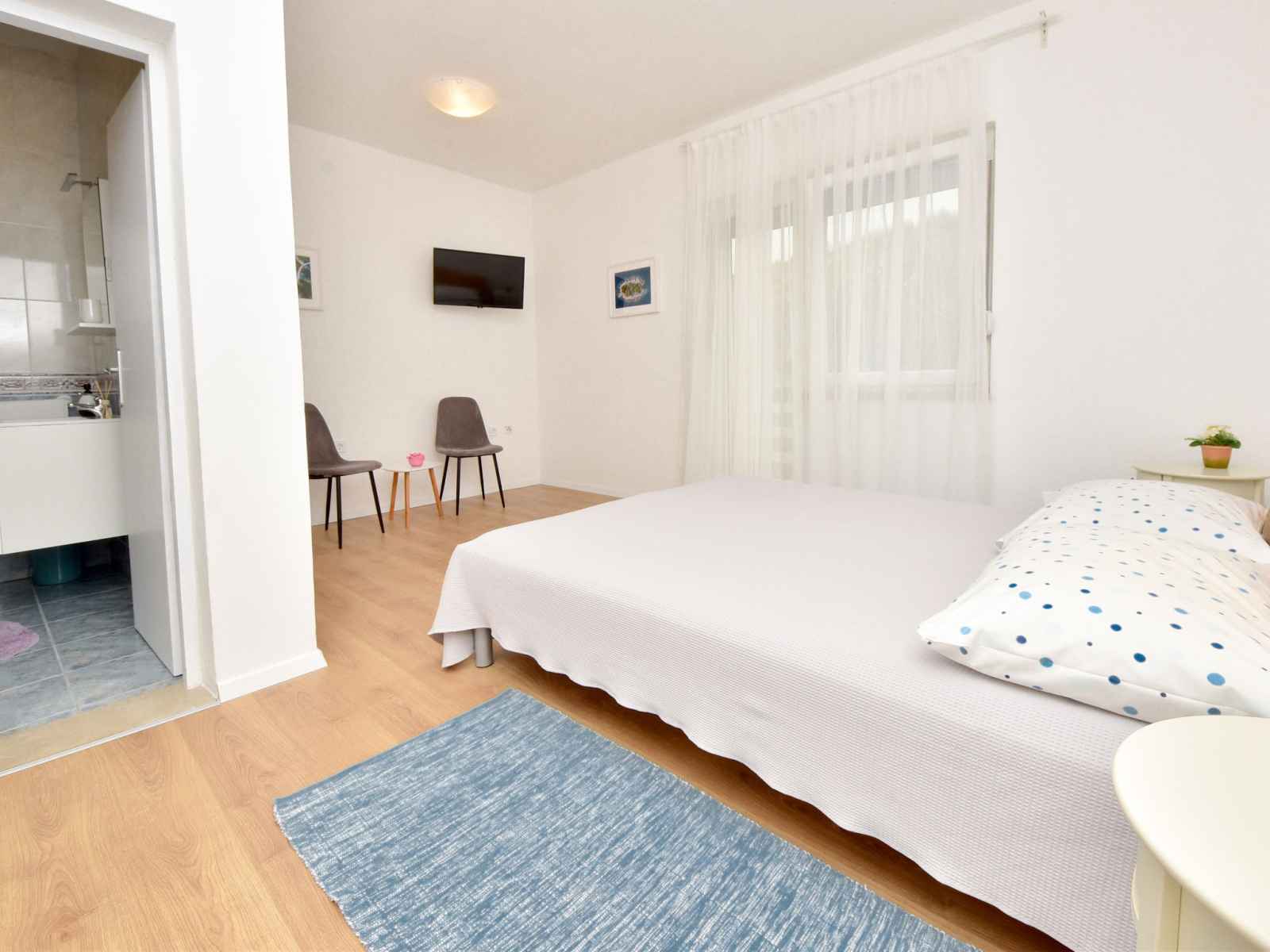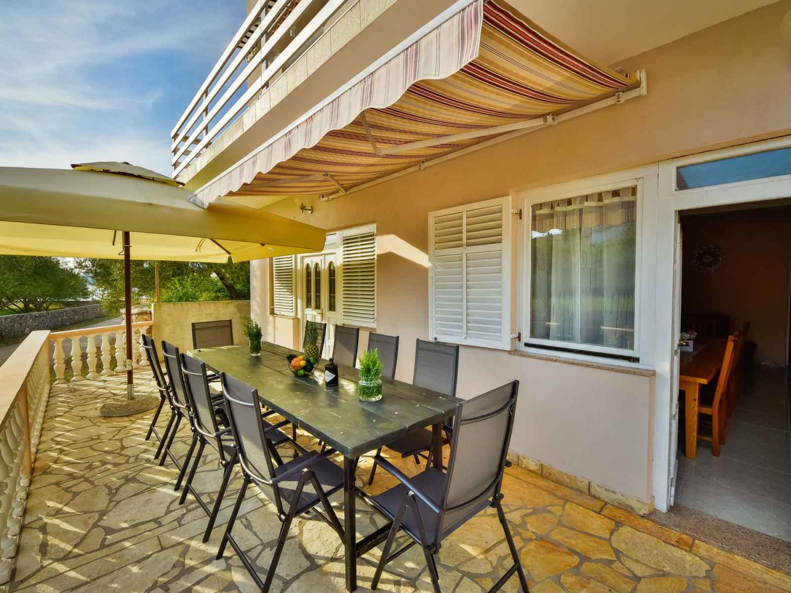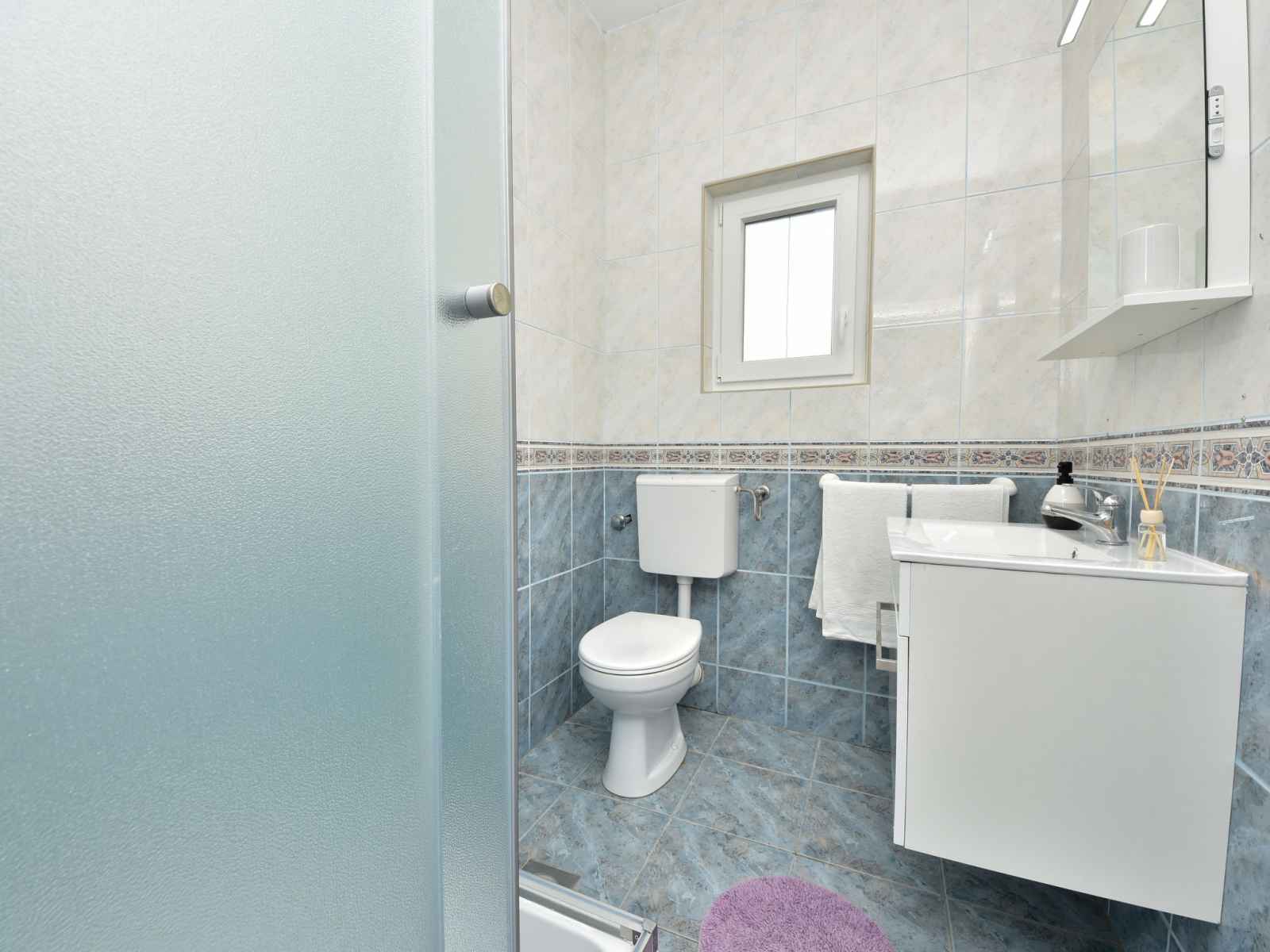 supérieur: entrée avec air-conditionné. 1 chambre avec 2 lits (80 cm, longueur 190 cm), douche/WC et TV (satellite). Sortie sur le balcon. 1 chambre avec 1 divan-lit (120 cm, longueur 200 cm), 1 grand-lit (160 cm, longueur 200 cm), douche/WC. Sortie sur le balcon. 1 chambre avec 2 lits (80 cm, longueur 200 cm), douche/WC et TV (satellite). Sortie sur le balcon. 1 chambre avec 1 divan-lit (120 cm, longueur 200 cm), 1 lit double (2 x 80 cm, longueur 200 cm), douche/WC et TV (satellite). Sortie sur le balcon. Balcon 12 m2, balcon 12 m2, grande terrasse 30 m2 partiellement couverte terrasse 15 m2. Meubles de terrasse. Vue sur la mer. A disposition: chaise haute pour enfant, lit bébé. Internet (Connexion WIFI, gratuit). Veuillez noter: maximum 1 animal/ chien autorisé. Extincteur. klasa:UP/i-335-03/20-01/1104 urbroj : 2198/1-19-0