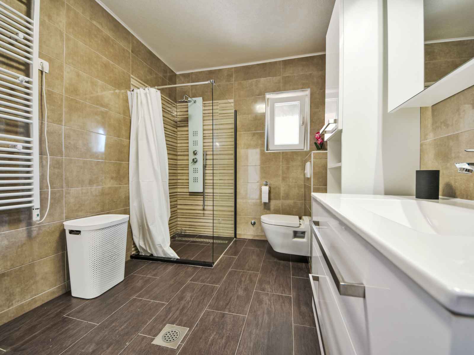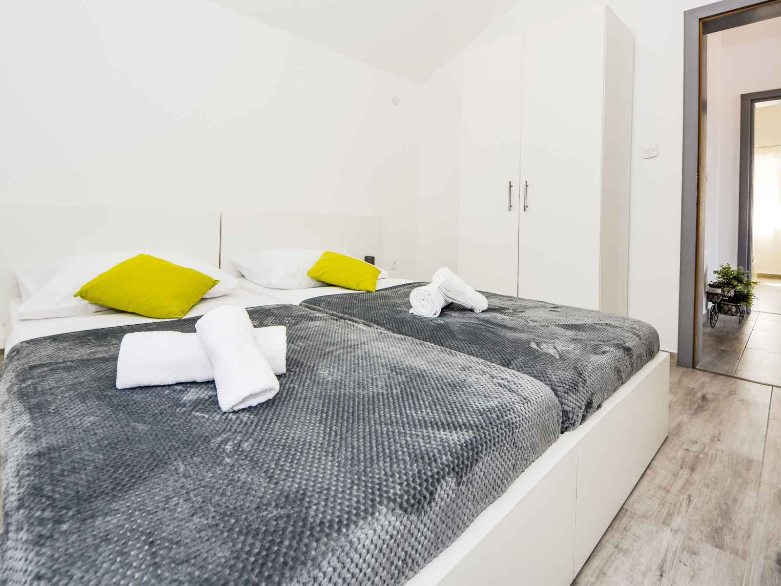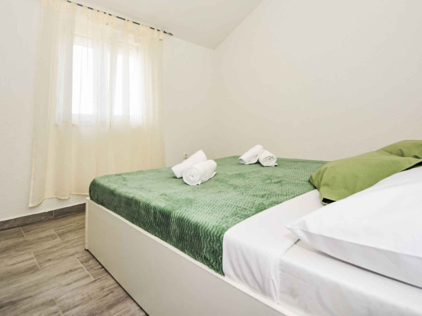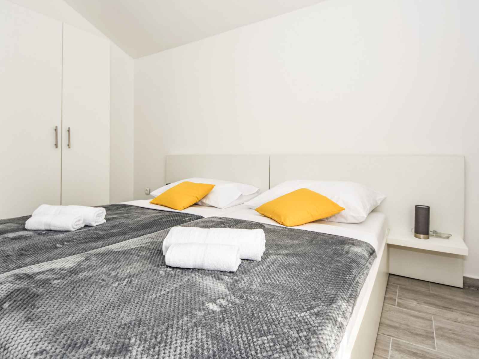 terrasse, sur la piscine. Douche/WC. À l'étage supérieur: (escalier extérieur) entrée avec air-conditionné. 1 chambre, mansardée hauteur plafond 110 - 220 cm avec 2 lits (90 cm, longueur 200 cm), ventilateur. 1 chambre, mansardée hauteur plafond 110 - 202 cm avec 1 grand-lit (180 cm, longueur 200 cm), ventilateur. Douche/WC. Terrasse 30 m2. Meubles de terrasse, chaises longues. Vue sur la piscine. A disposition: coffre-fort, fer à repasser, sèche-cheveux. Internet (Connexion WIFI, gratuit).