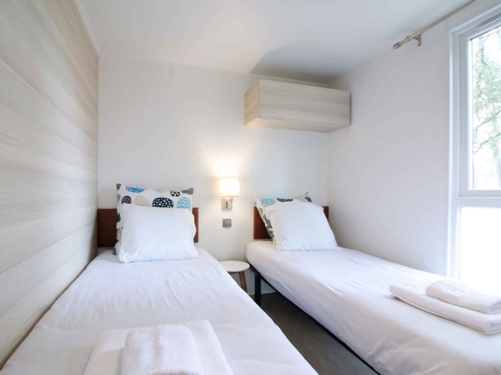 "premium key west", bungalow 4 pièces 42 m2. logement idéal pour 4 adultes + 2 enfants. clair, aménagement agréable et plaisant: séjour/salle à manger avec table pour les repas et tv (écran plat). sortie sur la terrasse. 1 chambre avec 1 grand-lit (160 cm, longueur 200 cm), douche/wc. sortie sur la terrasse. 1 chambre avec 2 lits (80 cm,
