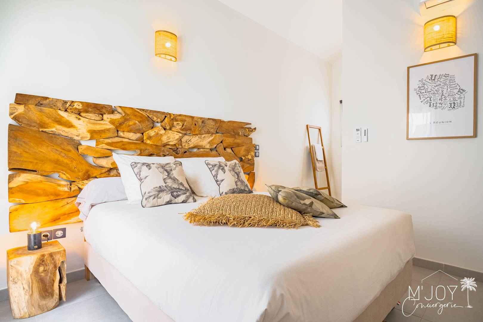 Sur la gauche, une seconde chambre nommée Salazie peut accueillir un couple en lit double mais il est aussi possible de séparer les lits en deux lits individuels de 90x200cm.