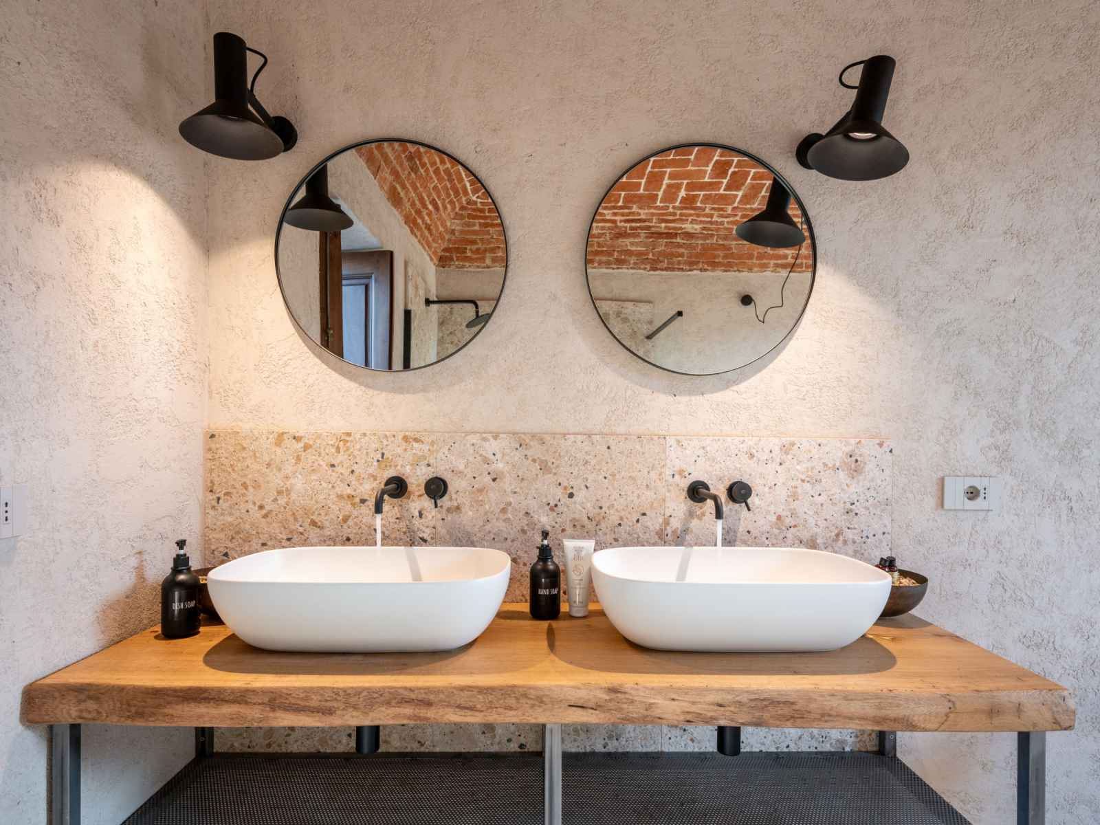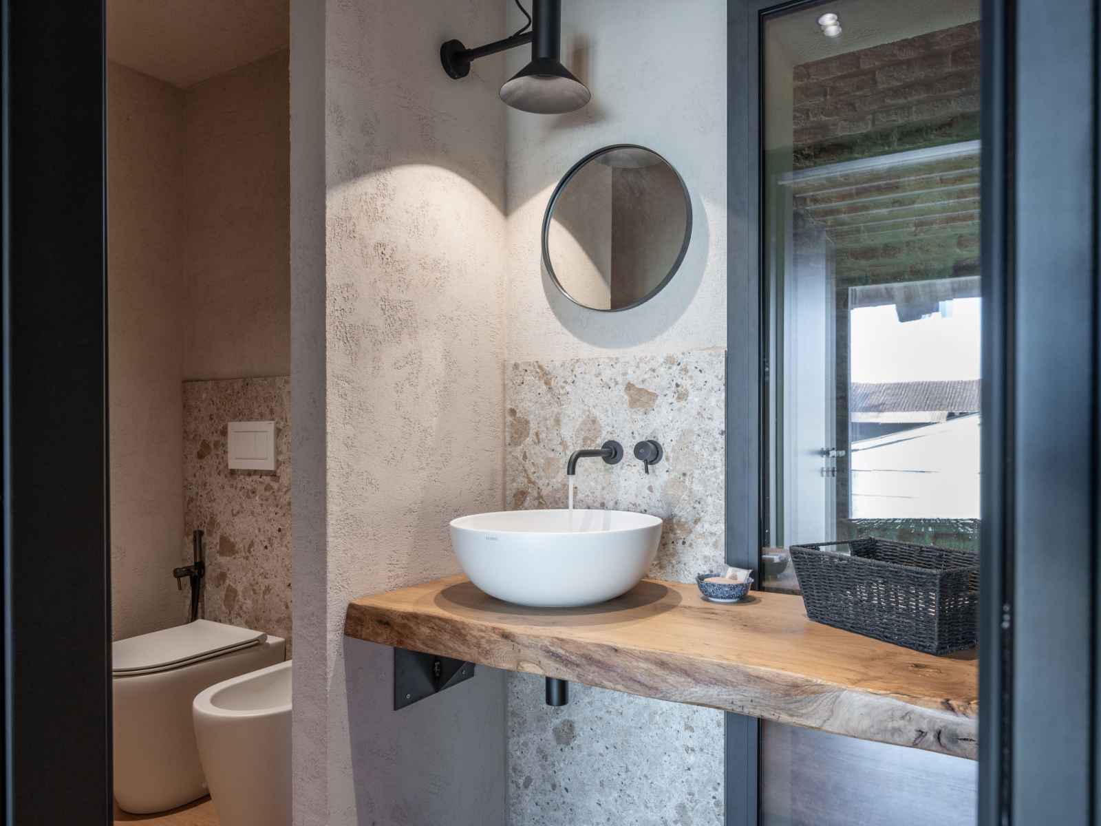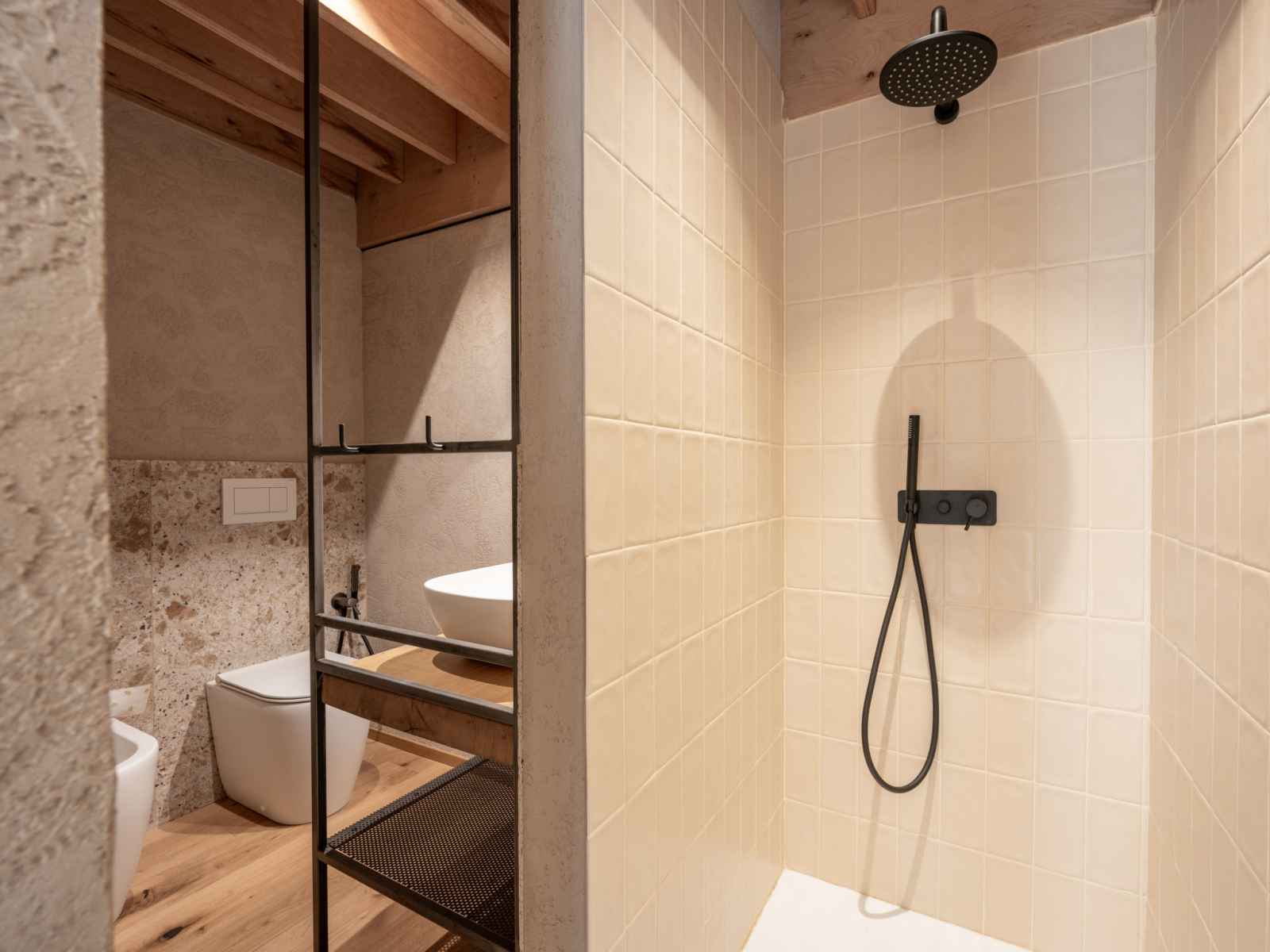 induction, grille-pain, bouilloire électrique, micro-ondes). 2 douches/WC, double vasque. Chauffage électrique, air-conditionné. Possibilité de chauffage uniquement du 15.10. au 15.04. À l'étage supérieur: (escalier en colimaçon) 1 chambre 26 m2 avec 1 divan-lit double, 1 lit double, douche/bidet/WC et TV. 1 chambre double avec douche/bidet/WC et TV. 1 chambre double avec douche/bidet/WC et TV. (escalier extérieur) 1 chambre double avec baie vitrée avec douche/bidet/WC, hammam - douche et TV. Chaises longues. A disposition: lave-linge, lit bébé jusqu'à 2 ans, sèche-cheveux. Internet (Connexion WIFI, gratuit). Veuillez noter: maison non-fumeur. Une chambre double avec salle de bain est accessible uniquement par un escalier extérieur. IT001197B9H2JMCDDL