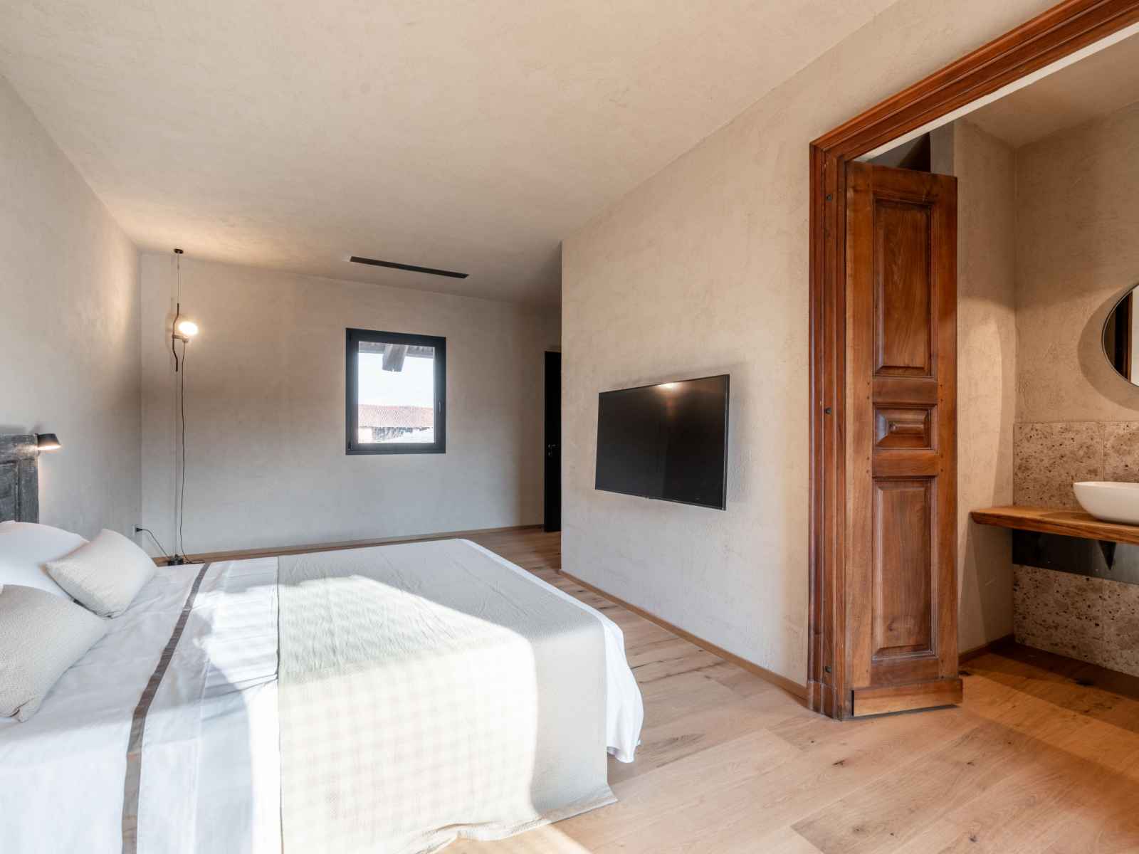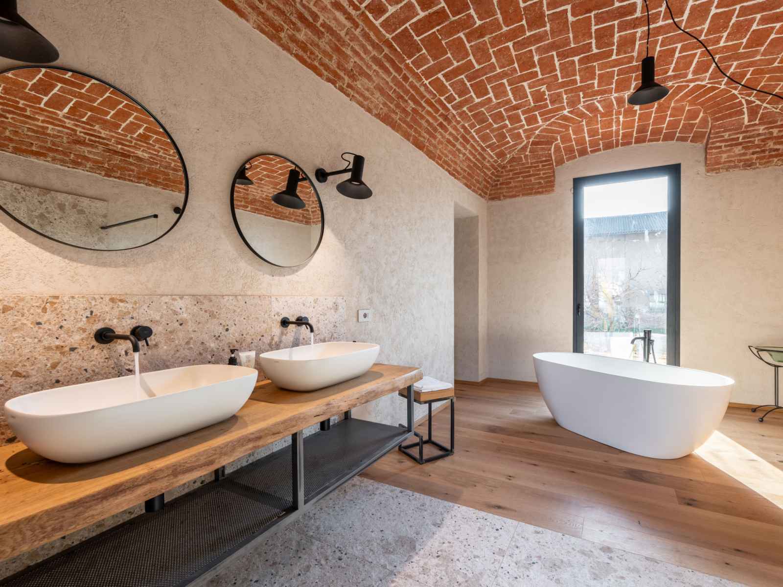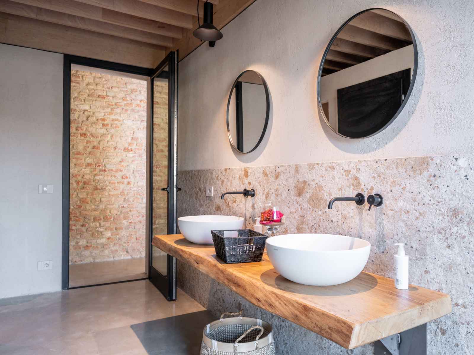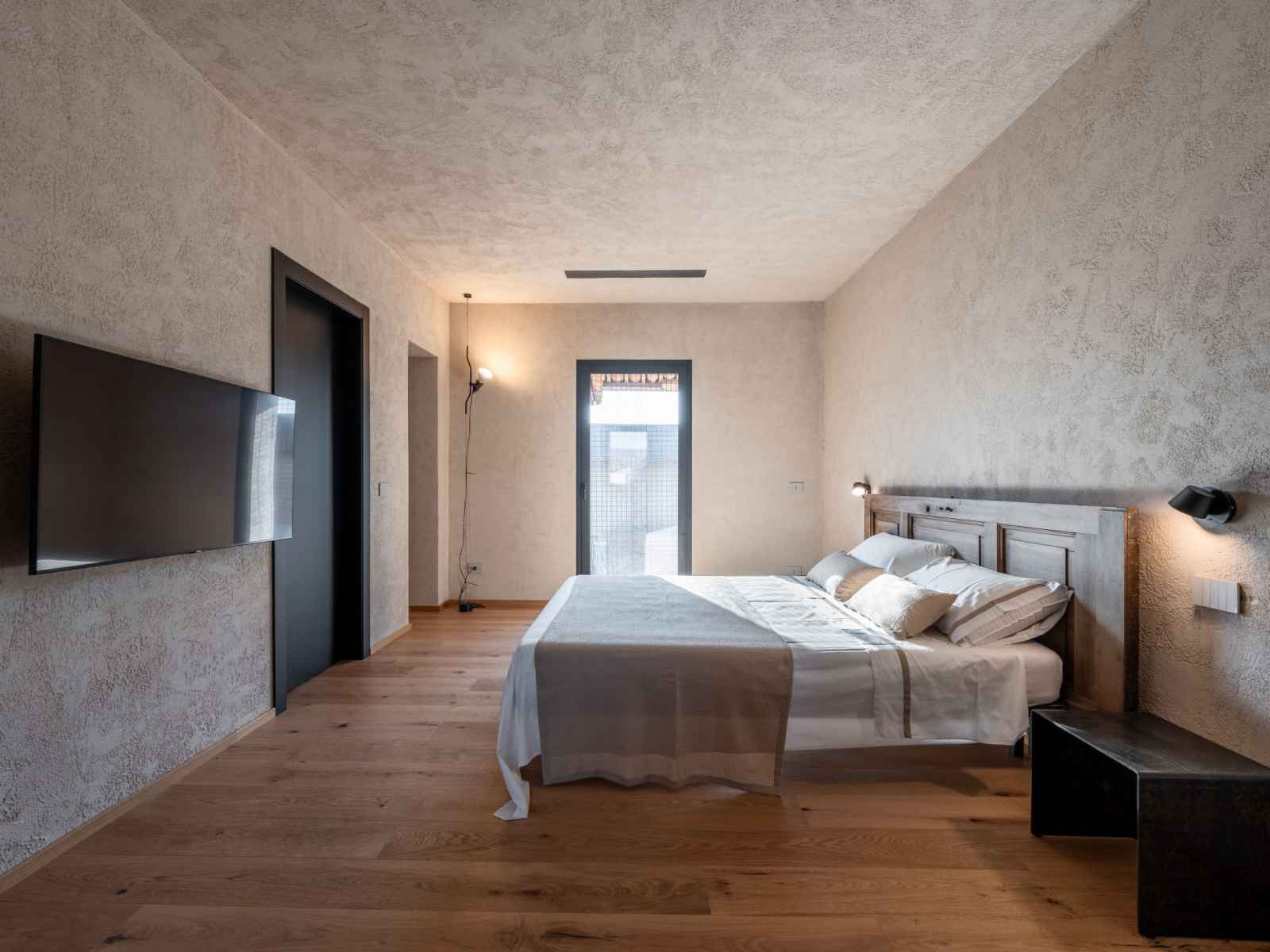 induction, grille-pain, bouilloire électrique, micro-ondes). 2 douches/WC, double vasque. Chauffage électrique, air-conditionné. Possibilité de chauffage uniquement du 15.10. au 15.04. À l'étage supérieur: (escalier en colimaçon) 1 chambre 26 m2 avec 1 divan-lit double, 1 lit double, douche/bidet/WC et TV. 1 chambre double avec douche/bidet/WC et TV. 1 chambre double avec douche/bidet/WC et TV. (escalier extérieur) 1 chambre double avec baie vitrée avec douche/bidet/WC, hammam - douche et TV. Chaises longues. A disposition: lave-linge, lit bébé jusqu'à 2 ans, sèche-cheveux. Internet (Connexion WIFI, gratuit). Veuillez noter: maison non-fumeur. Une chambre double avec salle de bain est accessible uniquement par un escalier extérieur. IT001197B9H2JMCDDL