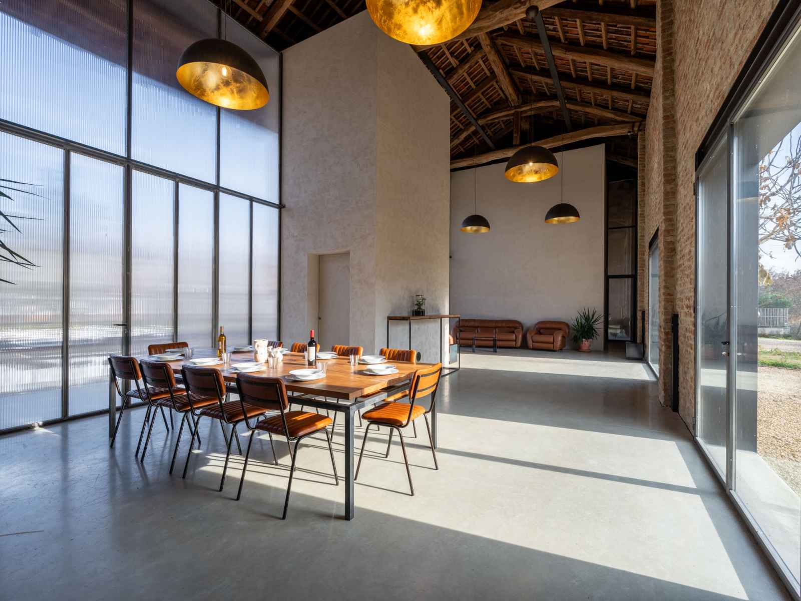"we rural", villa 7 pièces 500 m2 sur 2 niveaux. aménagement moderne et de style: entrée. séjour/salle à manger ouvert avec baie vitrée avec table pour les repas. sortie sur le jardin. 1 chambre 35 m2 avec 1 divan-lit double, 1 lit double, coin-cuisine, bain/douche/bidet/wc, double vasque et tv. cuisine (four, lave-vaisselle, 8 plaques à