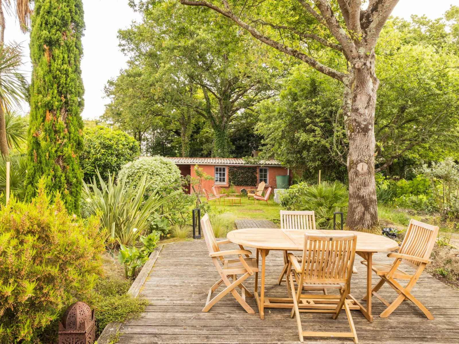 terrasse bois donnant sur un jardin