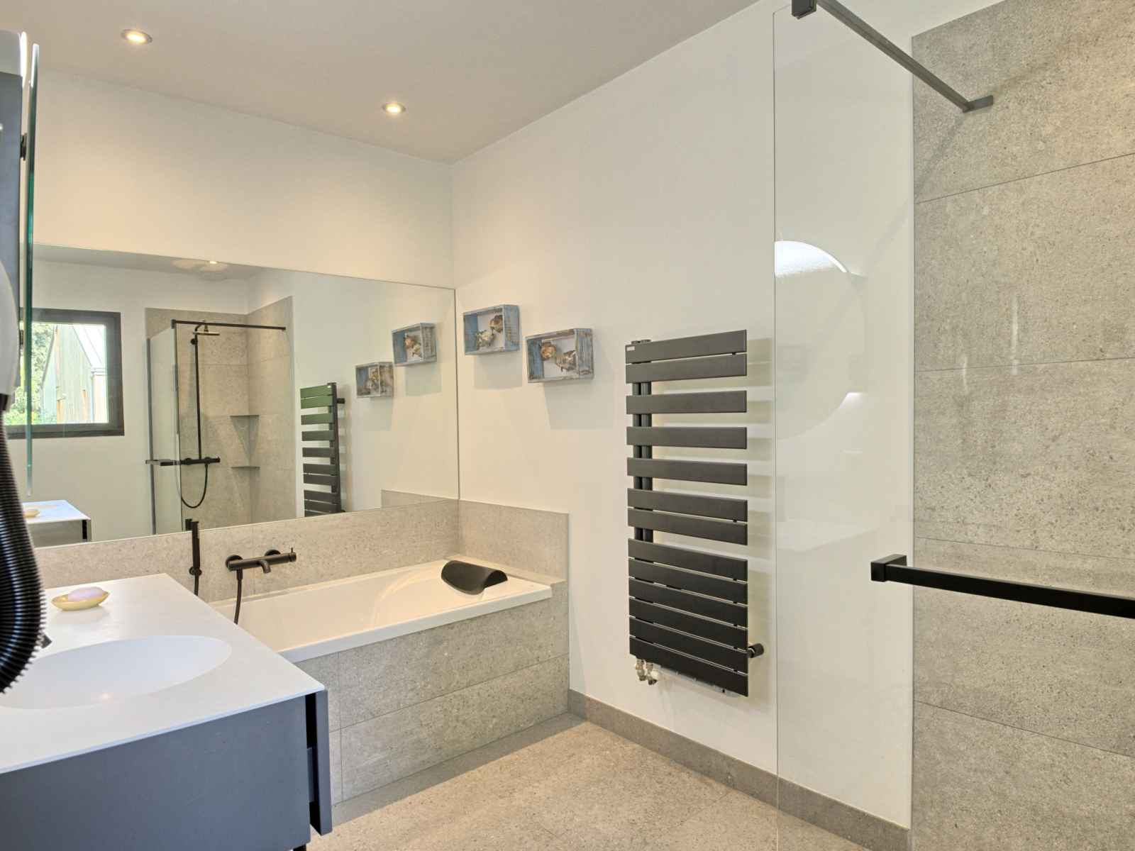 Belle maison individuelle "villa la rose des sables", année de construction 1960, rénovée en 2023. À 4 km du centre de pornichet, dans un quartier résidentiel, à 200 m de la mer, à 200 m de la plage. a usage privé: jardin (clôturé) avec pelouse 400 m2 arbres. infrastructures de la maison: ascenseur. débarras disponible. place de parking