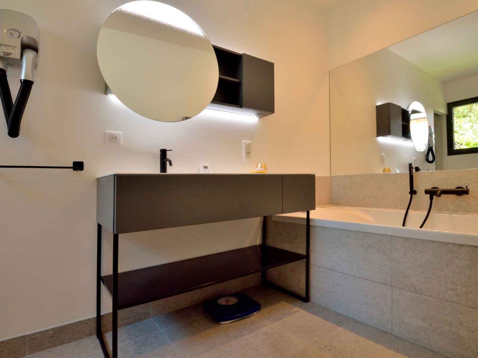 Villa 3 pièces 95 m2 sur 2 niveaux, situation sud. aménagement très agréable et moderne: séjour/salle à manger avec cheminée (uniquement à titre de décoration), tv (écran plat). sortie sur la terrasse. 1 chambre avec 1 grand-lit (160 cm, longueur 200 cm), bain/douche. cuisine ouverte (3 plaques de cuisson, four, lave-vaisselle,