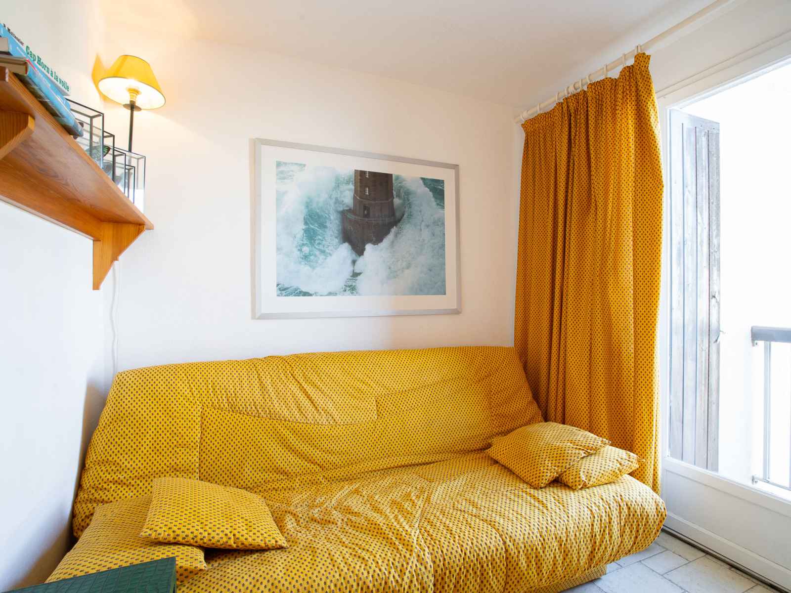 Maison mitoyenne 3 pièces 47 m2 sur 2 niveaux, situation sud. aménagement confortable et plaisant: séjour/salle à manger avec tv (écran plat). sortie sur la terrasse. coin cuisine (four, lave-vaisselle, 3 plaques vitrocéramiques, congélateur, cafetière électrique). À l'étage supérieur: 1 chambre avec 1 grand-lit (140 cm, longueur 190