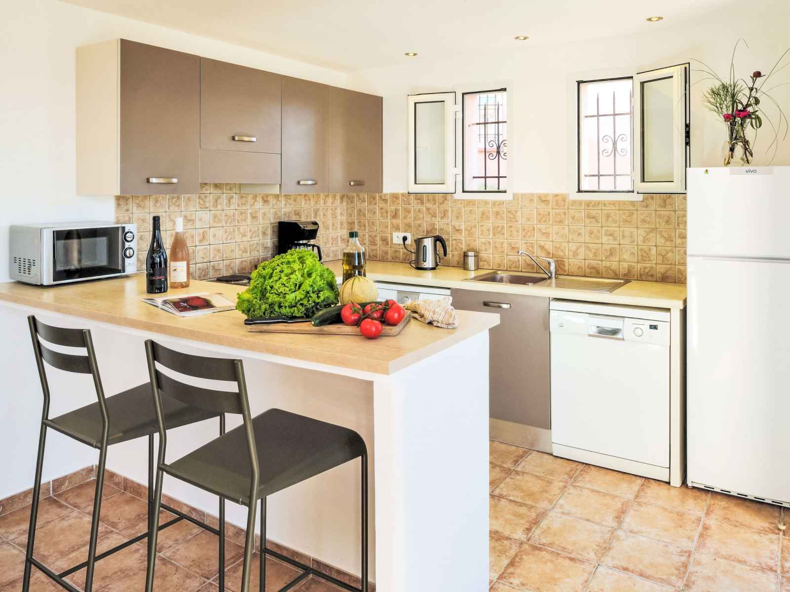 "anna maria", villa 3 pièces 80 m2 sur 2 niveaux. aménagement confortable et plaisant: séjour/salle à manger avec table pour les repas et tv (écran plat). sortie sur la terrasse. 1 chambre avec 1 grand-lit (160 cm, longueur 200 cm). cuisine ouverte (4 plaques de cuisson, four, lave-vaisselle, grille-pain, bouilloire électrique, micro-ondes,