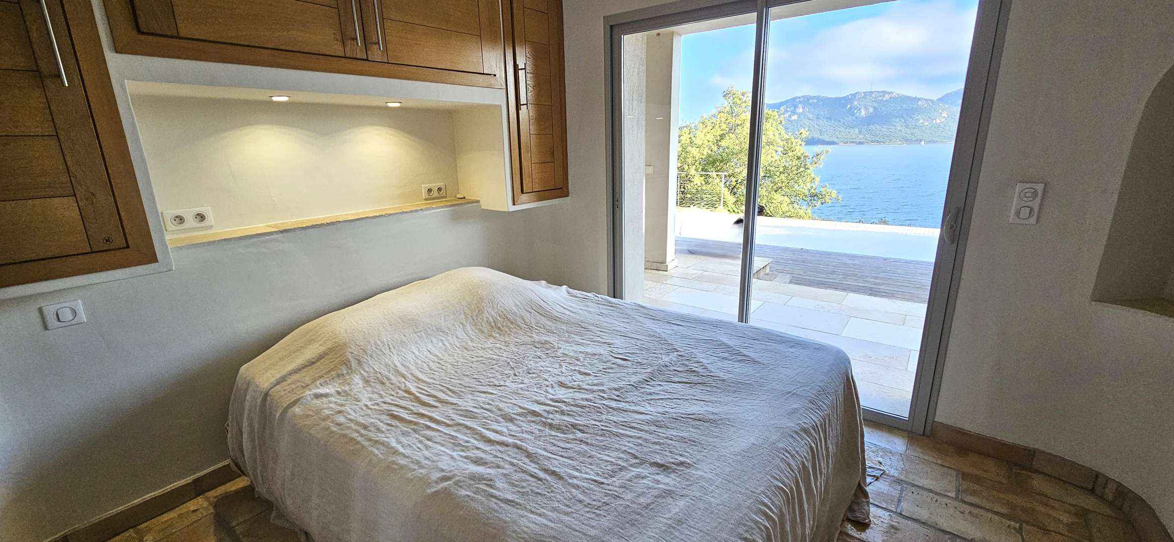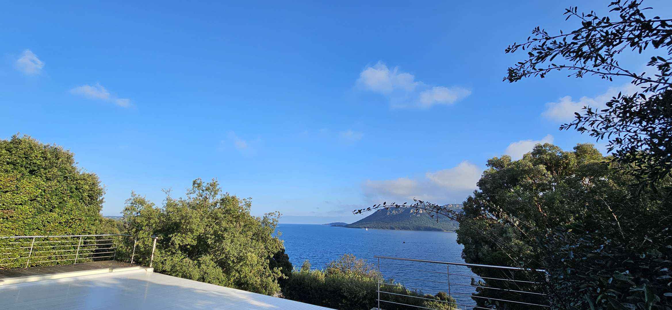 - Séjour/ cuisine (Séjour traversant avec cuisine américaine équipée, lave-vaisselle, cafetière illy, plaque de cuisson vitrocéramique, four électrique, combiné frigo-congélateur, cafetière illy, grille pain, bouilloire... le tout ouvrant sur une terrasse couverte côté nord avec un barbecue fixe et salle à manger, et une terrasse côté sud avec magnifique vue sur le golfe et port de porto-vecchio. un joli salon avec banquette maçonnée et tv.