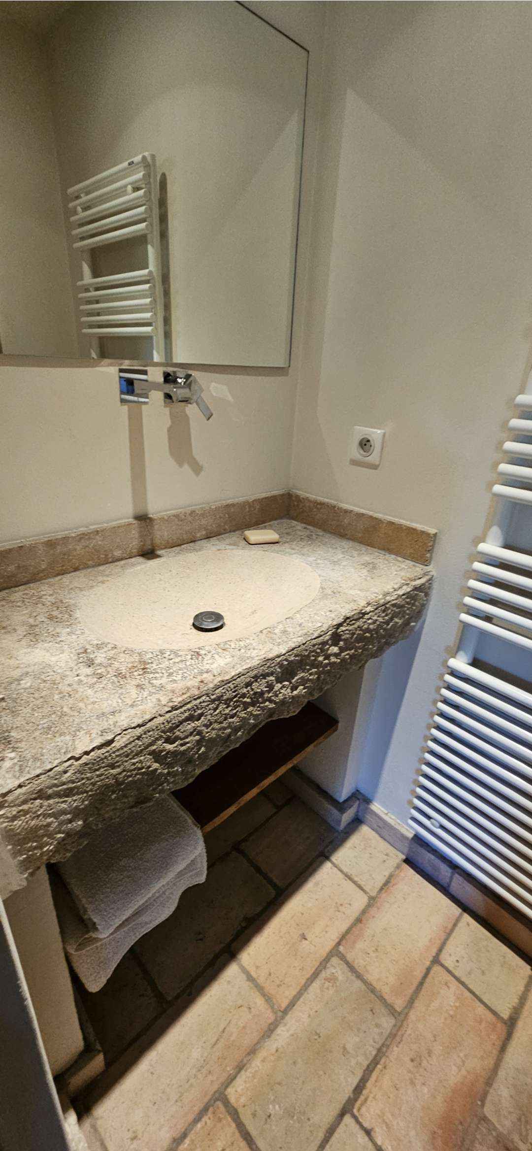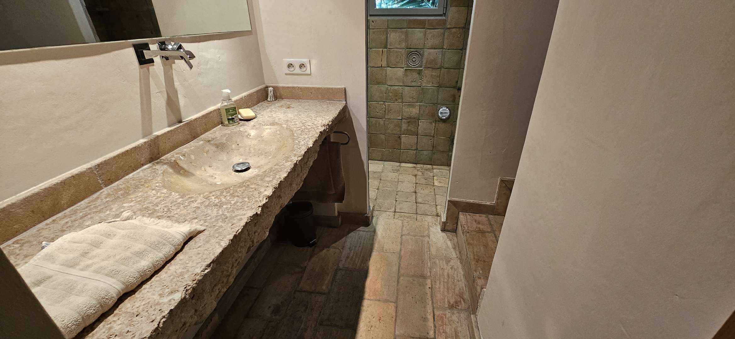 Chambre 5 : 2 lits en 90 pouvant se rapprocher, salle d'eau avec douche, vasque.