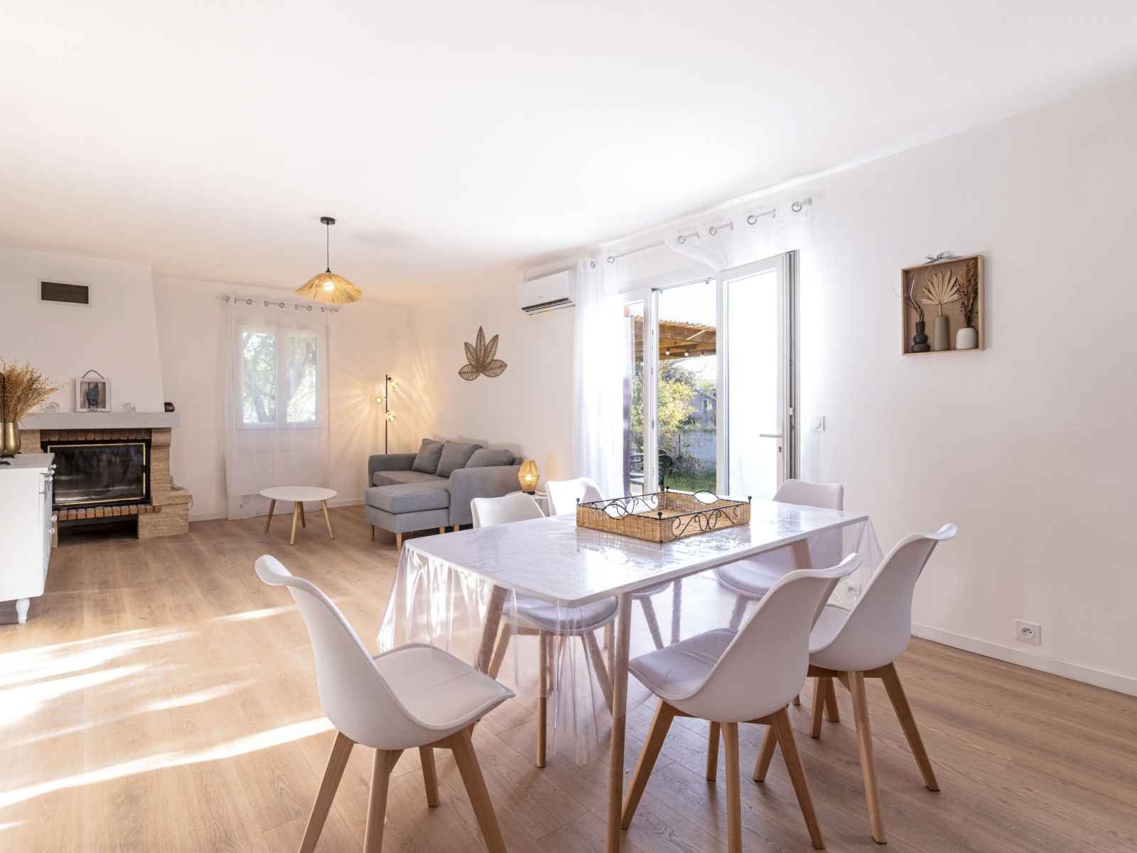 "turriccioli", maison 4 pièces 80 m2 sur 2 niveaux. rénovée en 2023: séjour/salle à manger avec tv (écran plat). sortie sur la terrasse. cuisine ouverte (four, lave-vaisselle, 1 plaques à induction, 3 feux, micro-ondes, cafetière électrique). bain/wc. chauffage électrique, air-conditionné. À l'étage inférieur: 2 chambres, chaque