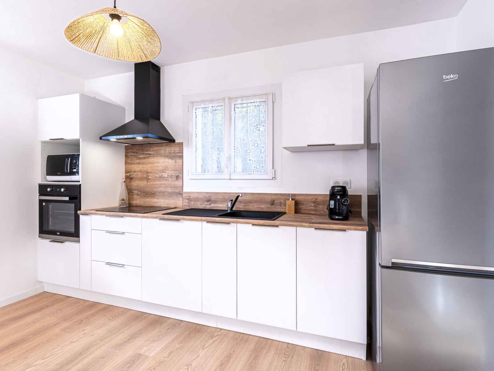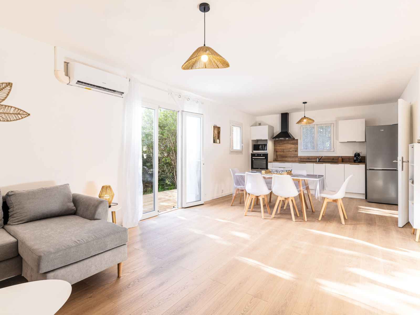 Maison individuelle, rénovée en 2023. dans la localité, à 2.4 km du centre de porto-vecchio, dans un quartier résidentiel, excellente situation: centrale mais tranquille, à 2.3 km de la mer, à 2.3 km de la plage, dans une impasse. a usage privé: terrain 500 m2 (clôturé), jardin naturel (clôturé), place de parking (pour 2 voitures).