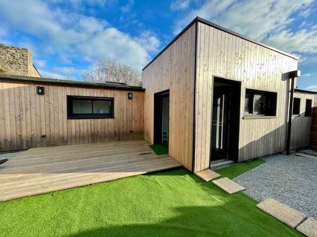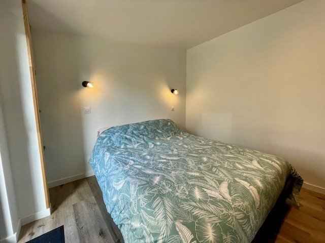 - Une chambre avec un lit en 160cm et rangements avec accès sur le jardin,