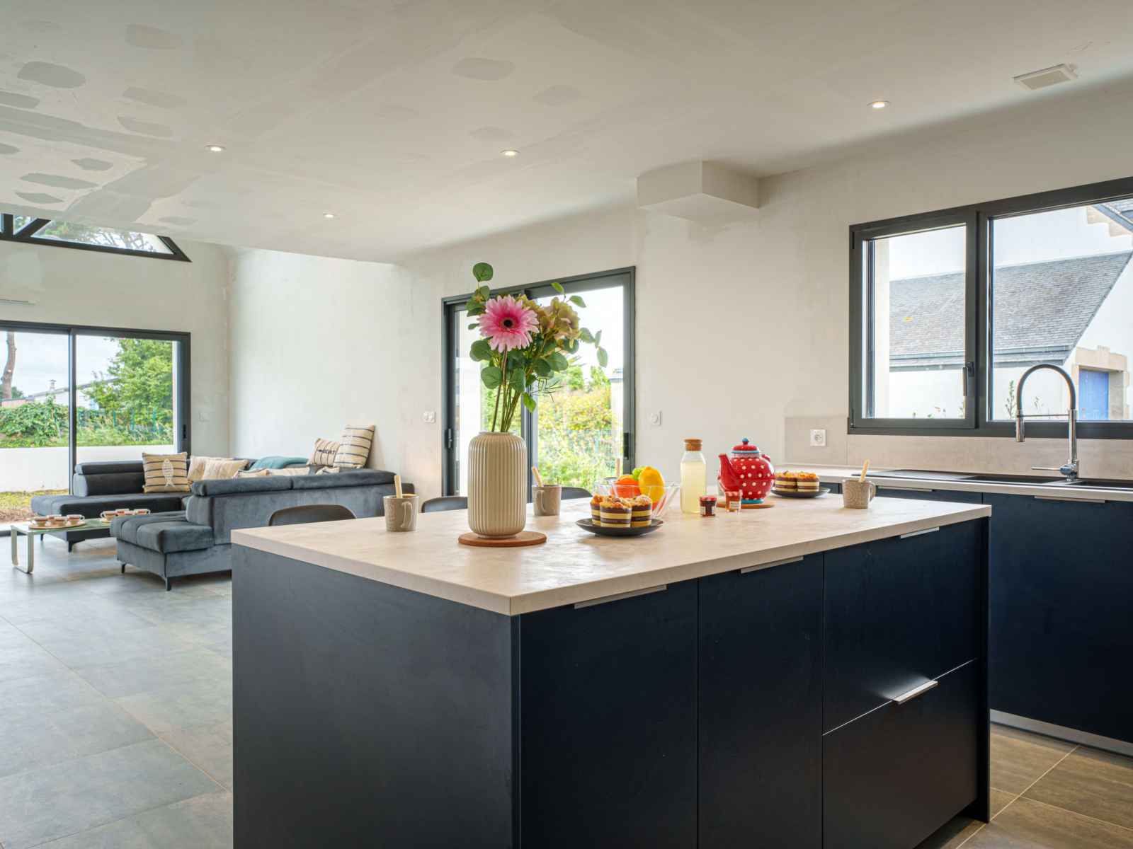 St pierre quiberon à 4 km de quiberon: belle maison individuelle "les voiles", année de construction 2023. dans la localité, à 1 km du centre de saint pierre de quiberon, à 600 m de la mer, à 600 m de la plage. a usage privé: jardin entretenu 300 m2 (pas clôturé) pelouse, place de parking sur le terrain. magasins 2 km, supermarché 3 km,