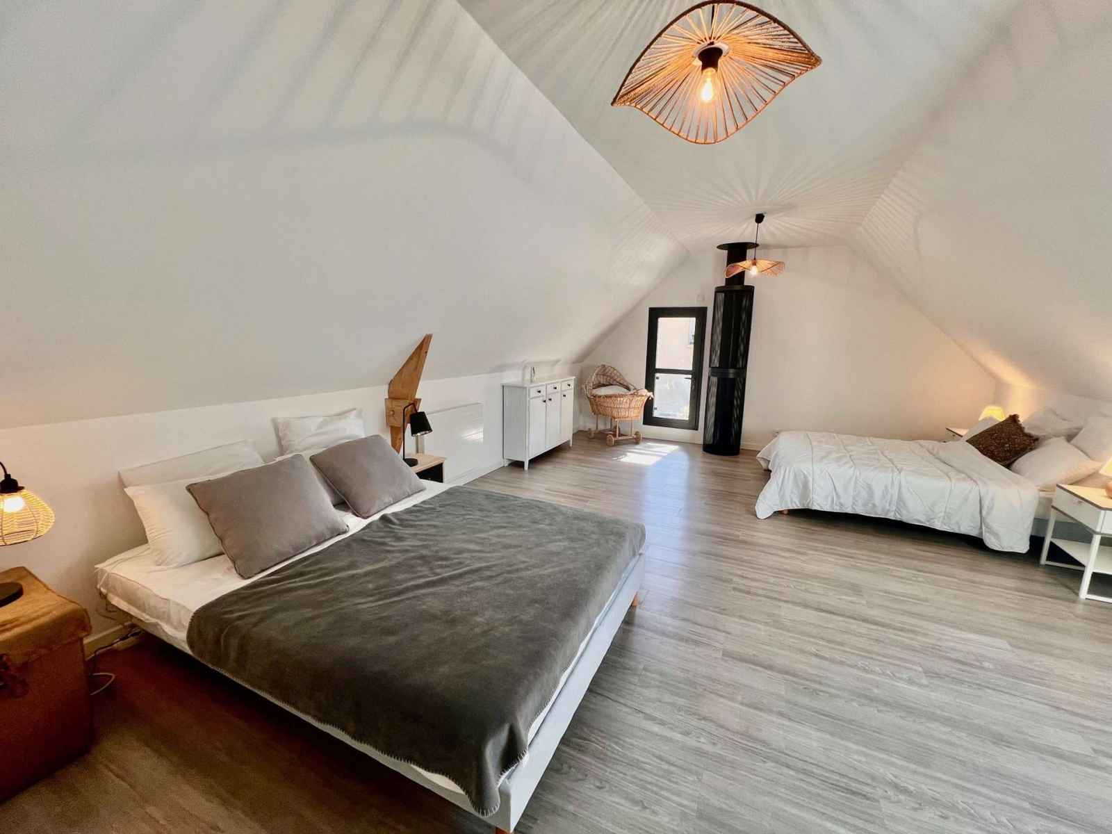 - une grande chambre avec un lit de 140 cm et un 2ème lit de 140cm.