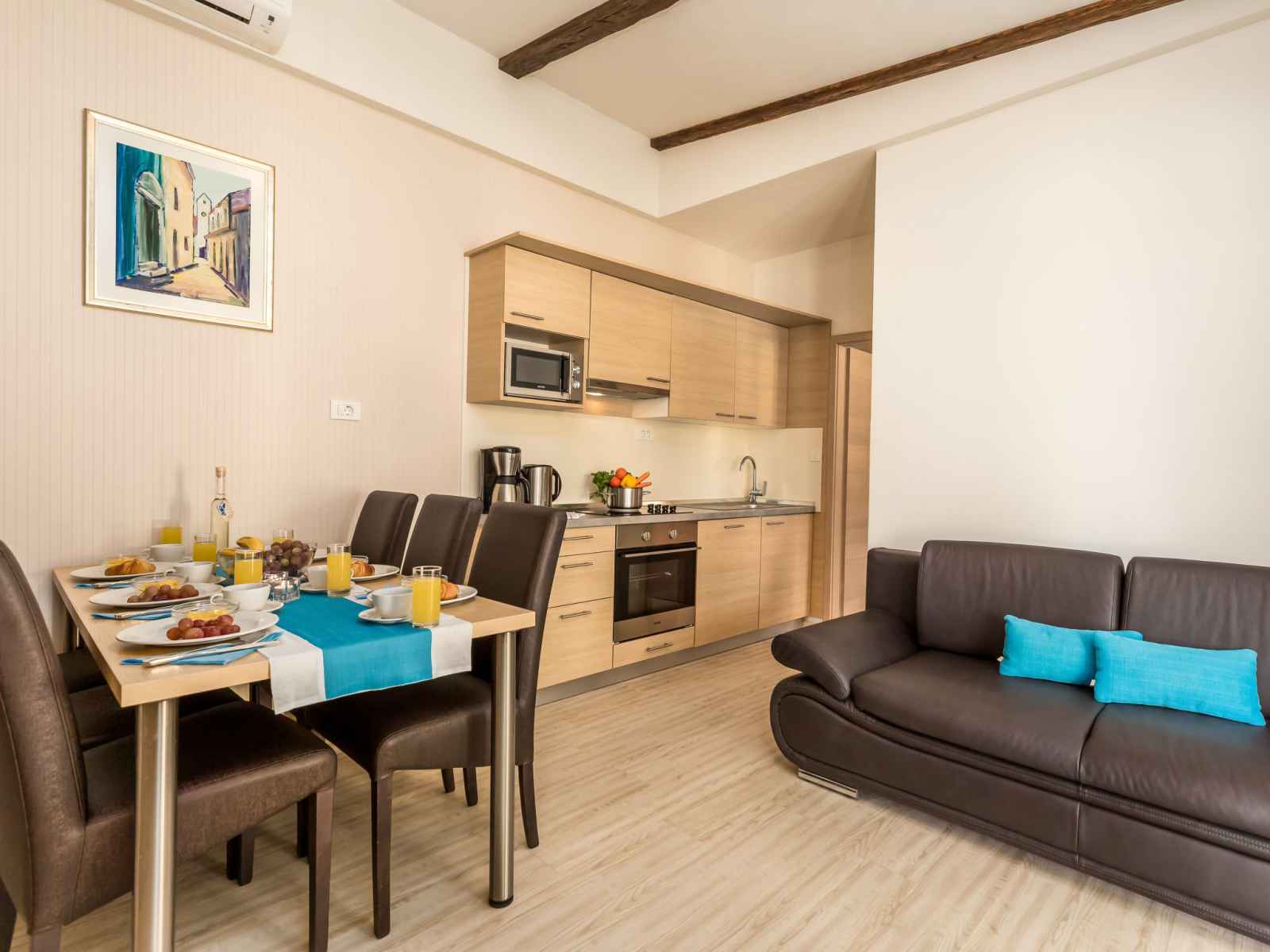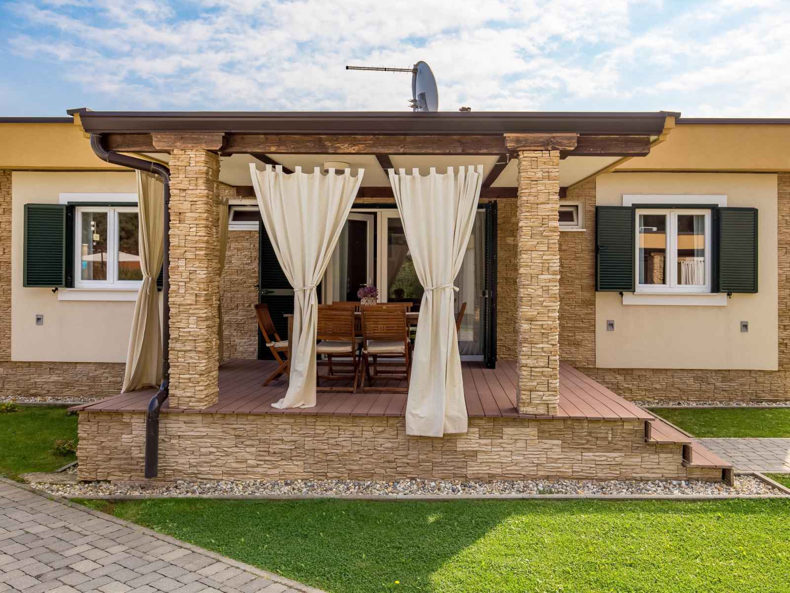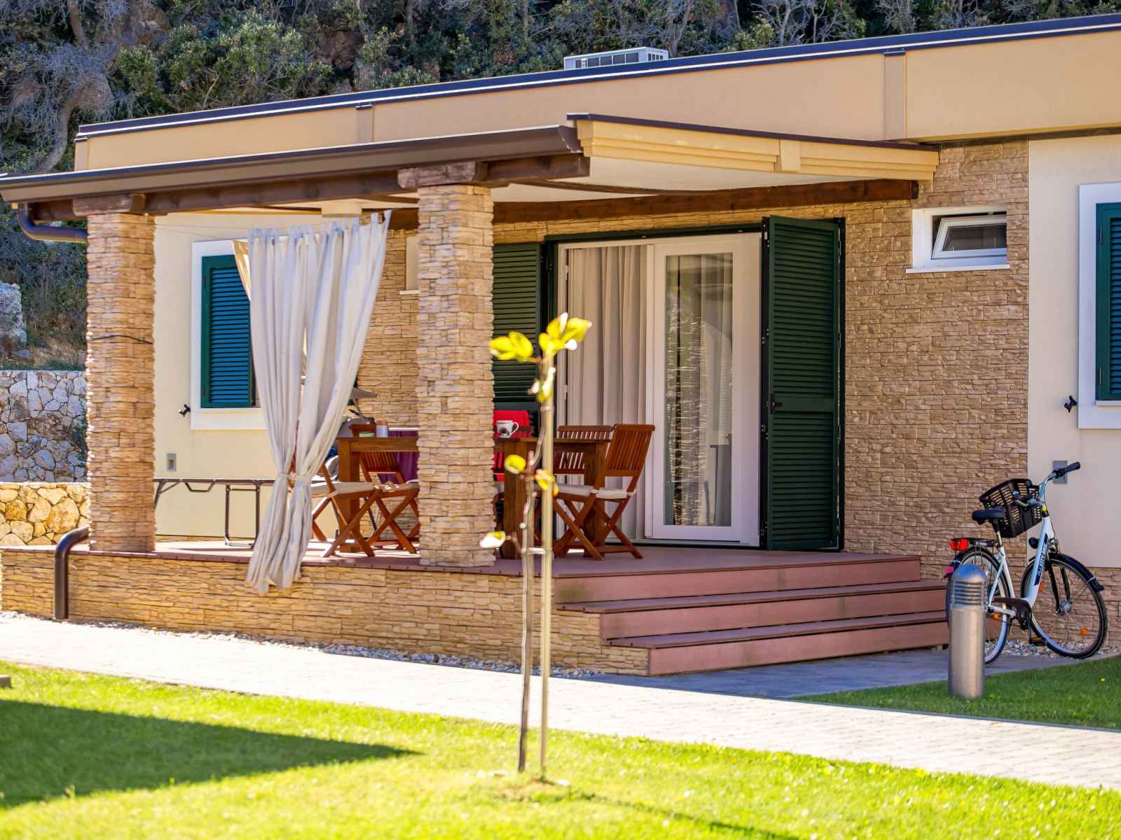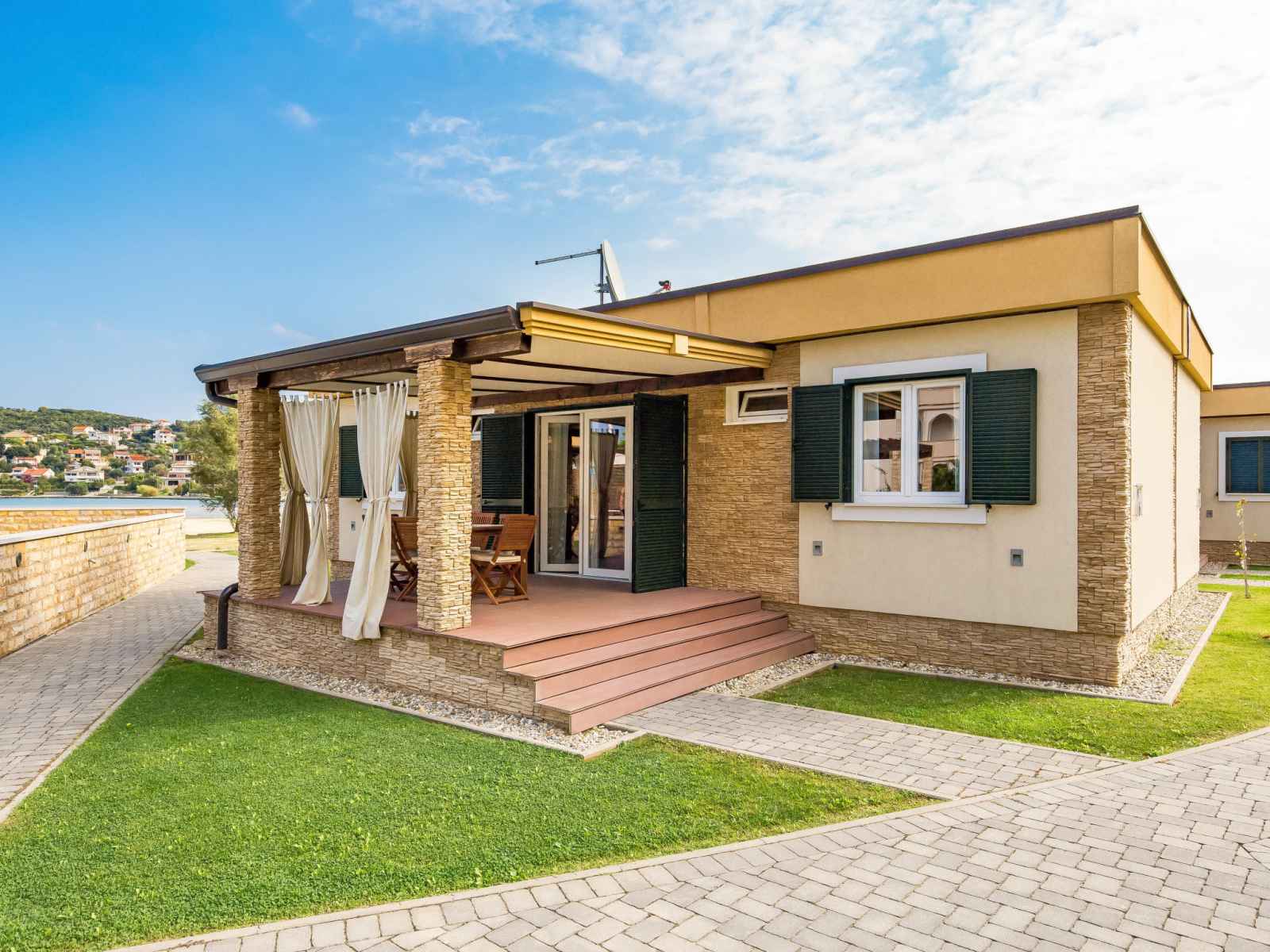 "superior", maison 3 pièces 50 m2. aménagement agréable: séjour/salle à manger avec 1 divan-lit double (160 cm, longueur 190 cm), tv (satellite) (écran plat), air-conditionné. sortie sur la terrasse. 2 chambres, chaque chambre avec: 1 lit double (2 x 80 cm, longueur 200 cm). cuisine ouverte (four, lave-vaisselle, 4 plaques vitrocéramiques,