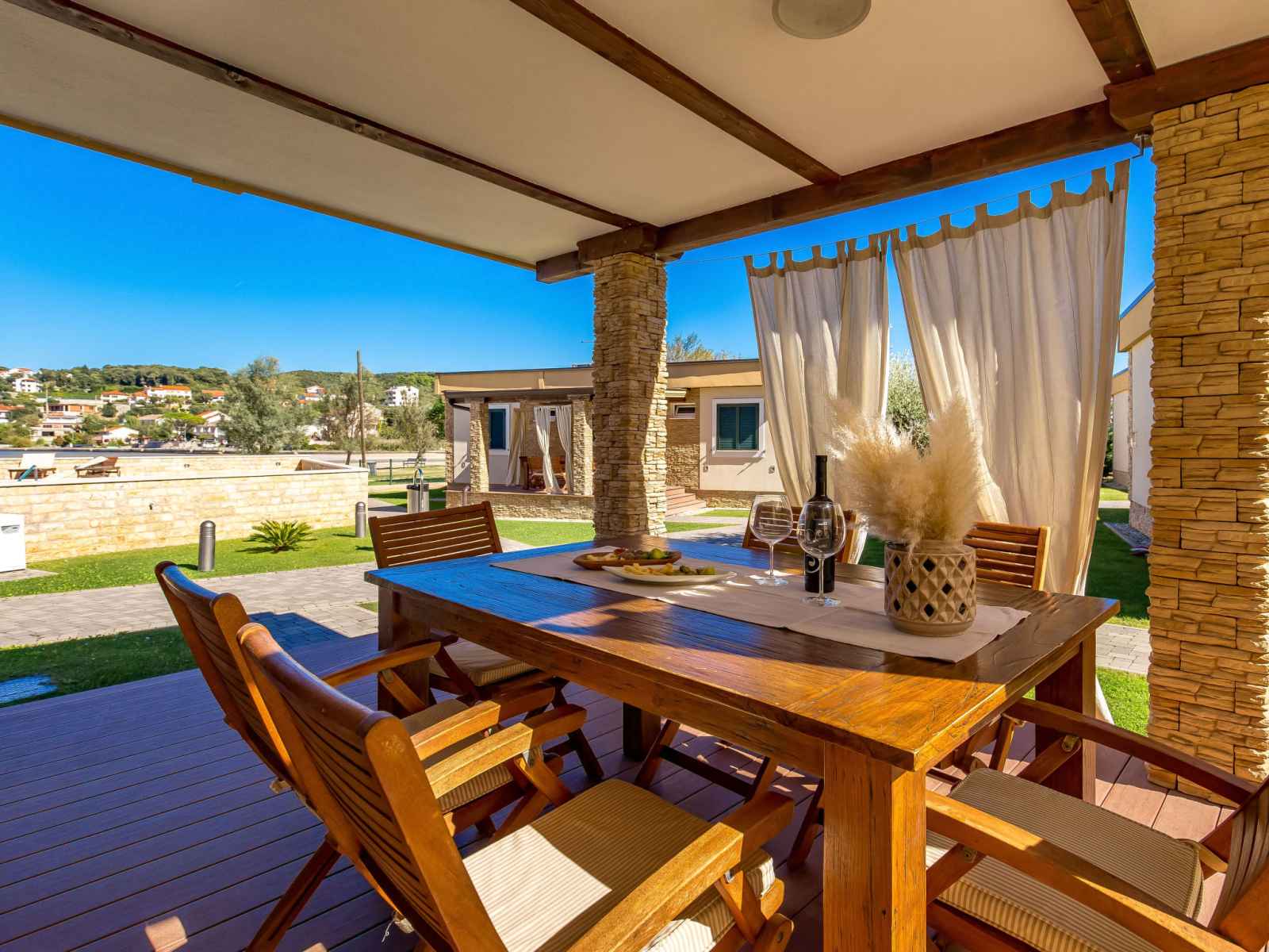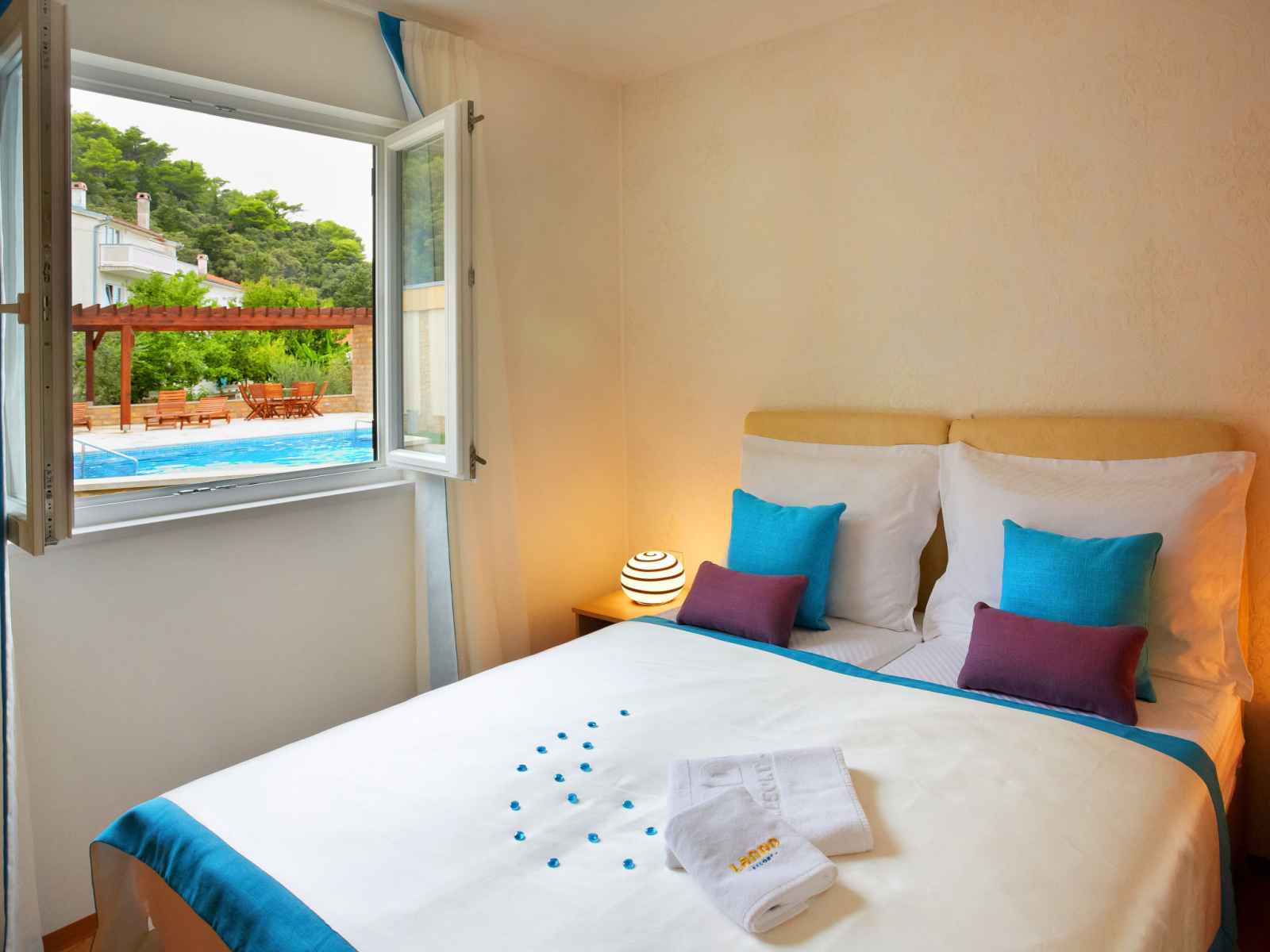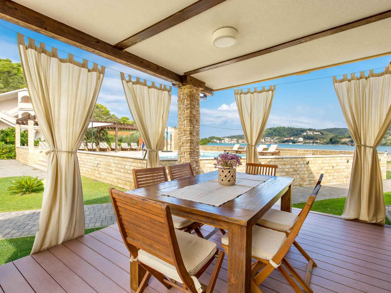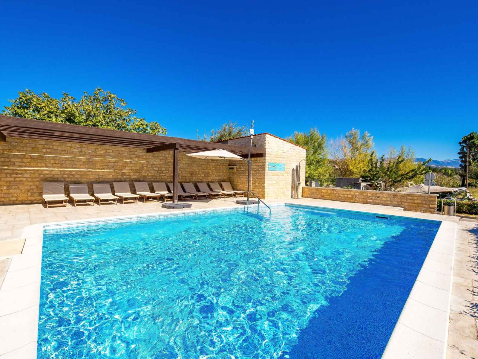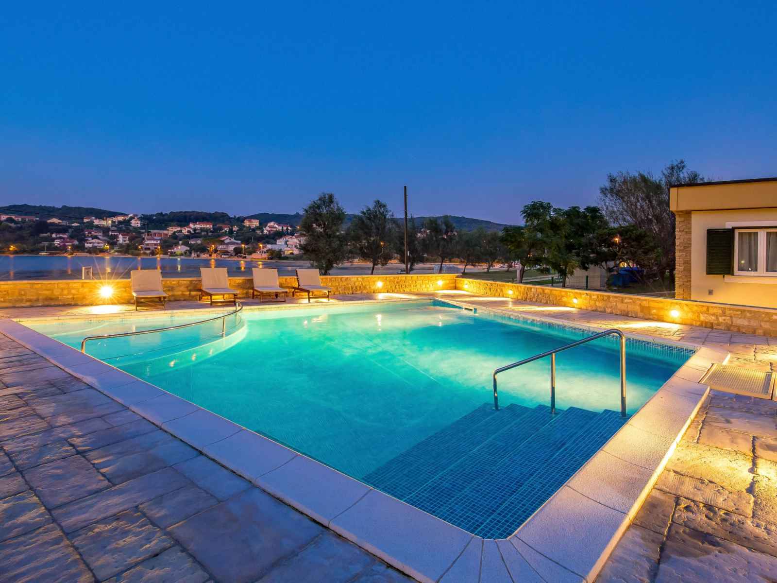 Kampor à 7 km de rab: beau, petit village de vacances "camping lando". 11 maisons dans le même complexe de vacances. situation tranquille, ensoleillée, juste au bord de la mer, juste au bord de la plage. en commun: 2 piscines rectangulaire chauffée (10 x 8 m, 80 m2, profondeur 120 - 160 cm, disponibilité saisonnière: 13.mai. - 30.sep.) avec