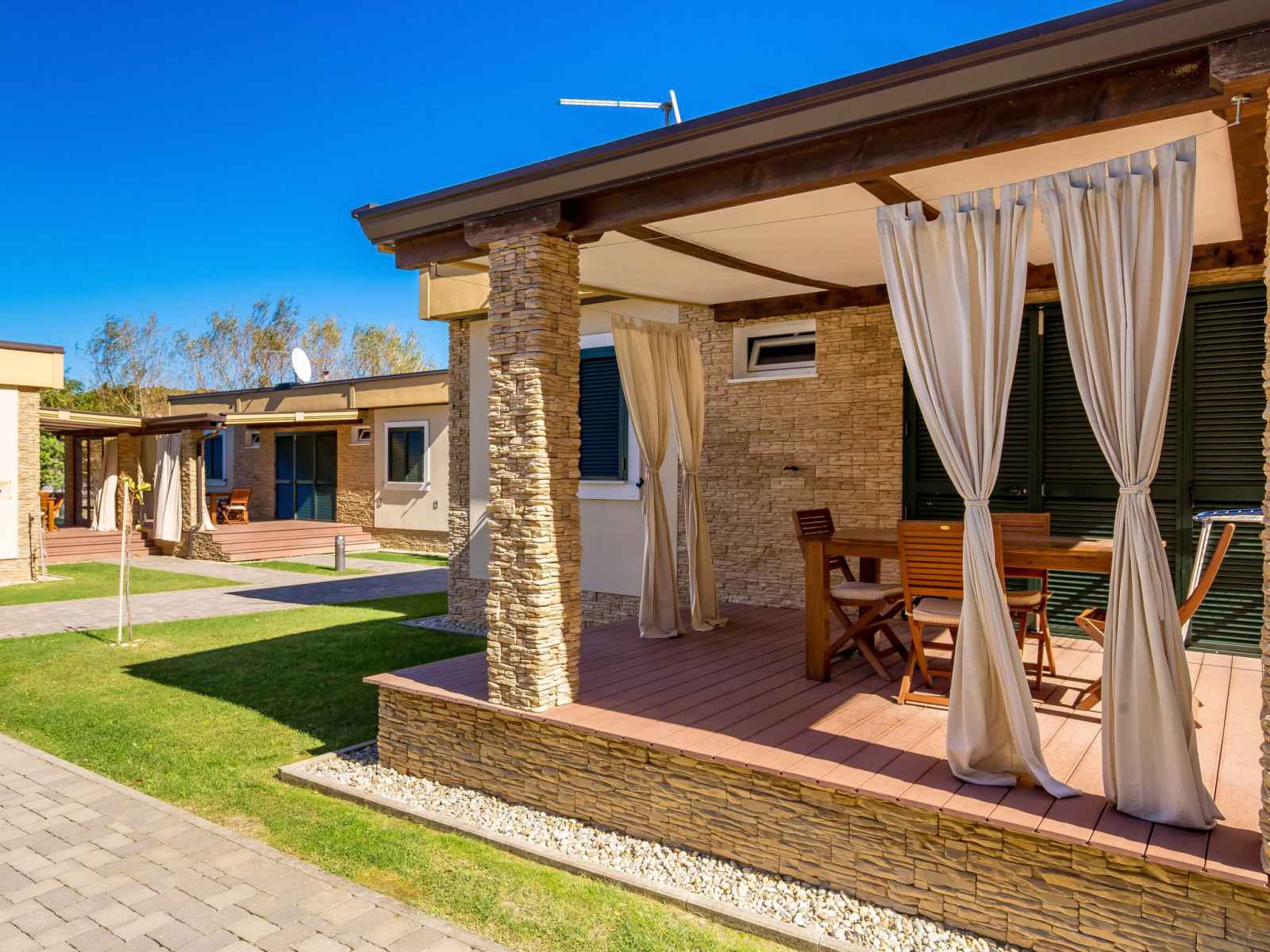 marches intérieures. douche extérieure. infrastructures de la résidence: réception, accès internet. place de parking sur le terrain. magasins 500 m, restaurant, bar, café 50 m, arrêt de bus 2.4 km, plage de sable "lando". veuillez noter: la photo ne montre qu’un exemple de location de vacances. les maisons sont situées 30 - 50 m de la mer et la plage de sable, 10 - 30 m de la piscine.