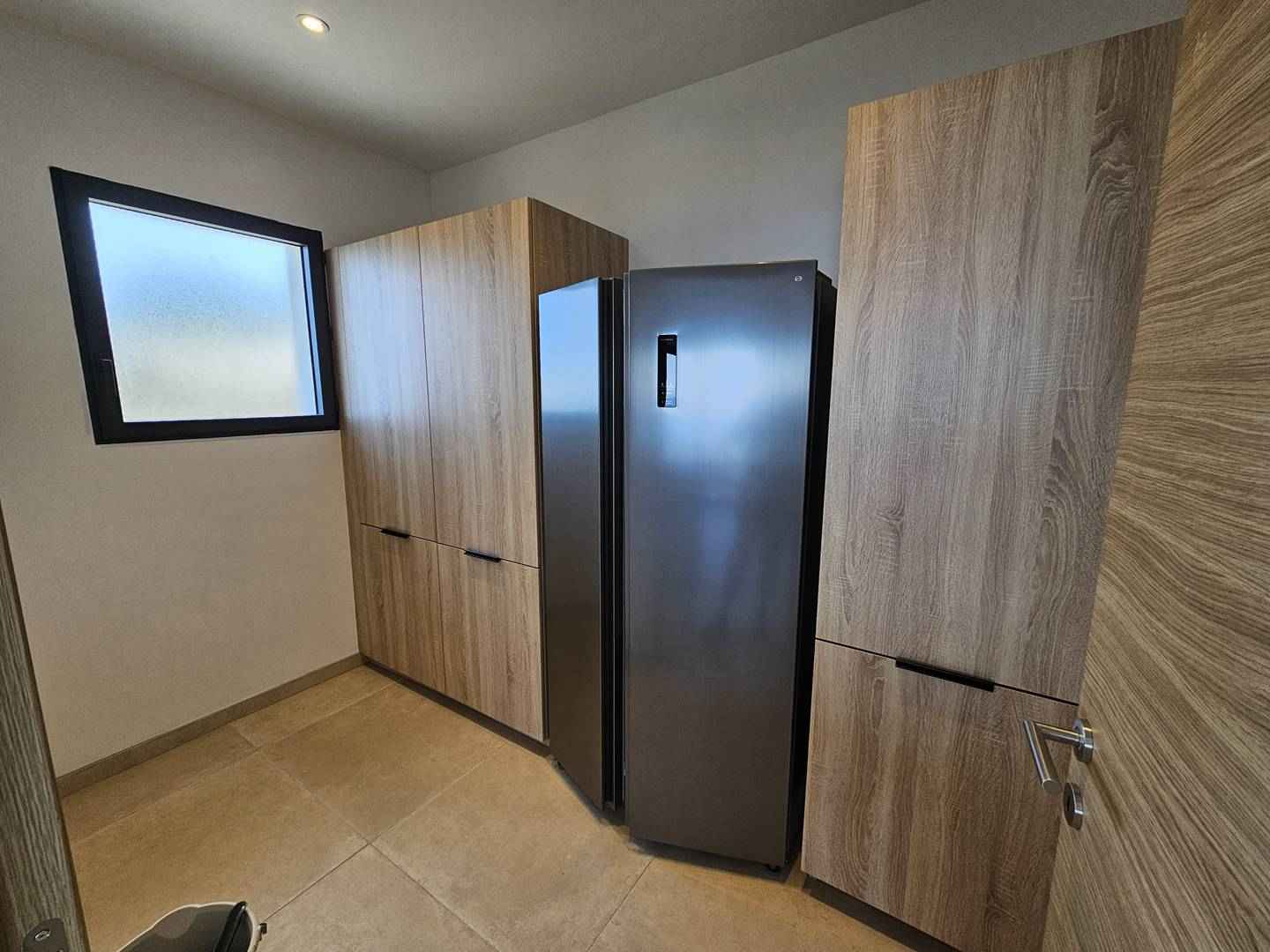 Cellier attenant avec frigo américain, rangements (matériel de nettoyage : aspirateur...)