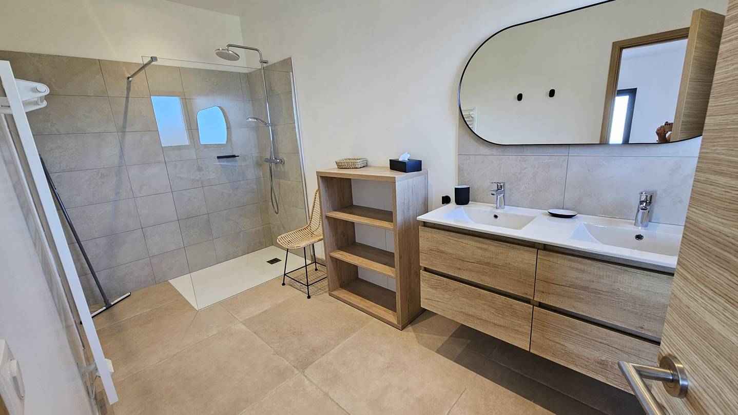 - Chambre 5 : vue mer : master room : lit en 180/200, rangements, salle d'eau attenante avec douche à l'italienne, vasque, sèche-serviettes. Wc séparé.