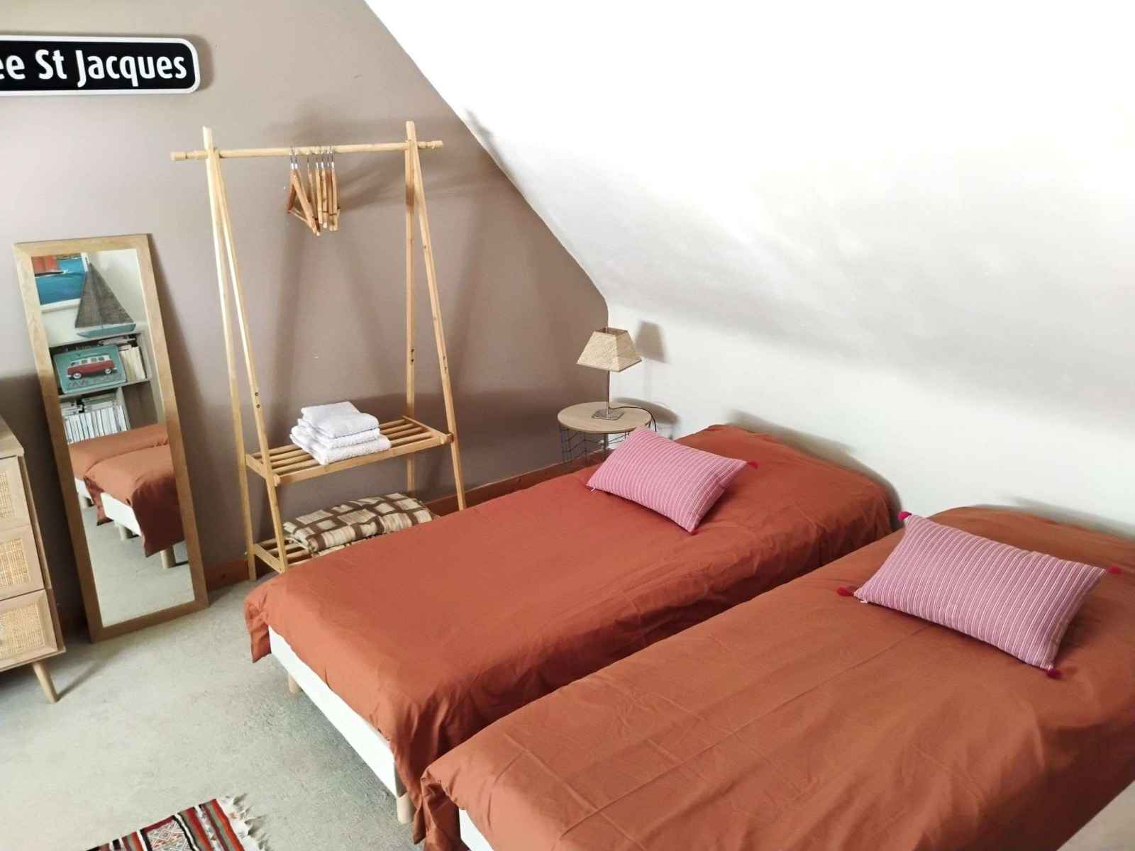 - Chambre 4 : 2 lits simple en 80 + 1 lit d'enfant, penderie