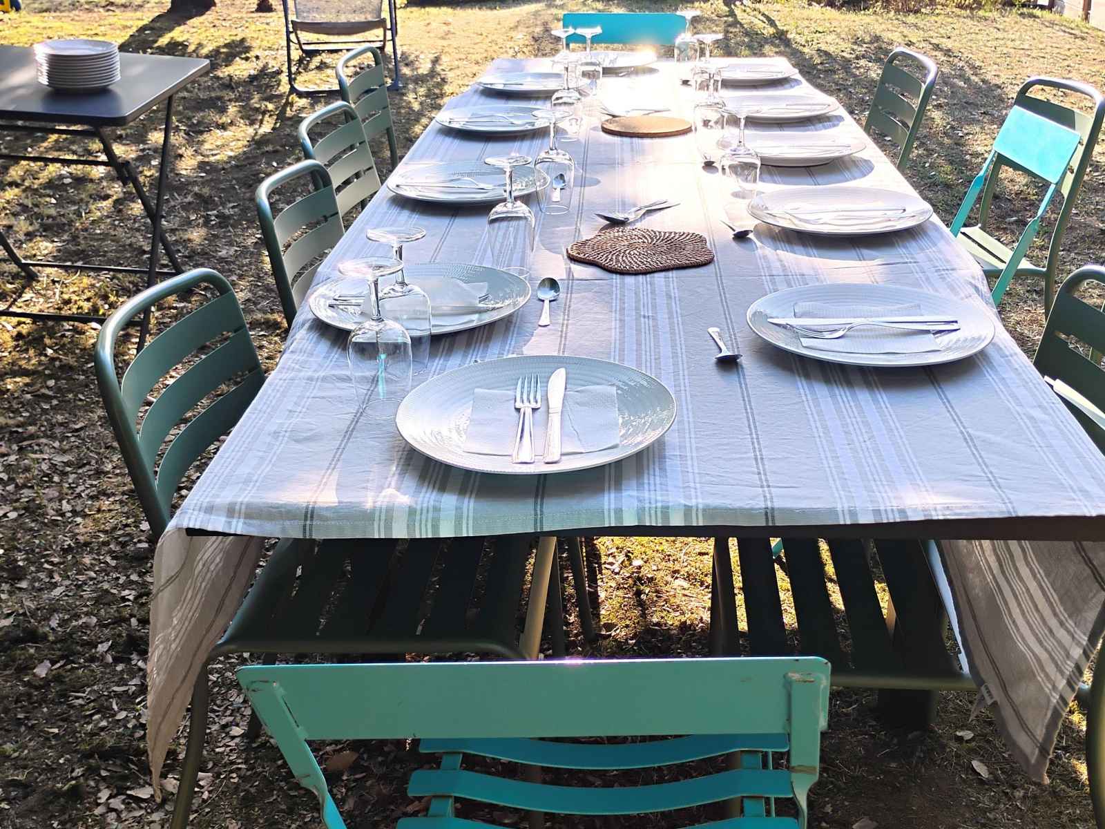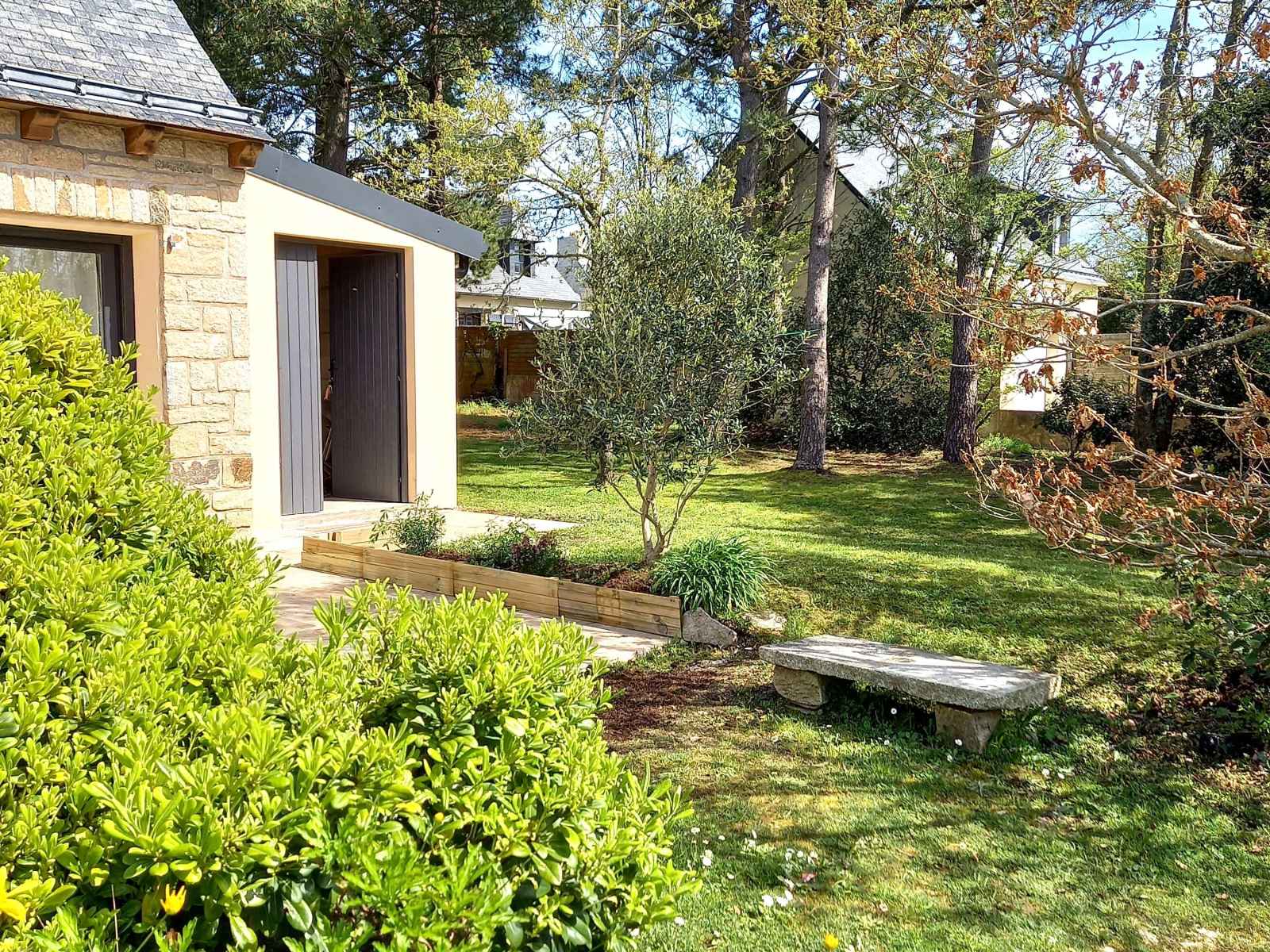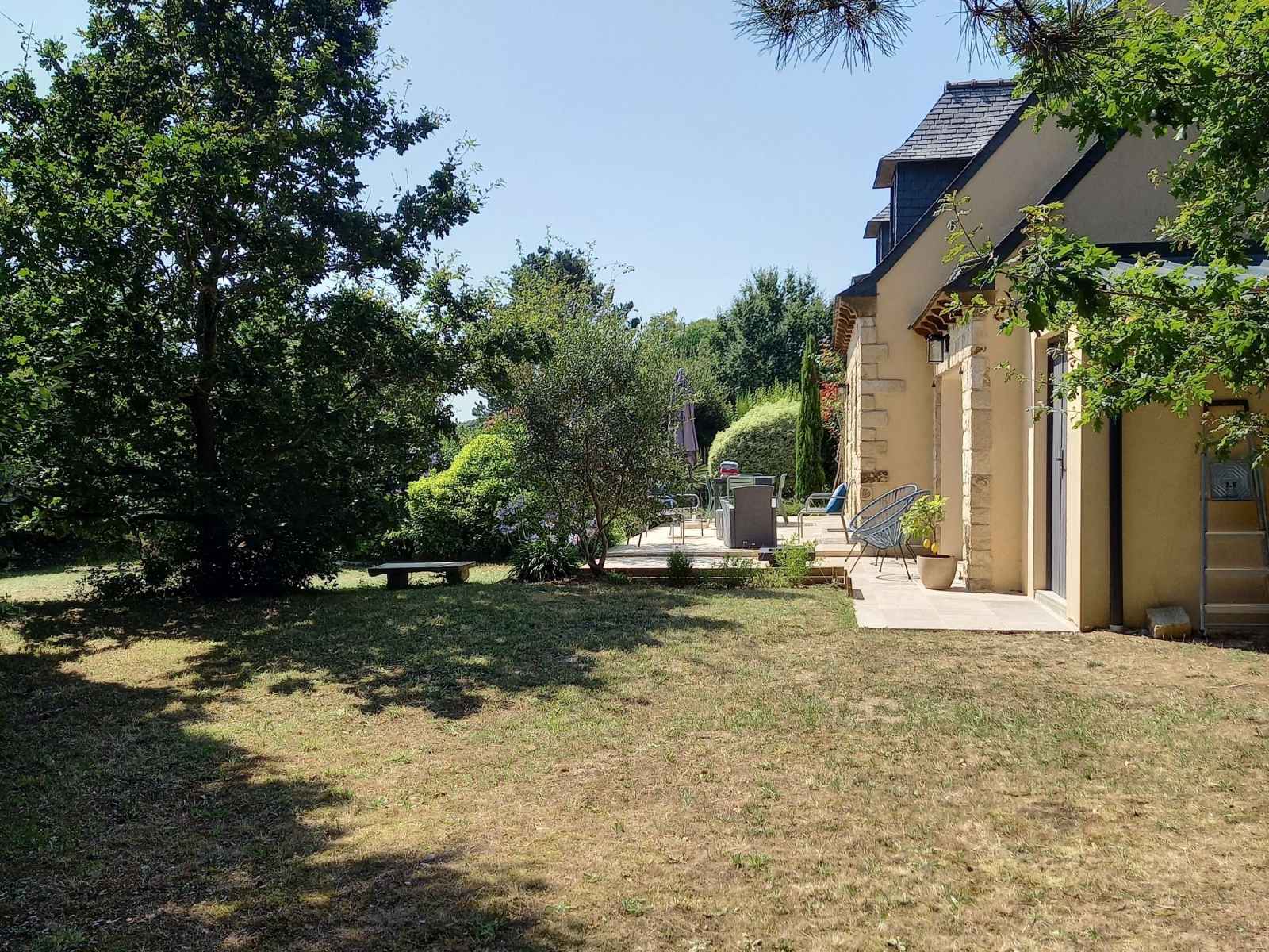 - Jardin non clos avec terrasse équipée d'un salon de jardin, de transats et barbecue.