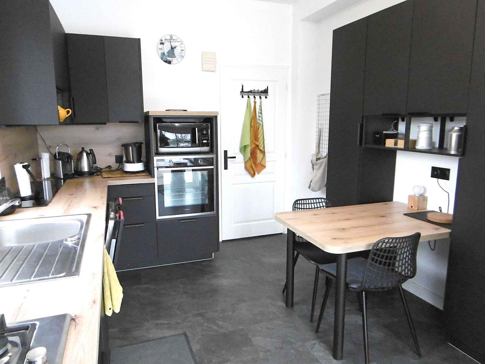 Équipement : réfrigérateur avec partie congélateur, four, micro-ondes, table de cuisson gaz, lave-vaisselle, lave-linge, sèche-linge, cafetière, grille-pain, bouilloire, TV, wifi.