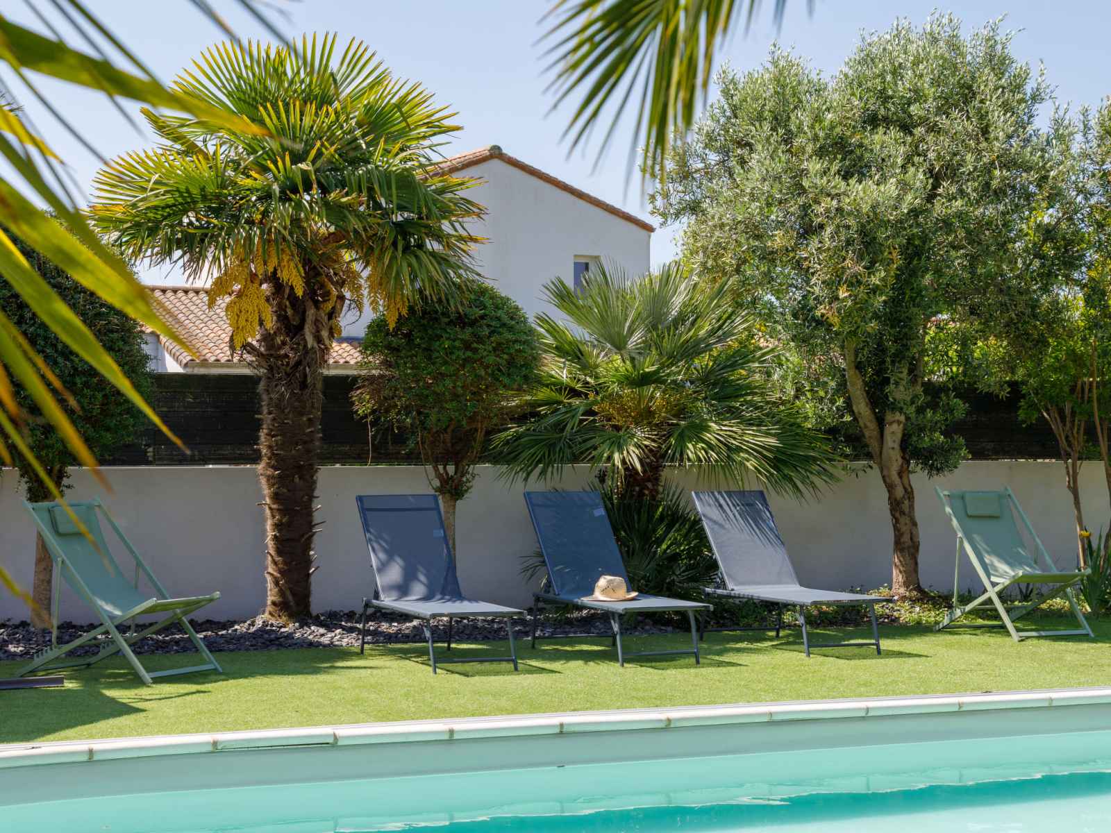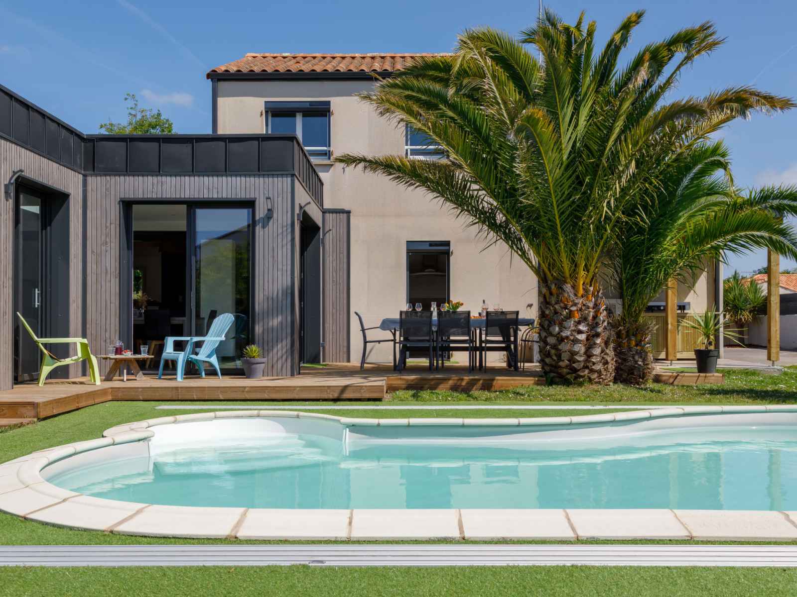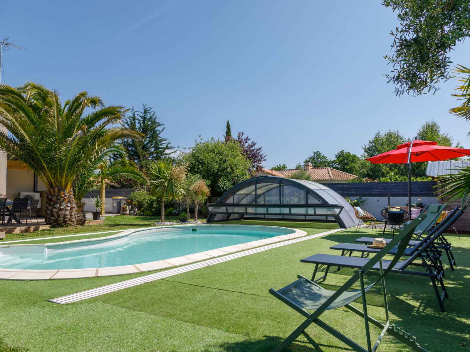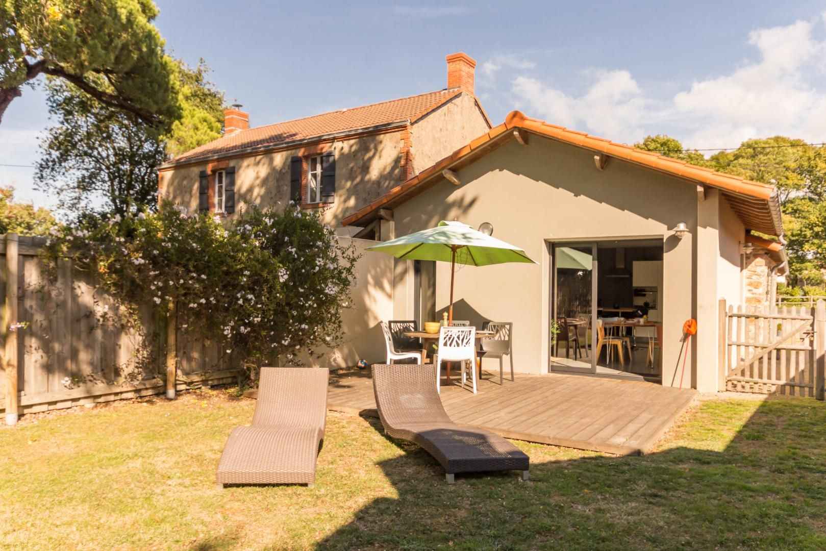 Belle, grande maison individuelle "villa sunset", de 2 étages. dans le quartier de la prinais, situation tranquille dans un quartier résidentiel, à 2 km de la mer, à 3.5 km de la plage, dans une impasse, orientée sud. a usage privé: terrain 700 m2 (clôturé), jardin entretenu avec pelouse, piscine, piscine couverte (8 x 4 m, profondeur 120