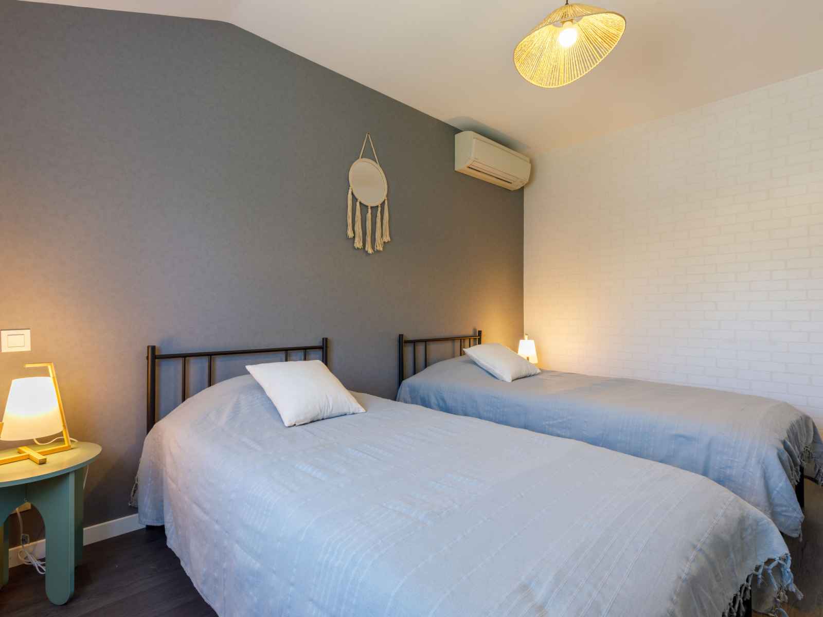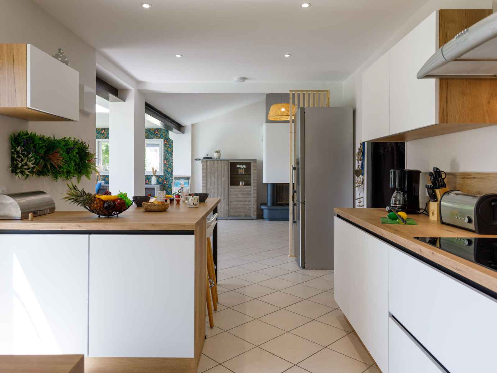 avec 2 lits (80 cm, longueur 190 cm). Cuisine ouverte (four, lave-vaisselle, 3 plaques à induction, grille-pain, bouilloire électrique, micro-ondes, congélateur, cafetière électrique, Capsules pour machine à café (Senseo) (NON INCLUSES)) avec bar. Douche, WC séparé. À l'étage supérieur: 1 chambre avec 1 grand-lit (1 x 140 cm, longueur 190 cm). 1 grande chambre avec 2 lits (80 cm, longueur 190 cm). Douche/WC. Chauffage par le sol. A disposition: lave-linge, sèche-linge, fer à repasser, sèche-cheveux. Internet (Connexion WIFI, gratuit). Veuillez noter: maison non-fumeur. Maximum 1 animal/ chien autorisé. Détecteur de fumée. Annonce d'un particulier (art 155, IV du CGI).