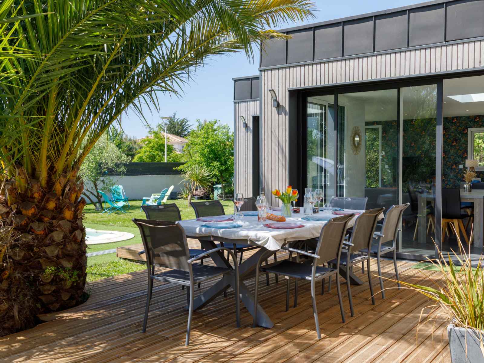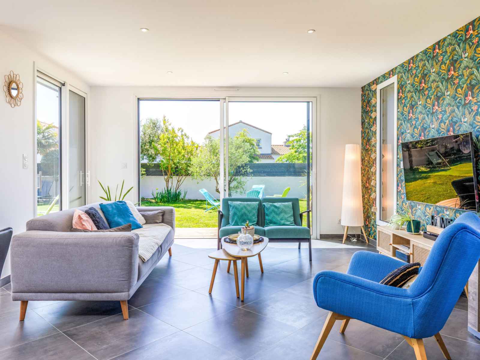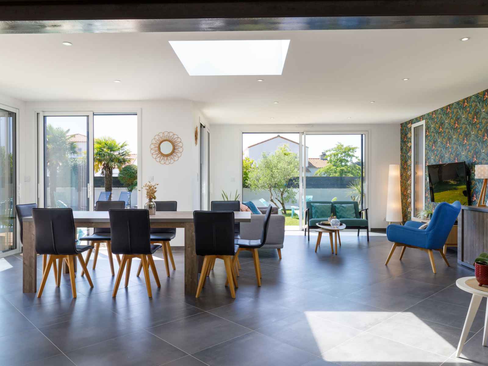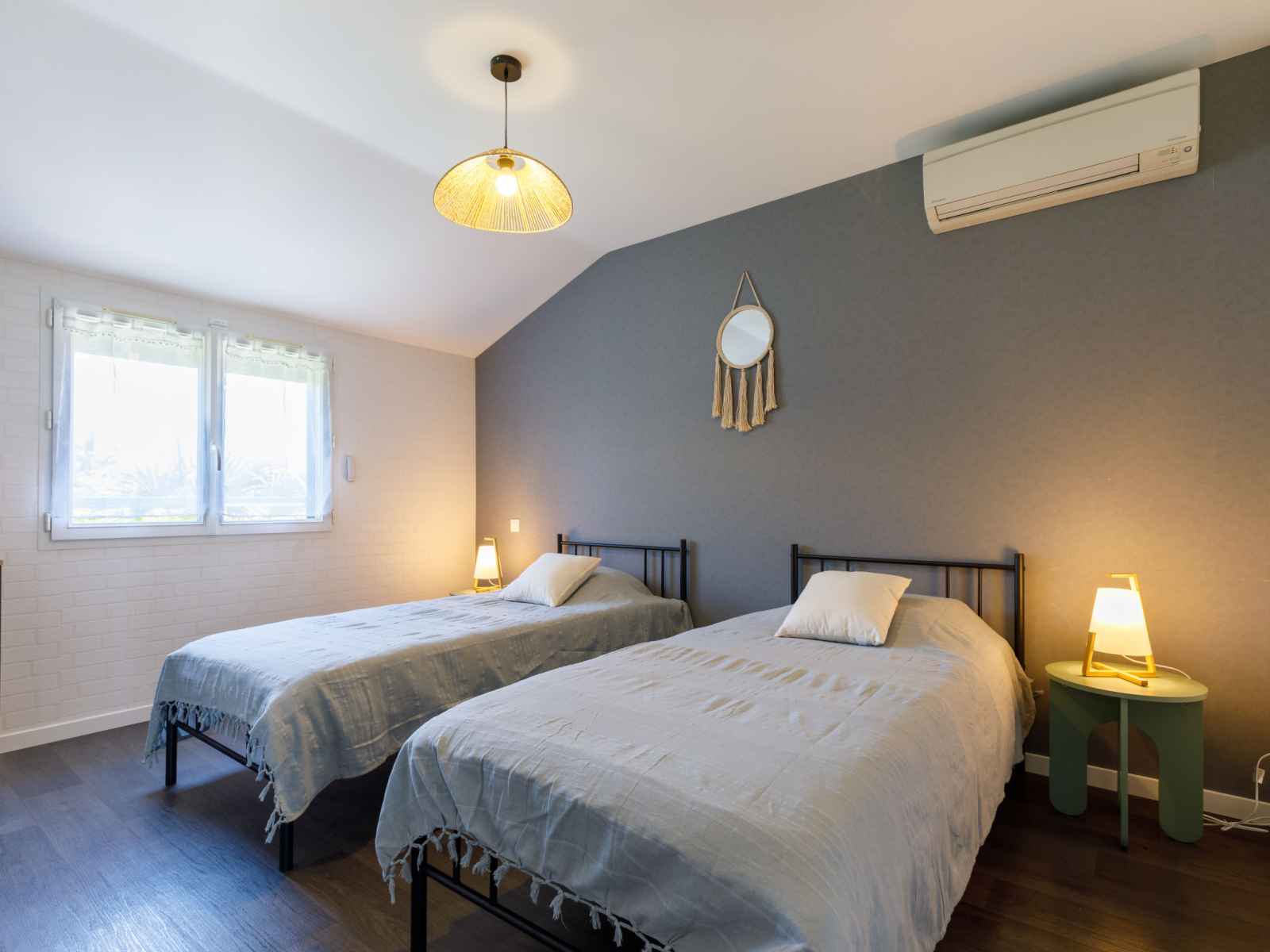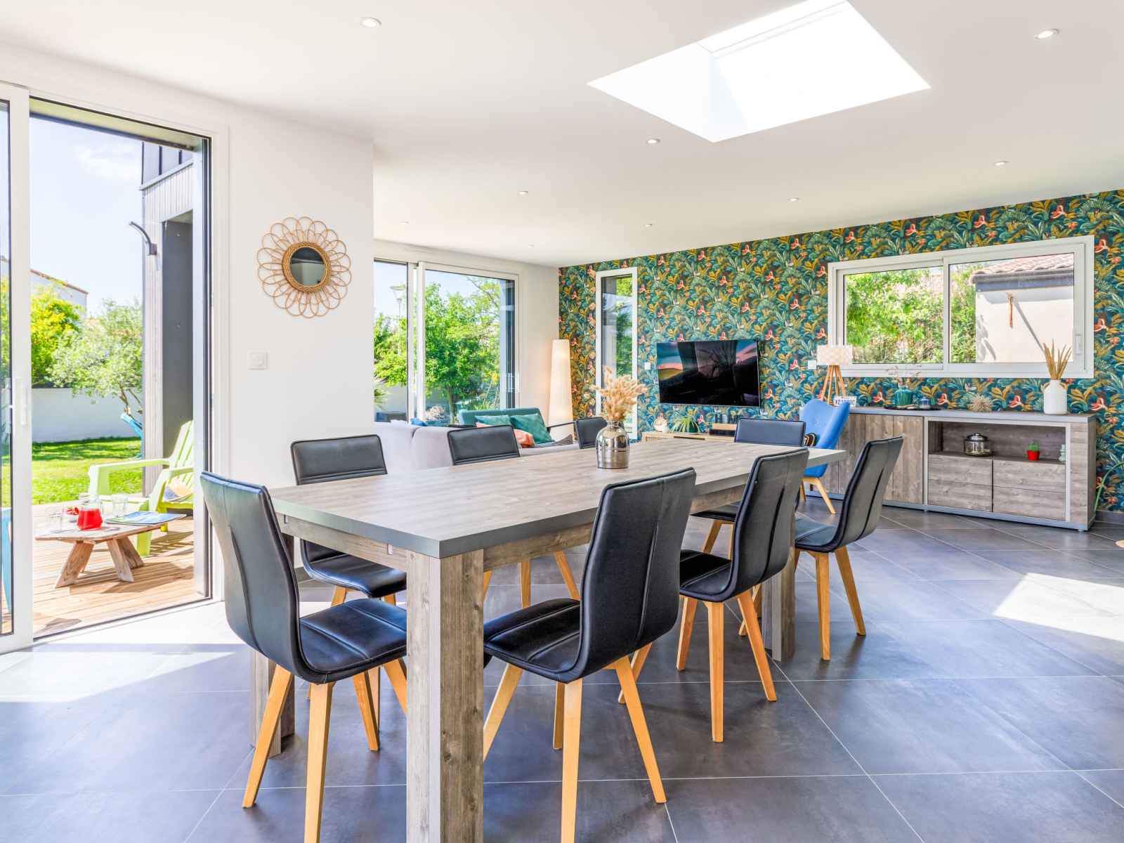 "villa sunset", maison 5 pièces 170 m2 sur 2 niveaux, situation sud. aménagement moderne et plaisant: grand séjour/salle à manger avec cheminée, table pour les repas et tv (écran plat), home cinéma. sortie sur le jardin, sur la terrasse, orientée sud. 1 chambre avec 1 grand-lit (1 x 140 cm, longueur 190 cm), tv (écran plat). 1 chambre